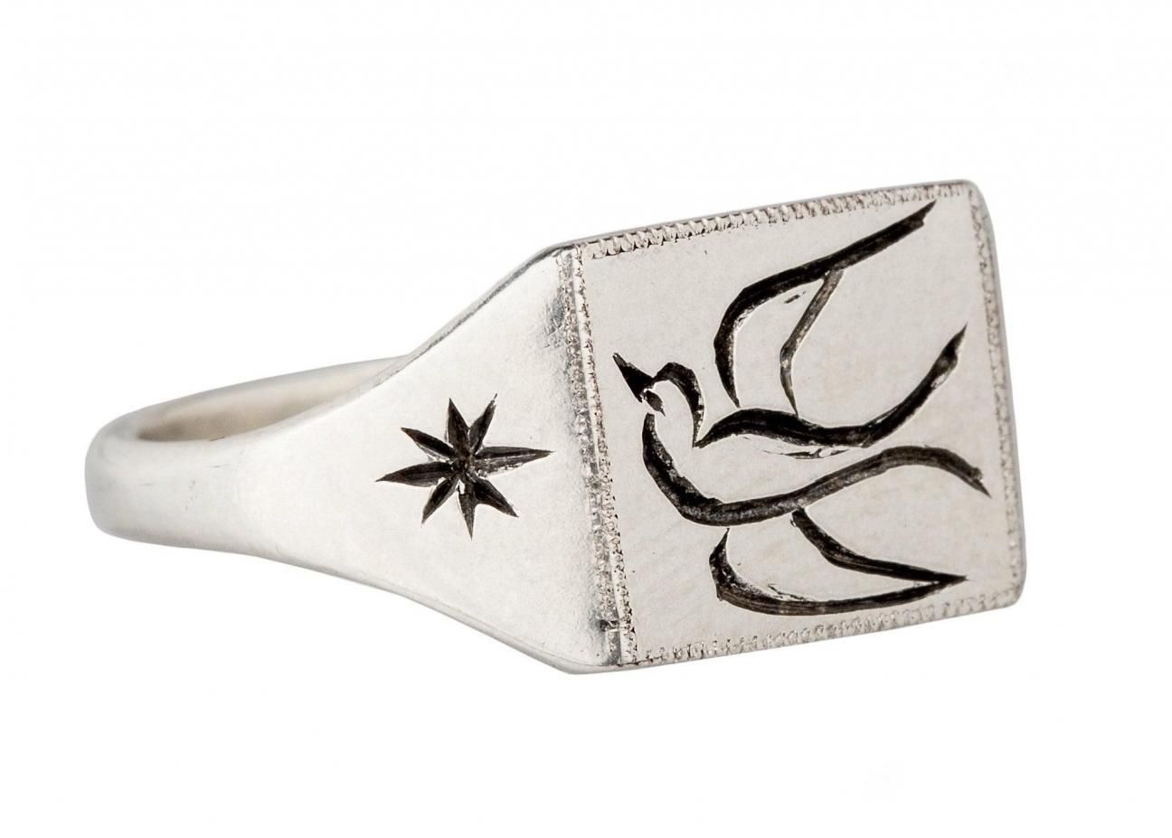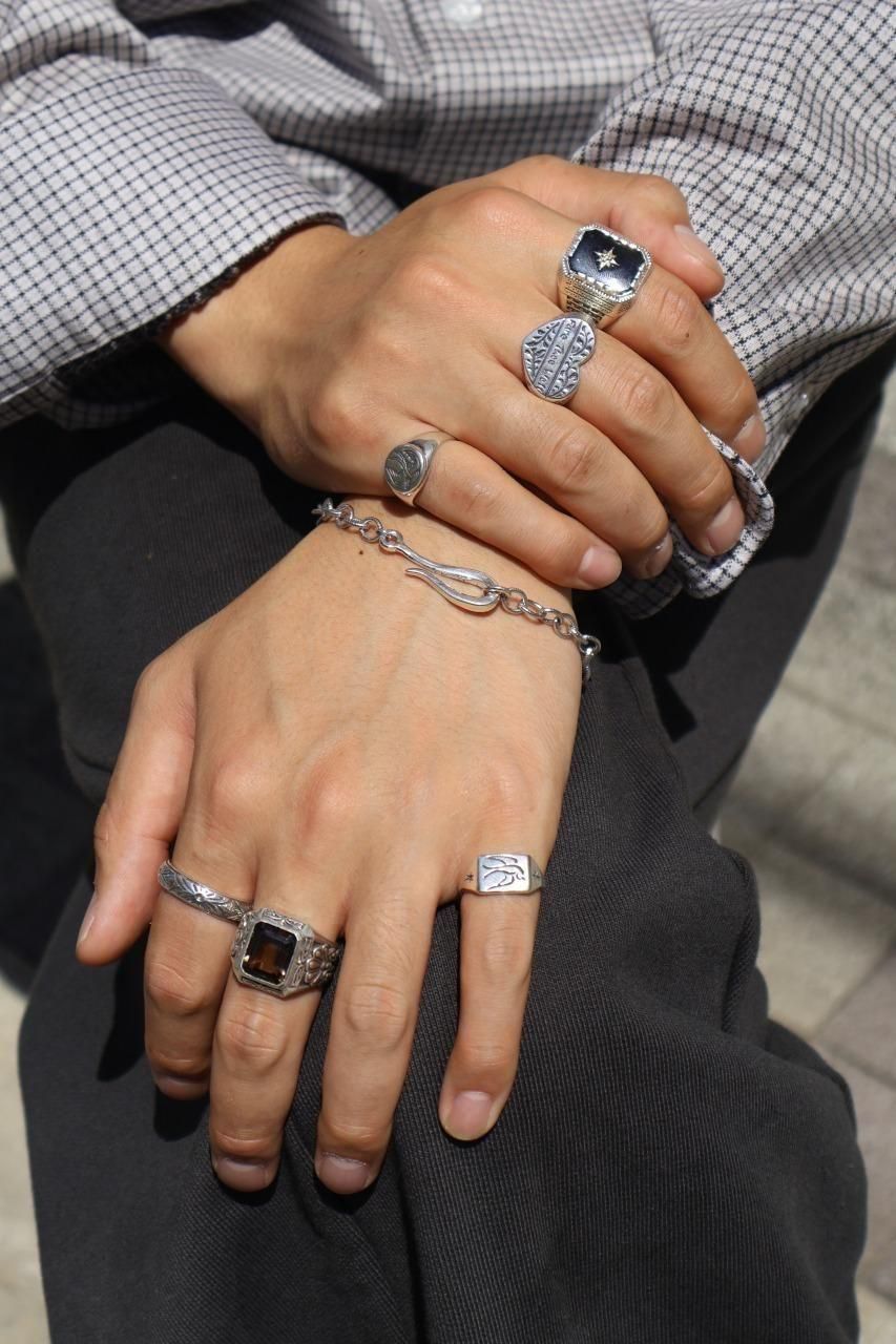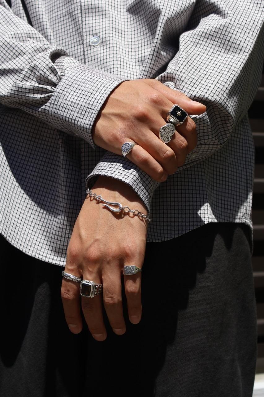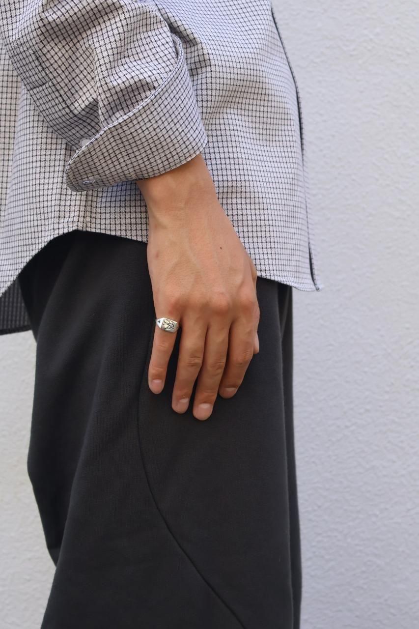 LHNではお馴染みのモチーフであるSwallowを彫刻した四角形のチャームを、リングの土台に接合することで、小ぶりながら存在感があるリング。