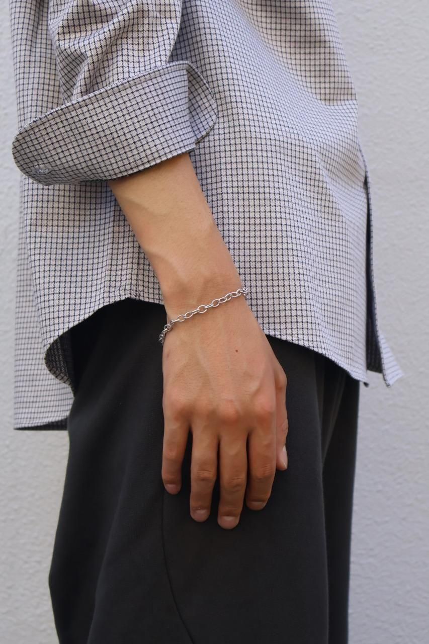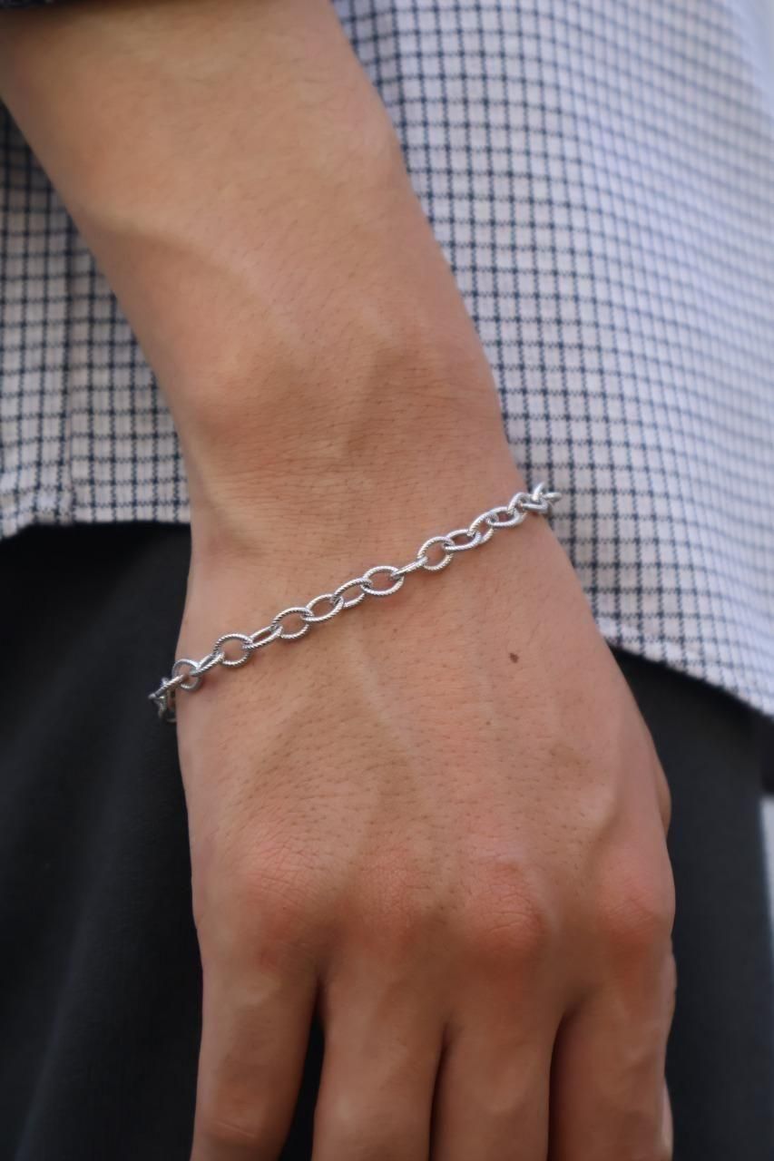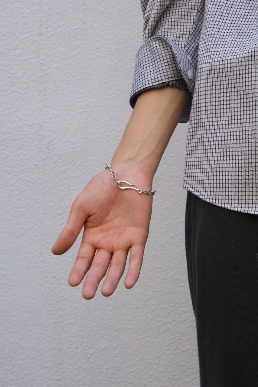 留め具の部分が航海用のフックをモチーフとしており、力強く、タフな印象を持たせたブレスレットです。