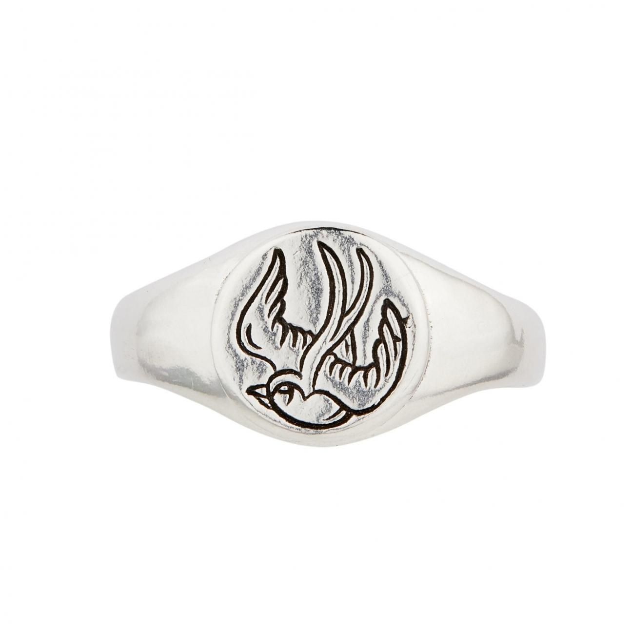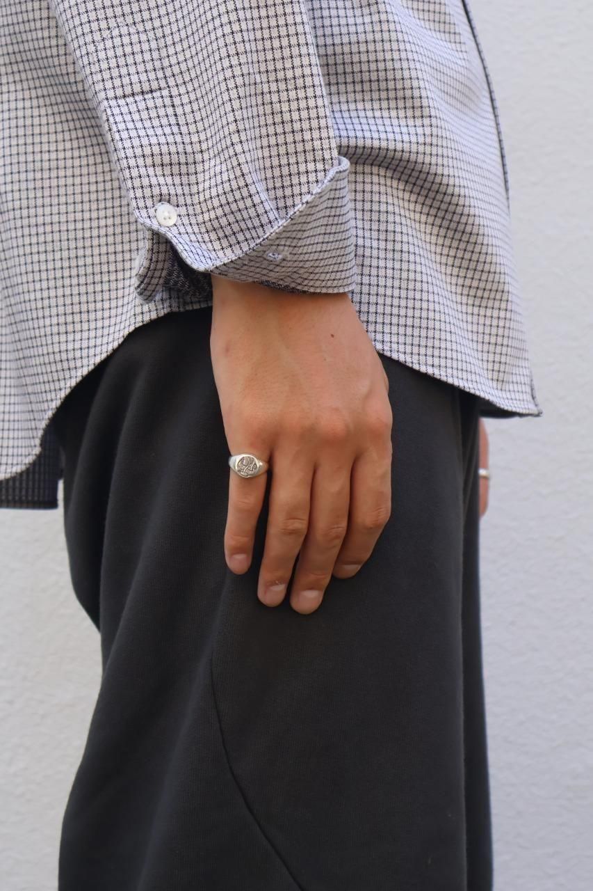 LHNではお馴染みのモチーフであるSwallowを彫刻した円形のチャームを、リングの土台に接合することで、小ぶりながら存在感があるリング。