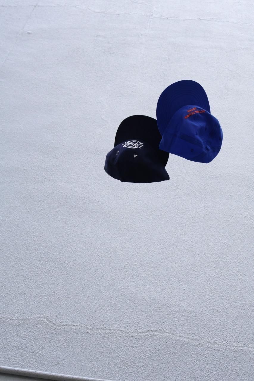 ブランドオリジナルのロゴをフロントに刺繍したキャップ。
