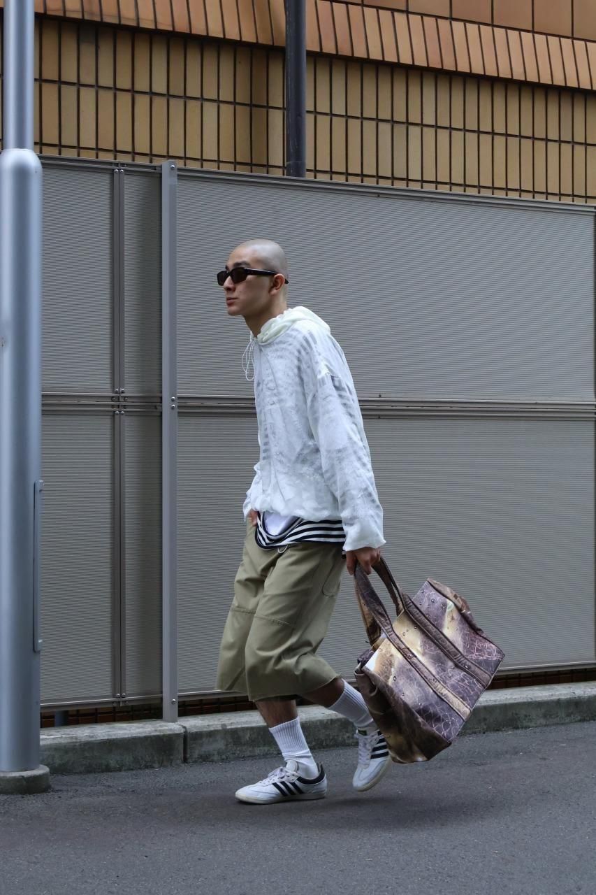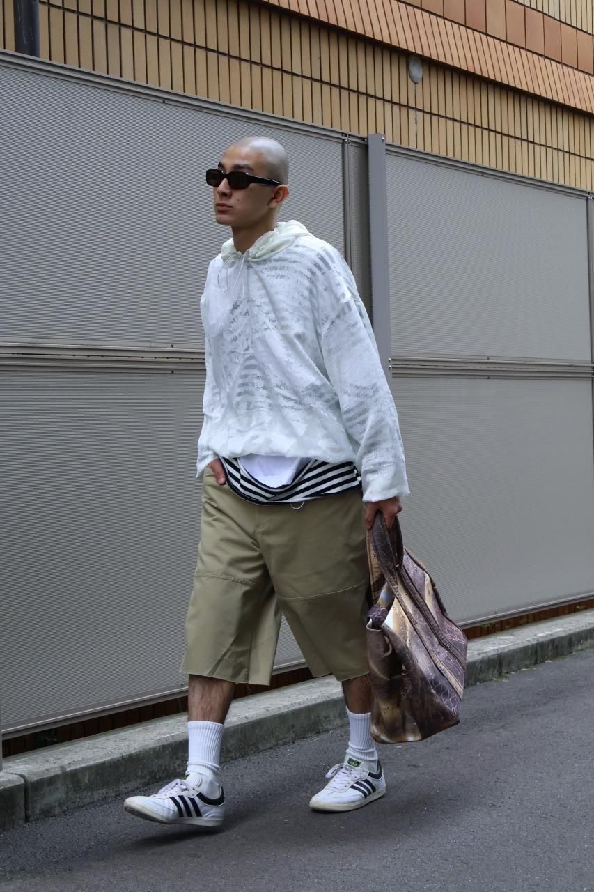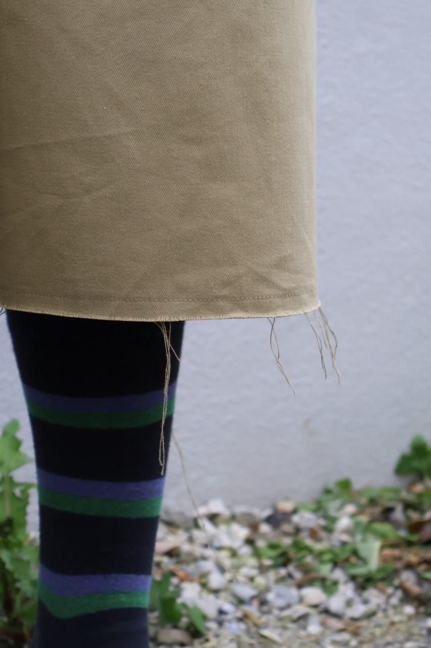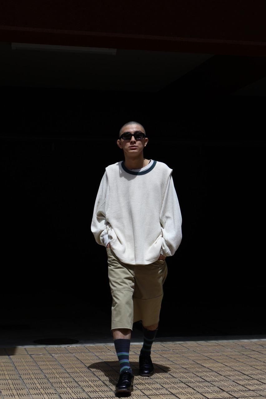レングスは6分丈ほどで、裾は切りっぱなしの仕様。