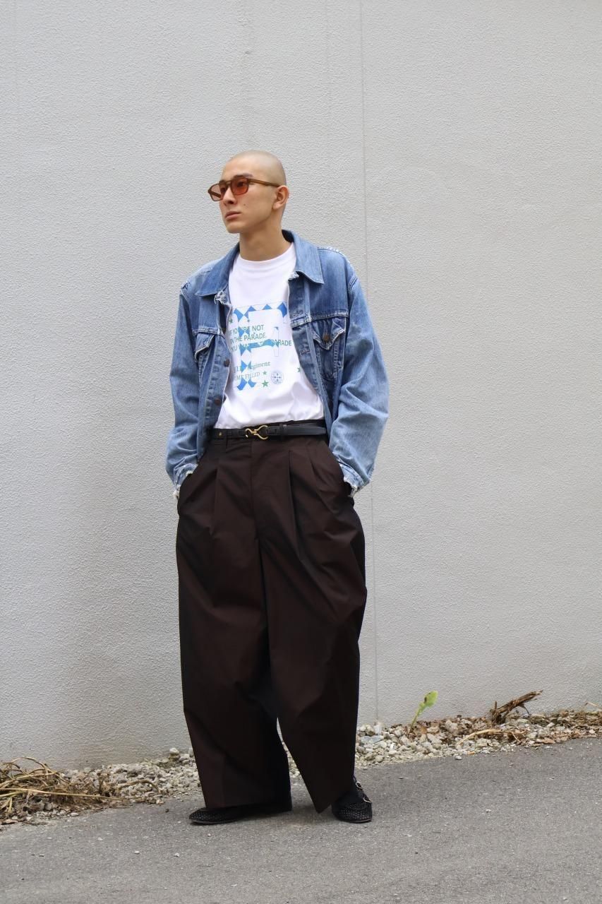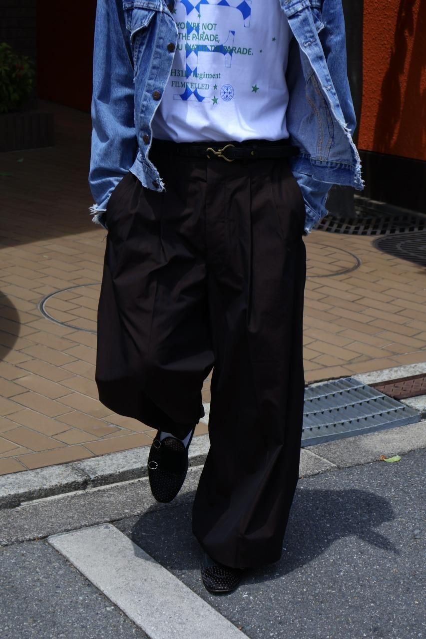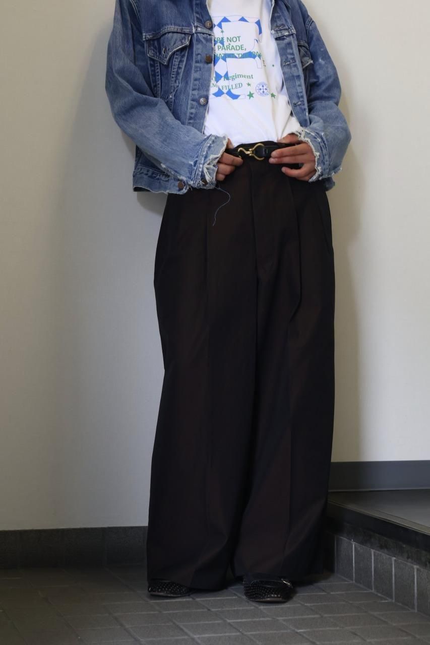 深い股上とジャストヒップから真っ直ぐ綺麗に落ちる、超ワイドシルエットが特徴です。