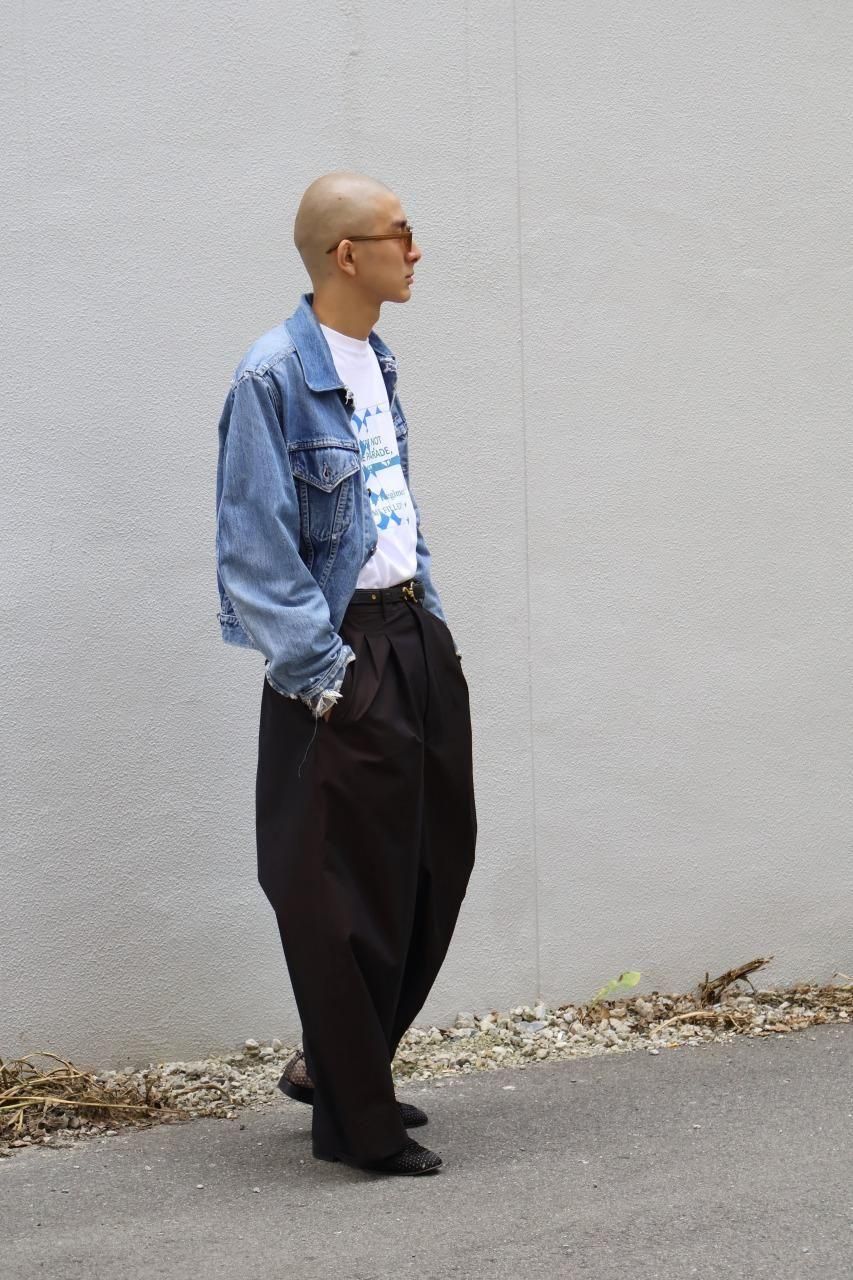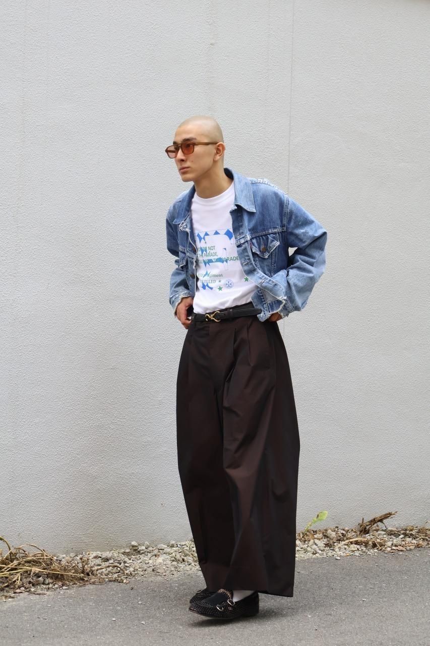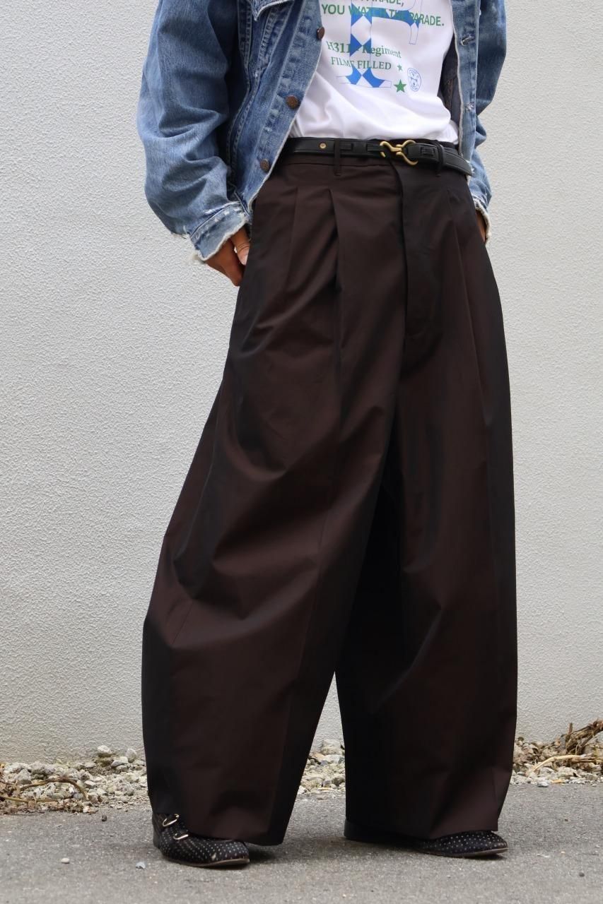 深い股上とジャストヒップから真っ直ぐ綺麗に落ちる、超ワイドシルエットが特徴です。