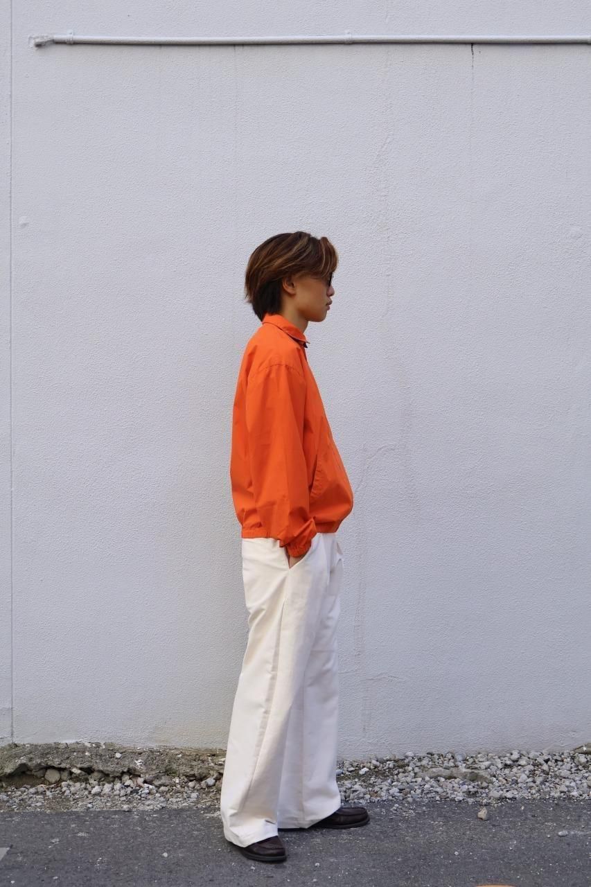 一見、ナイロンのようにも見えるシャリっとした生地感のコットンとなっており、さらっと軽やかに扱えるところが良点。