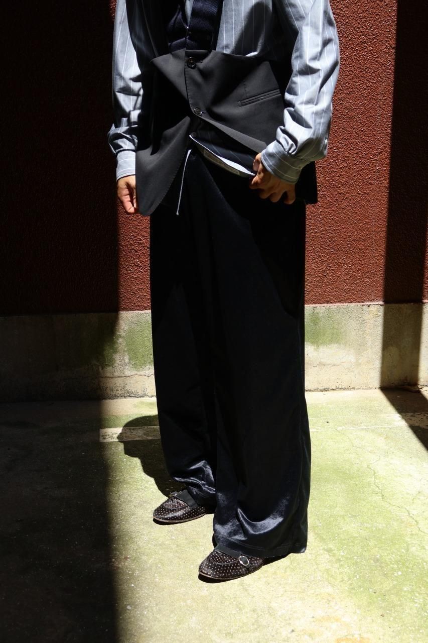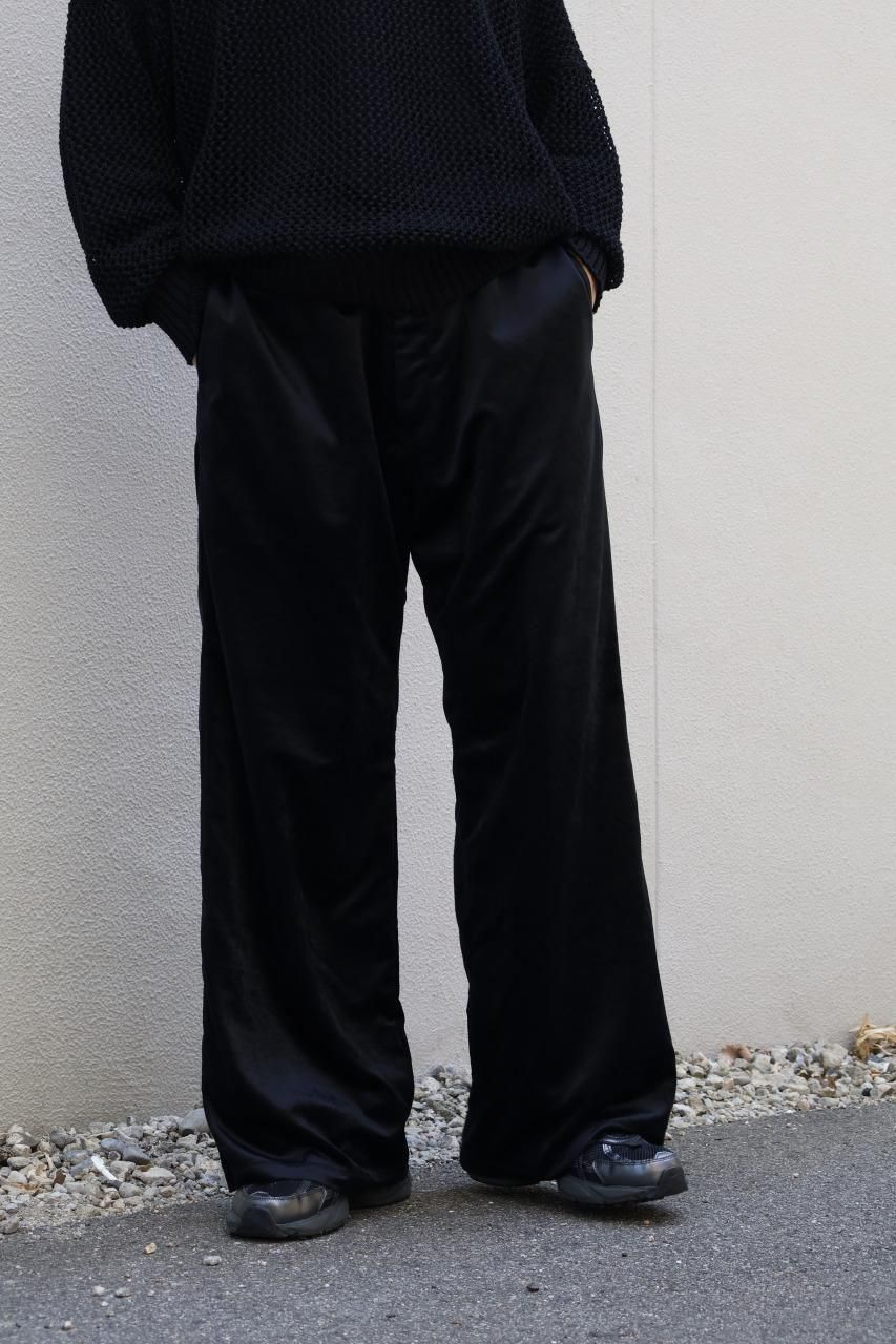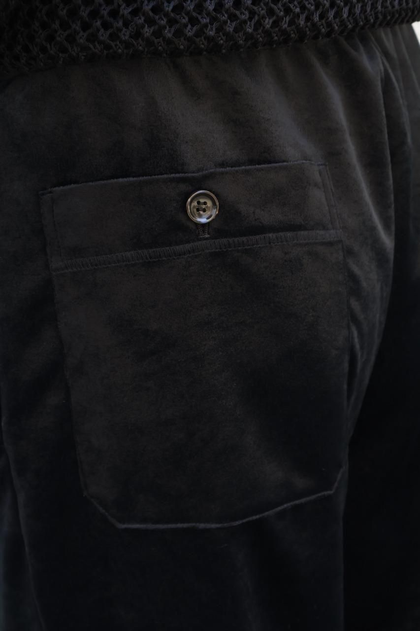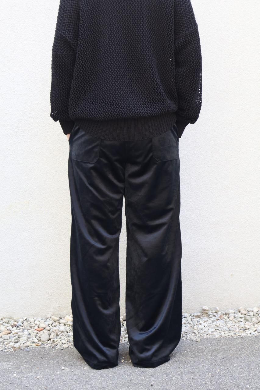 薄いベロア素材のジャージを使用したウエストがゴム紐のイージーワイドパンツ。
