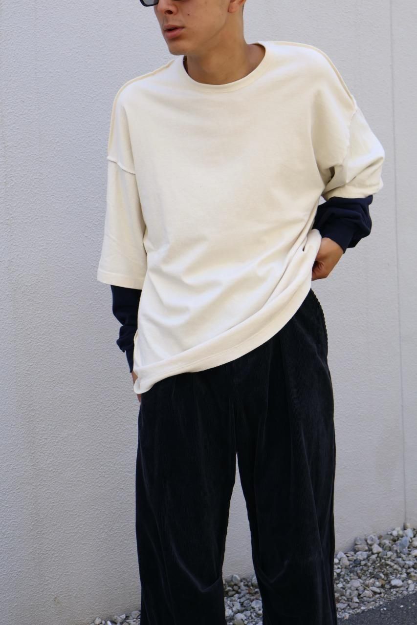 素材はかさ高でふっくらとした風合いのBD天竺を使用。