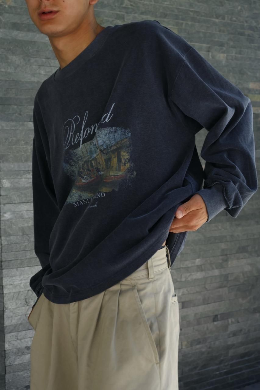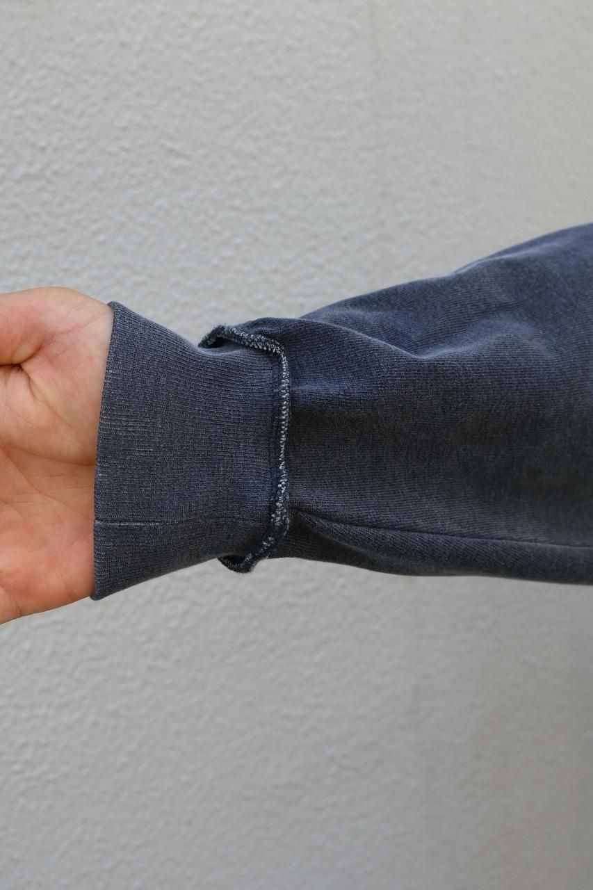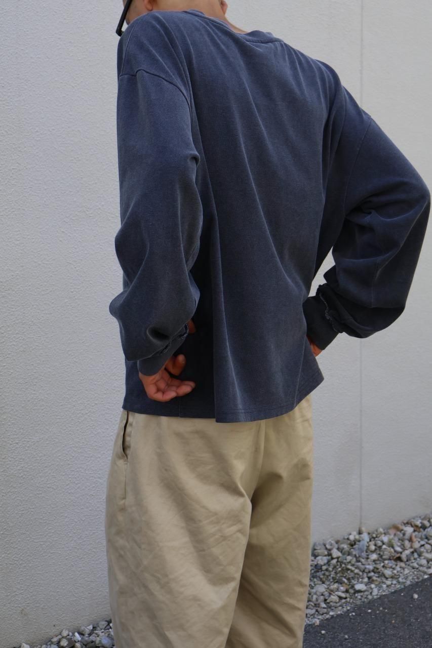 20/1天竺を使用し、製品染めを思わせる加工を施すことで、フェード感のある独特の風合いに仕上げられております。