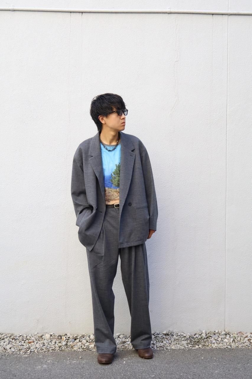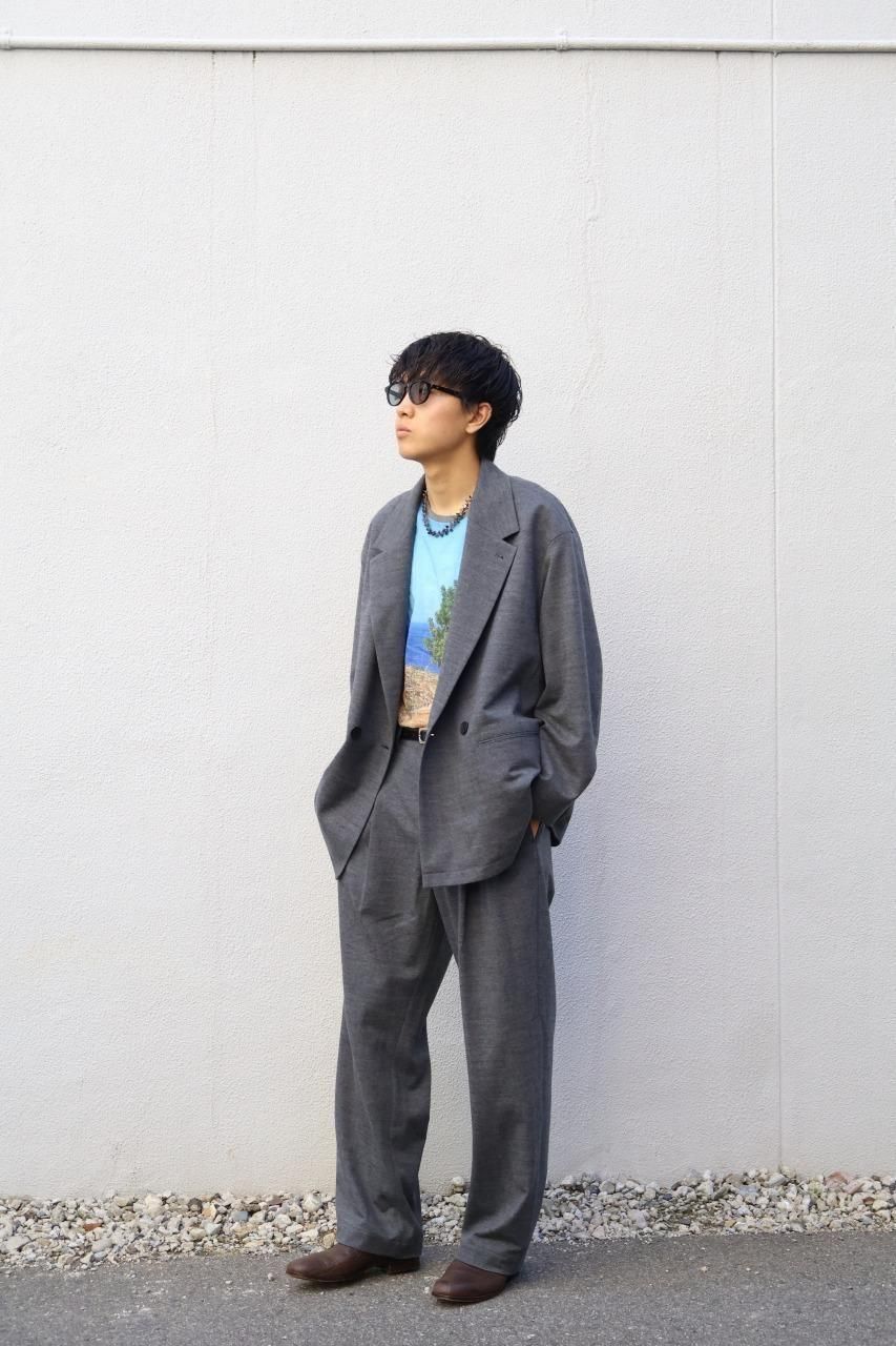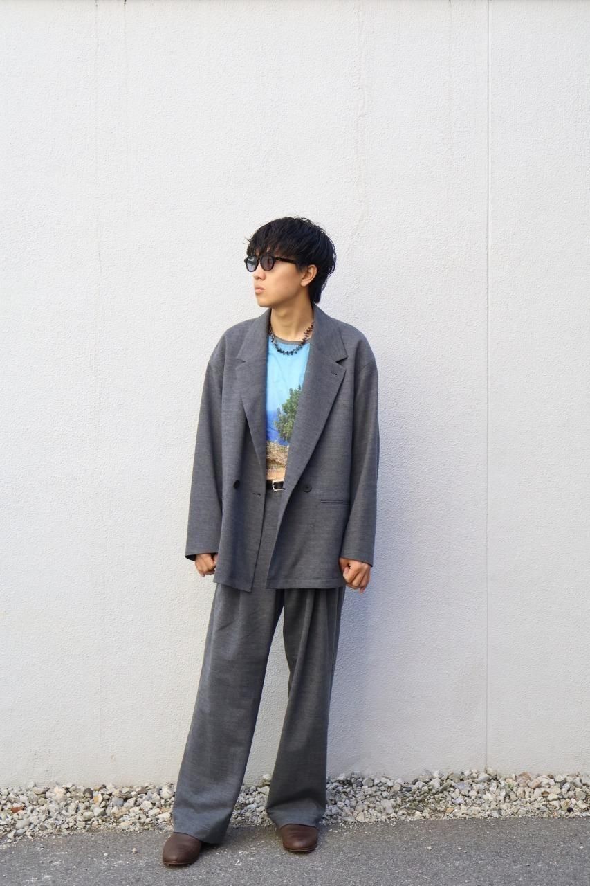JACKET : KANEMASA PHIL. - 36G Wool Herringbone Double Jacket "Smoke Grey" -