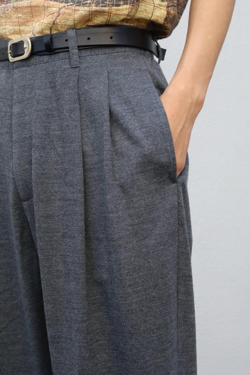 この機械で編める最大限の細さの糸、1/60 super120'sノンミュールジングウールを使用しており、生地での最終工程で縮絨加工をすることで軽く毛羽立たせ、ハイゲージメルトン生地を実現。
