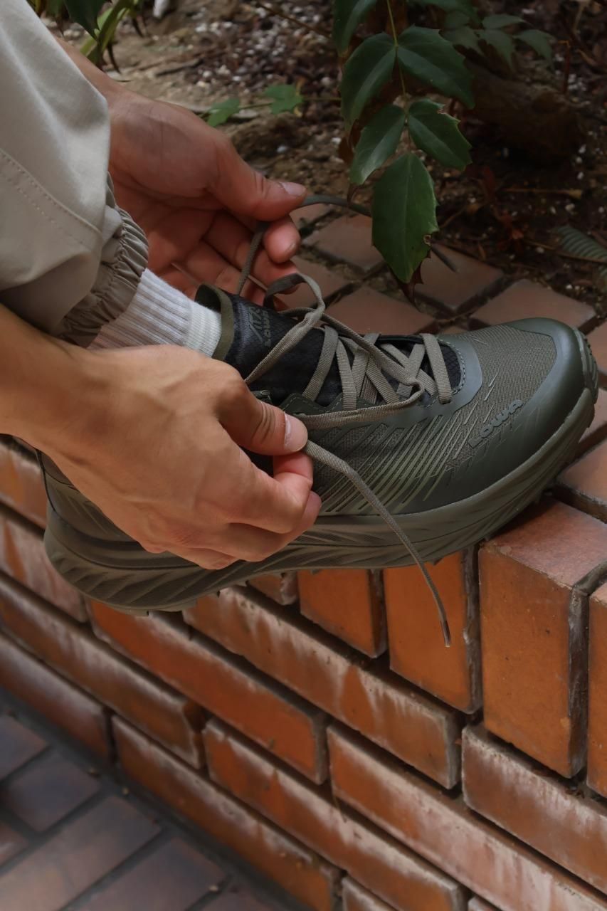 また、REPTEX SPORT PUコーティングはシューズ全体の剛性感を高め、不整地での接地時にすぐれた安定感をもたらすと共に、岩角への接触等から足を保護します。