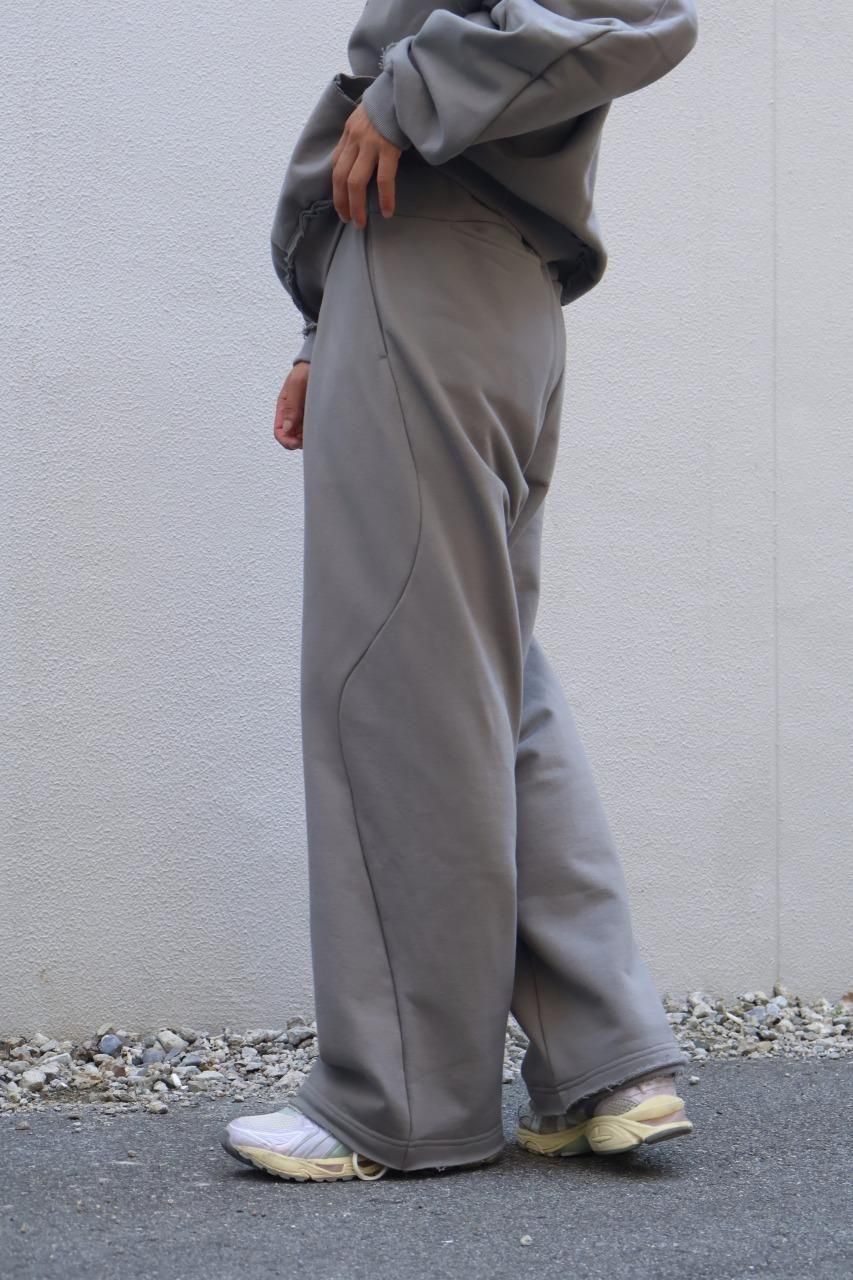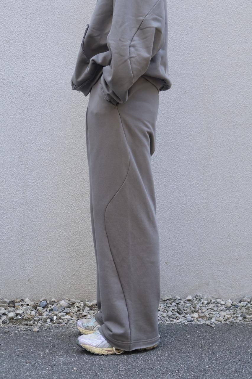 前シーズンのスウェットパンツをよりワイドにして腰回りにタックを入れ、膝裏の歪みをフロントに配置することでアップデートした、無骨なイメージで製作したスウェットパンツ。