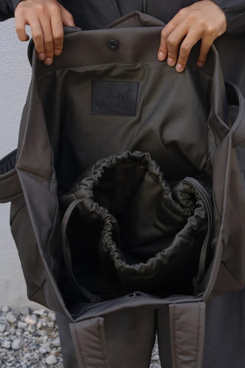 大容量の巾着が内蔵されており、パソコンなどもしっかりと保護してくれる仕様。