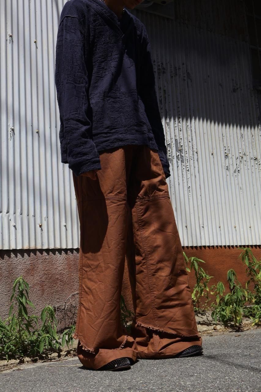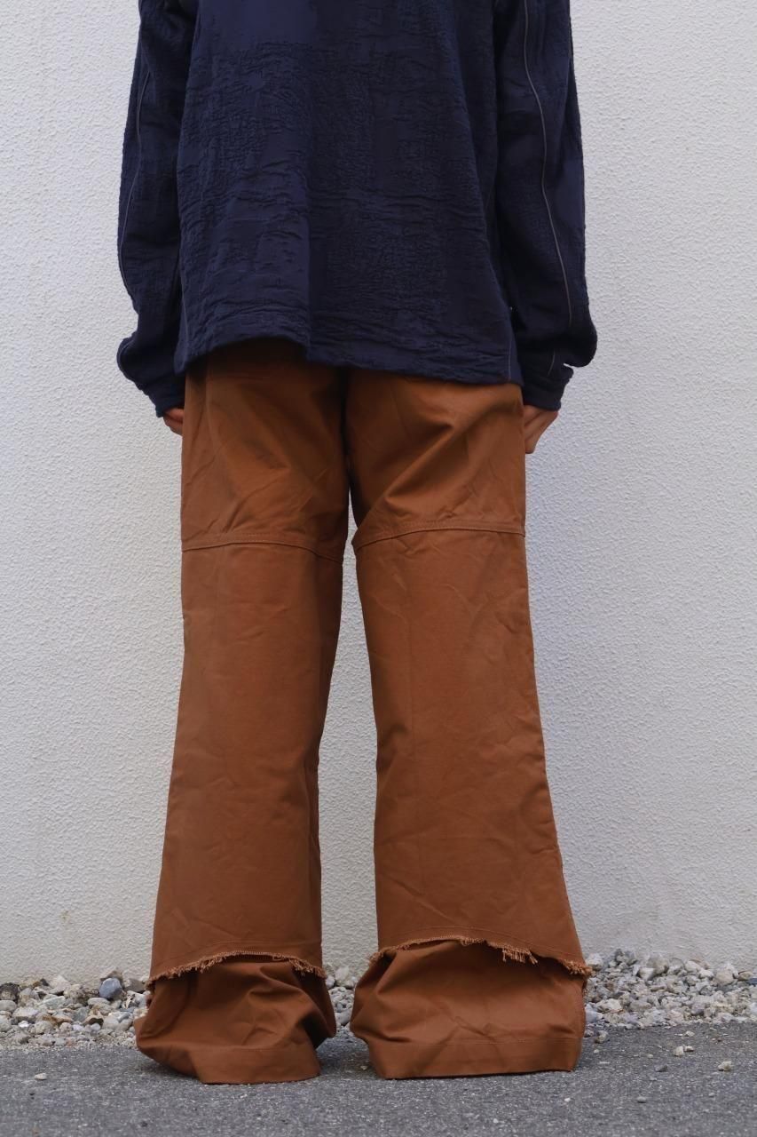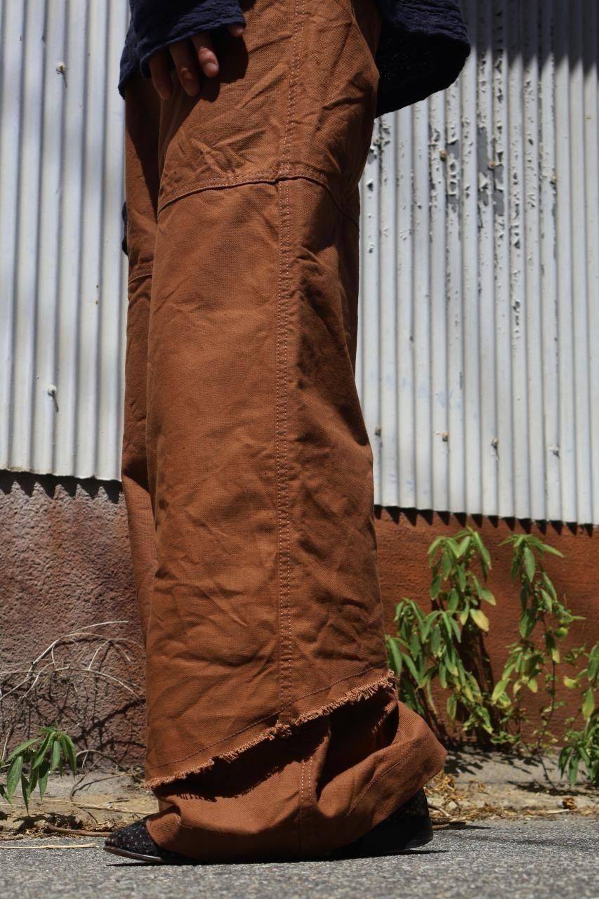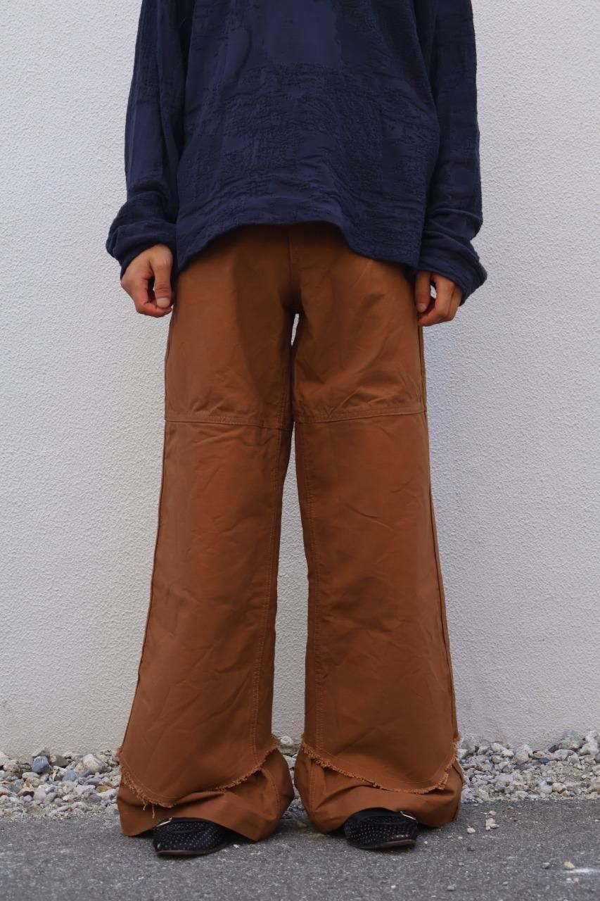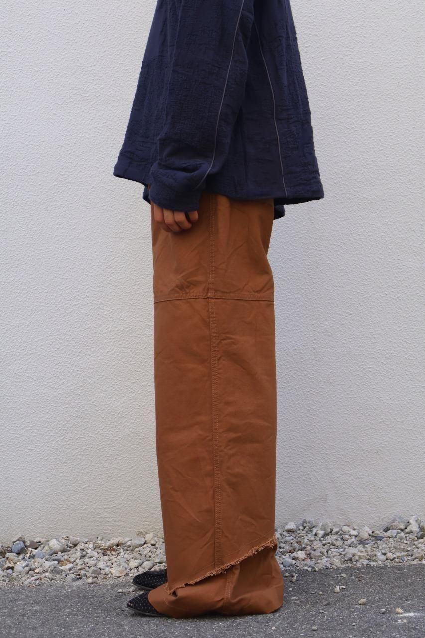 生地を2枚使ったレイヤードスタイルのワークパンツ。