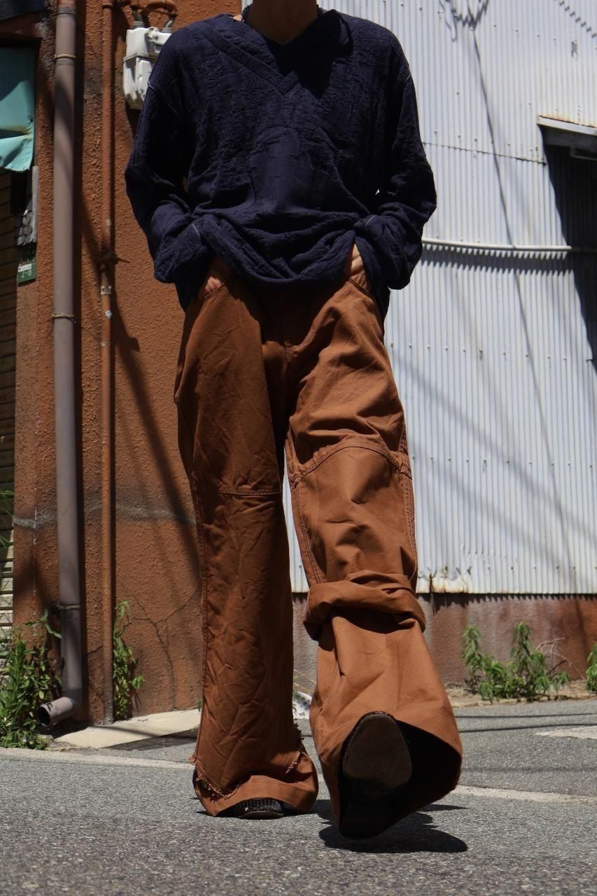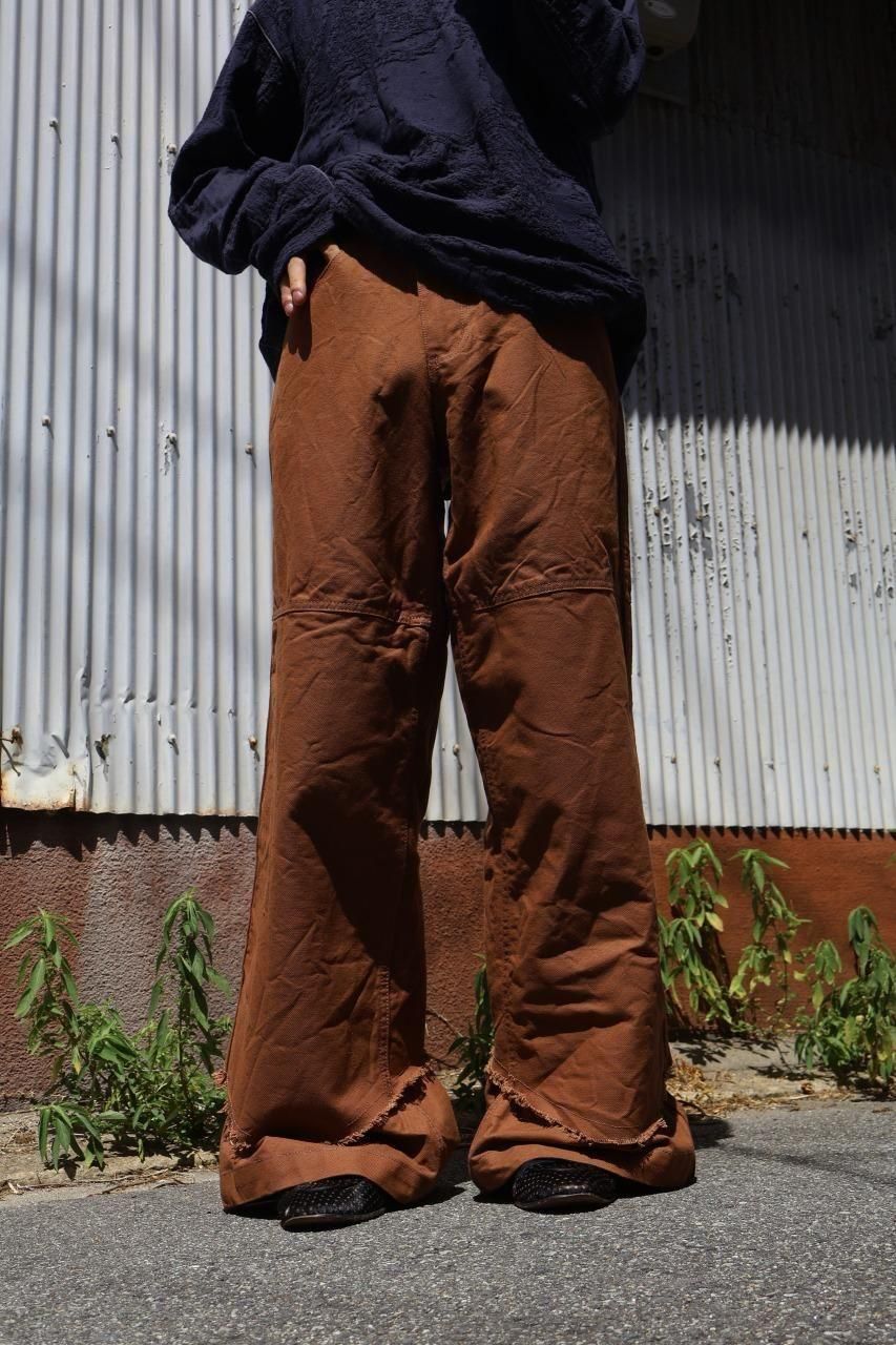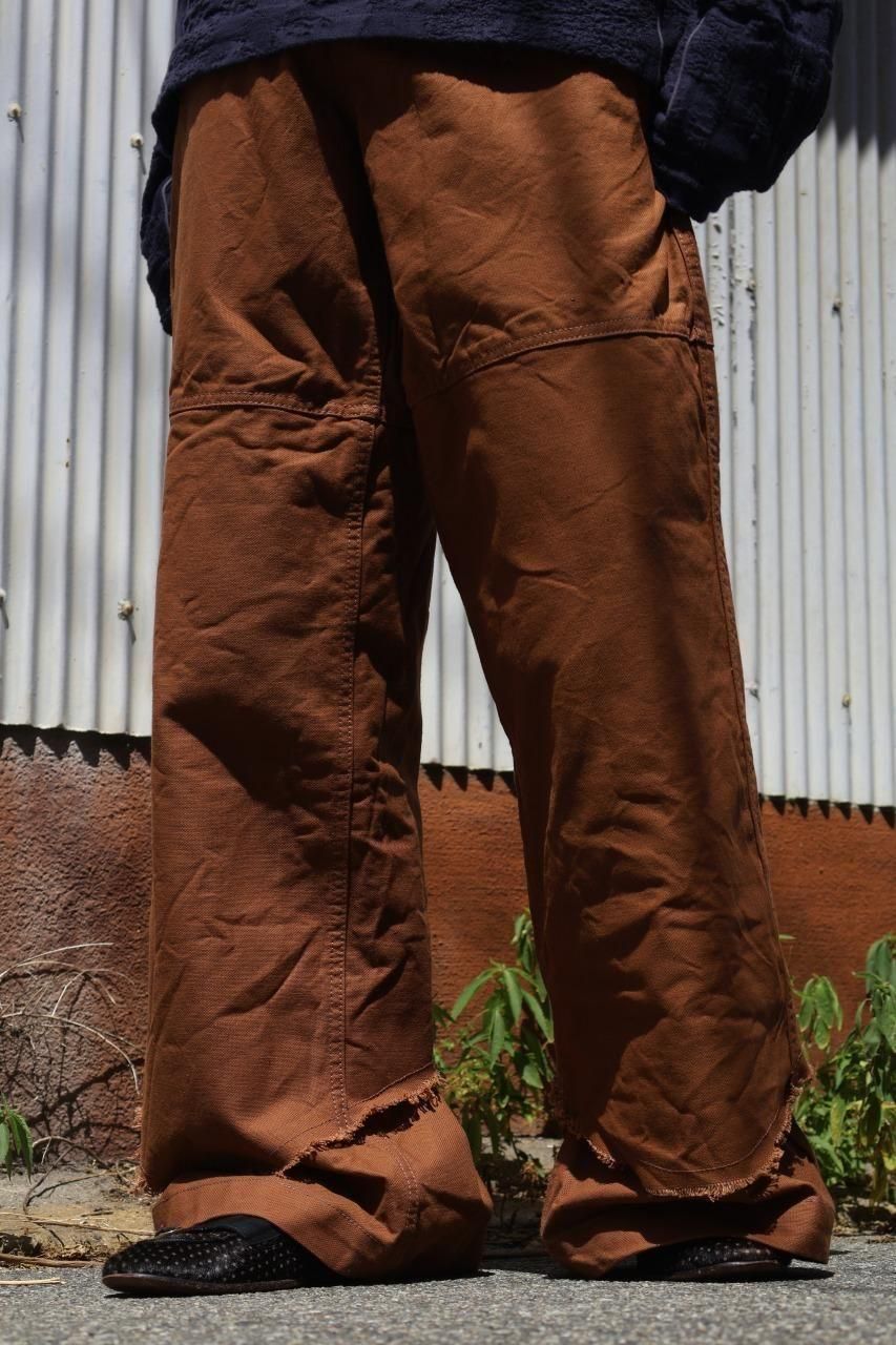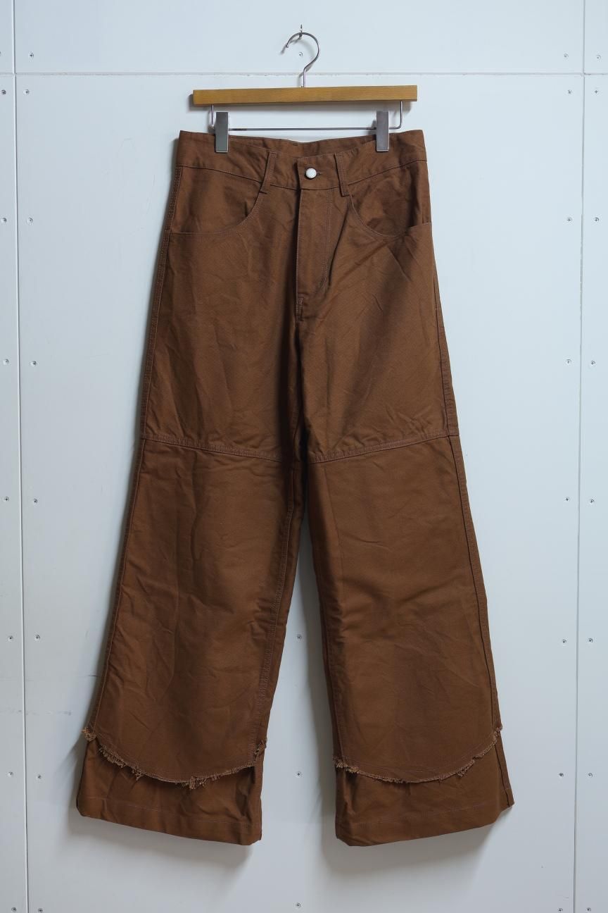 生地を2枚使ったレイヤードスタイルのワークパンツ。