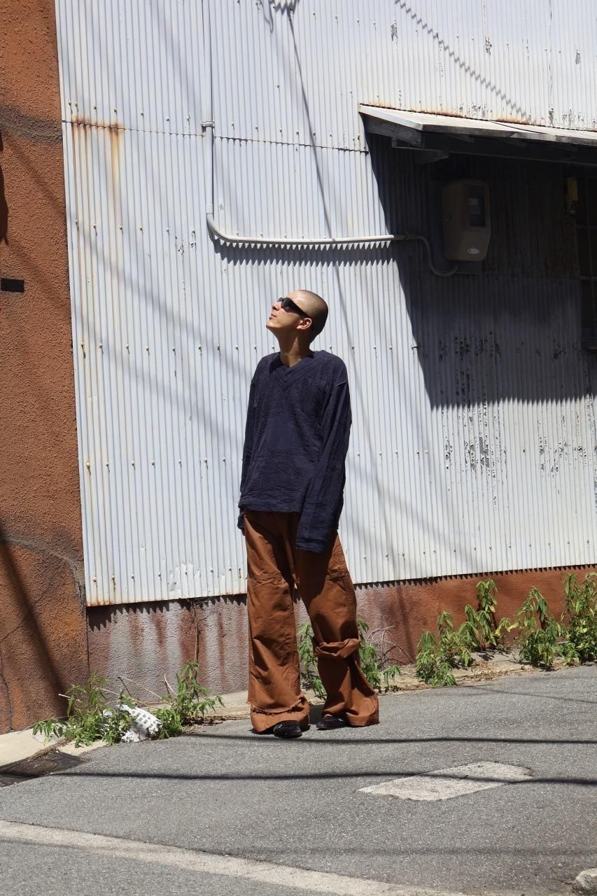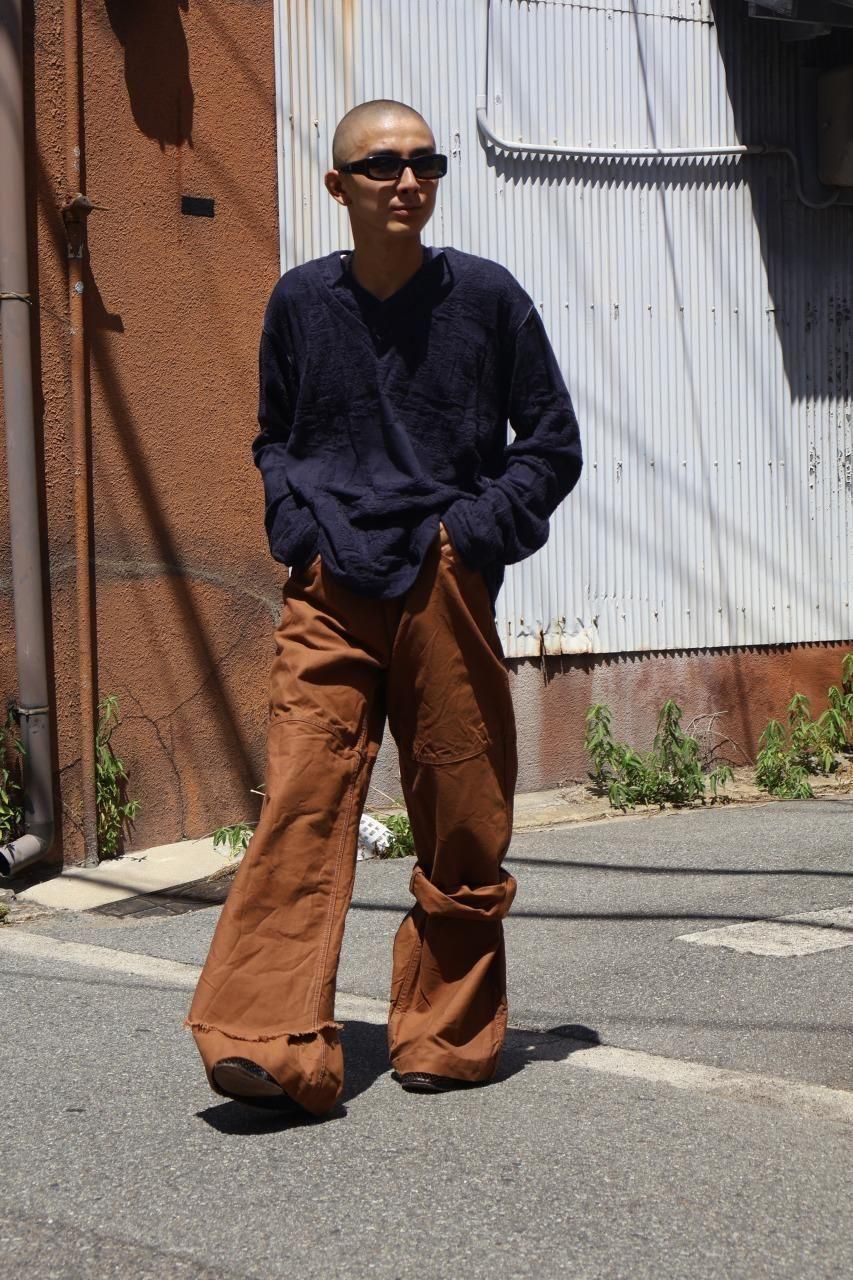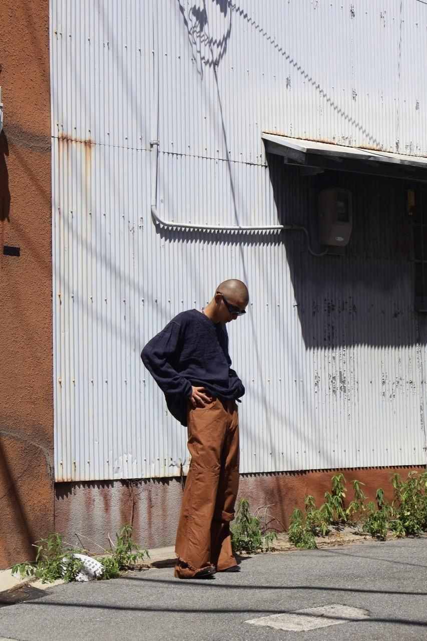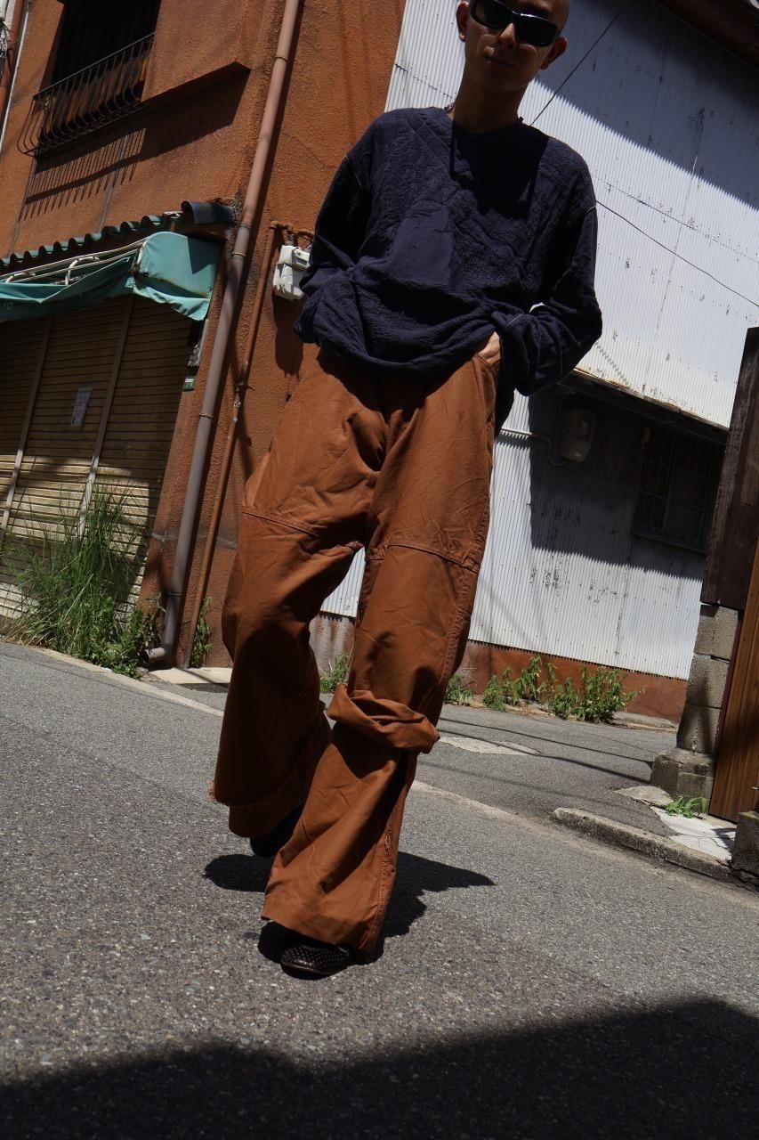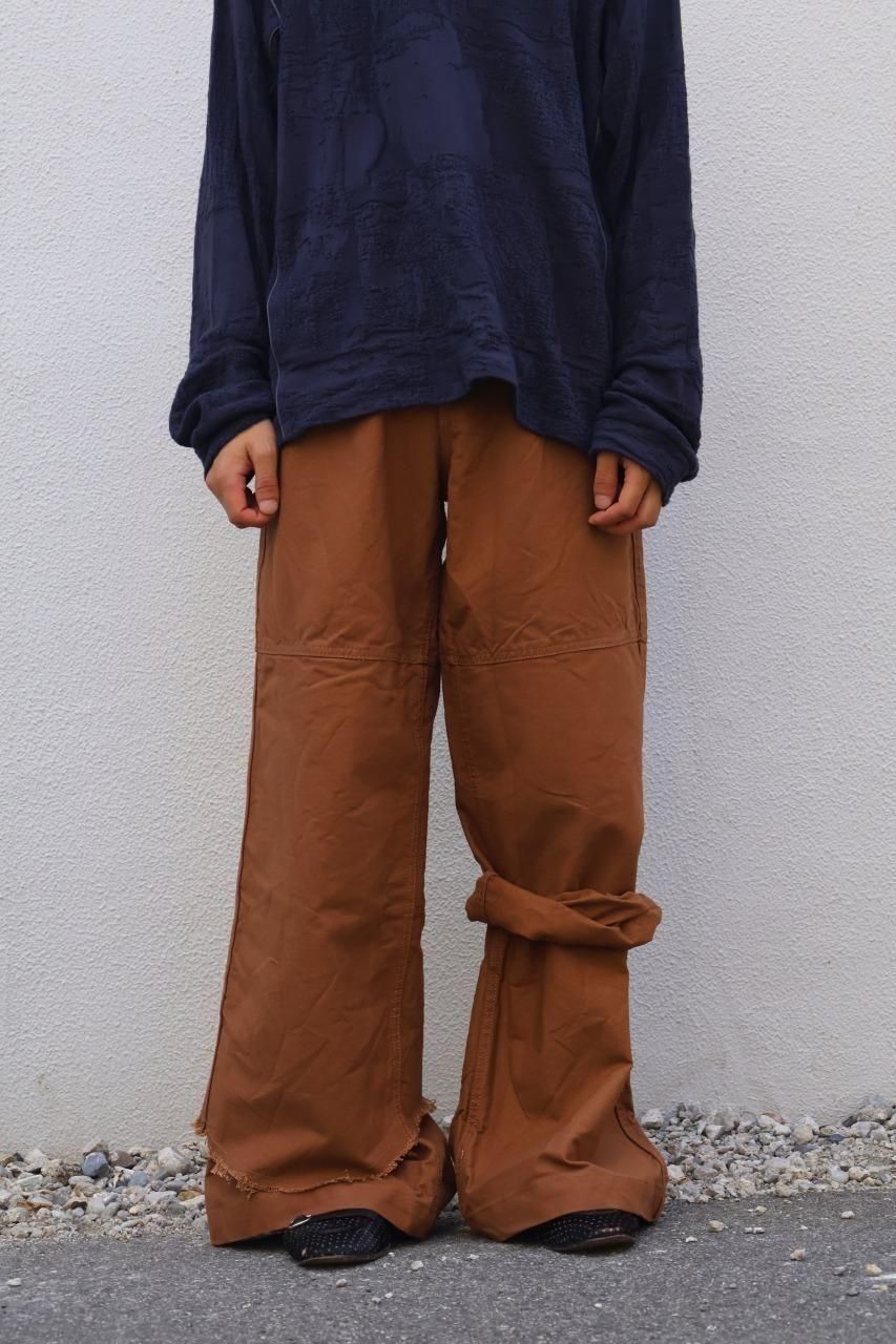 生地を2枚使ったレイヤードスタイルのワークパンツ。