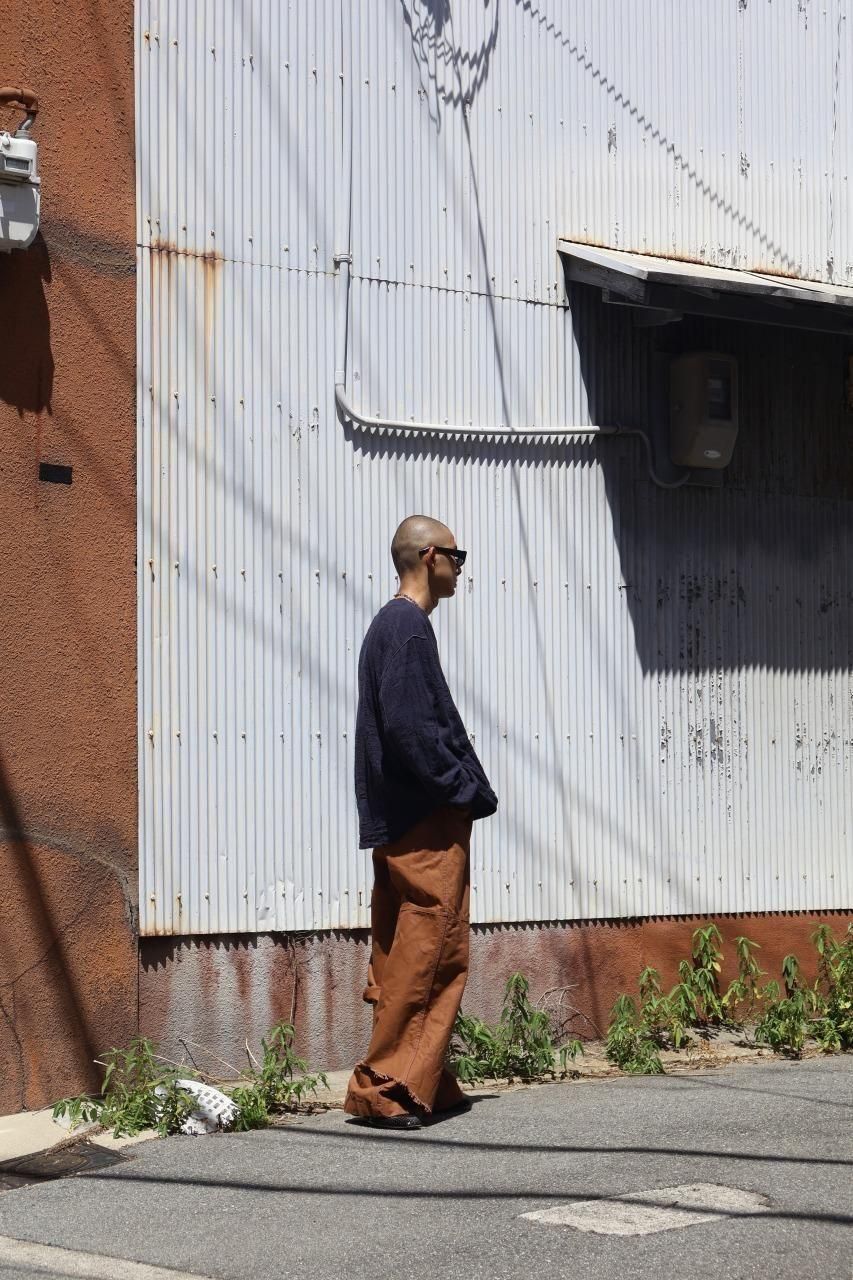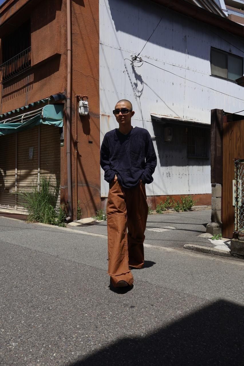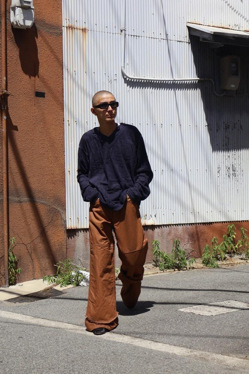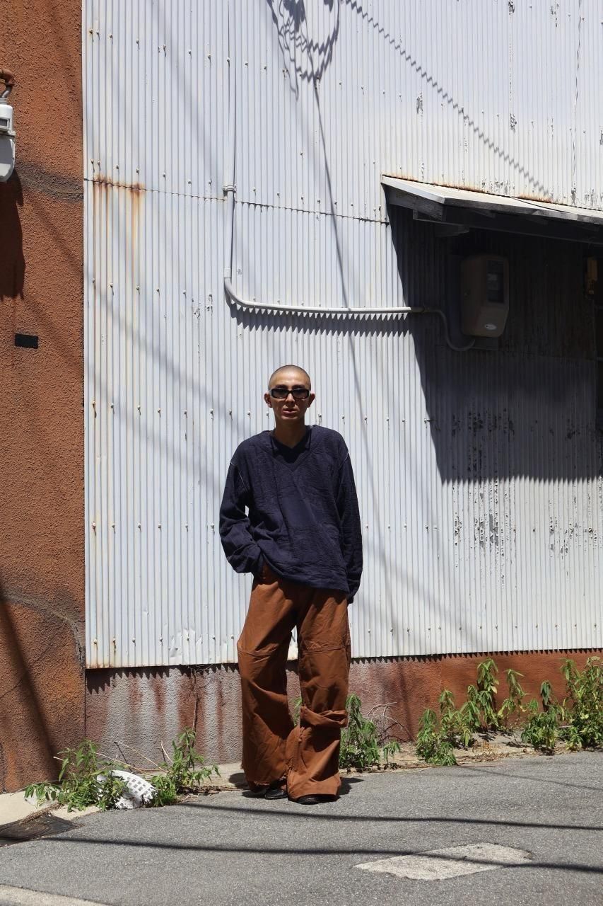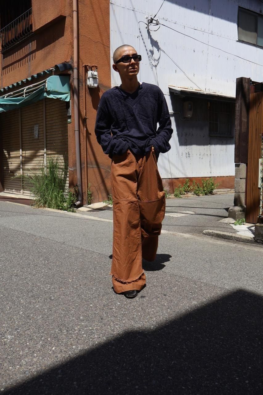 生地を2枚使ったレイヤードスタイルのワークパンツ。