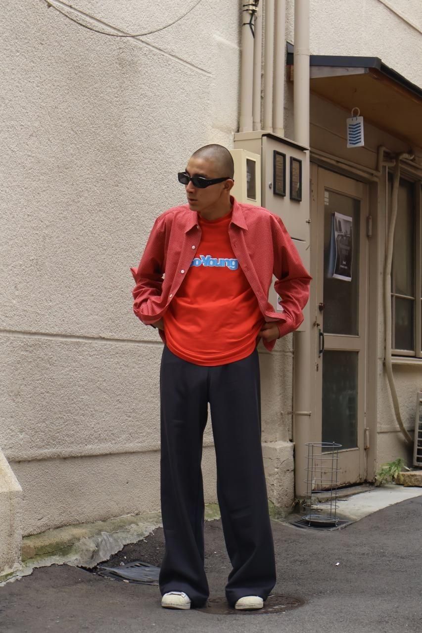 レッドのボディにブルーとホワイトのスクリーンプリントが眼を惹くプレミアムミッドウェイトTシャツ。