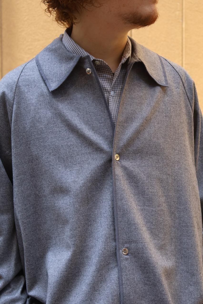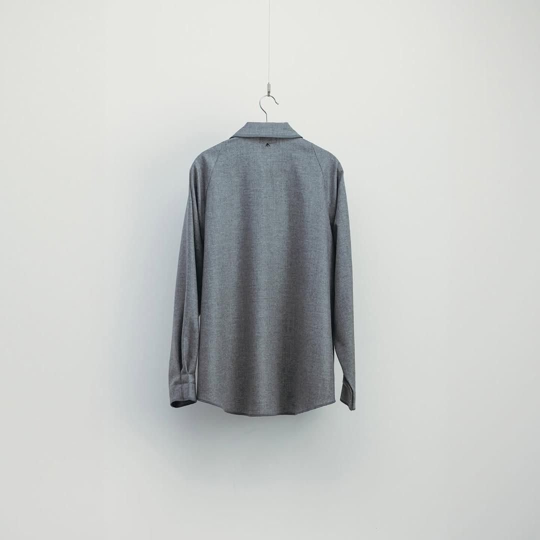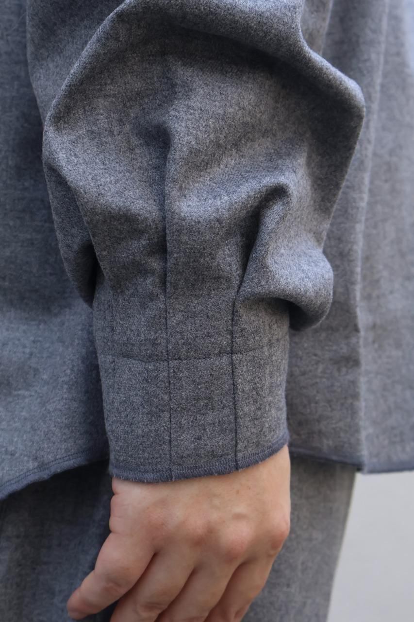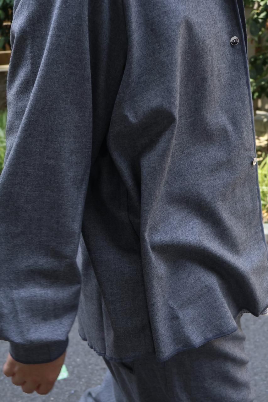 カシミヤ混の生地を使用し、フロントとカフスはニッケルのメタルボタンを備えたウールシャツ。