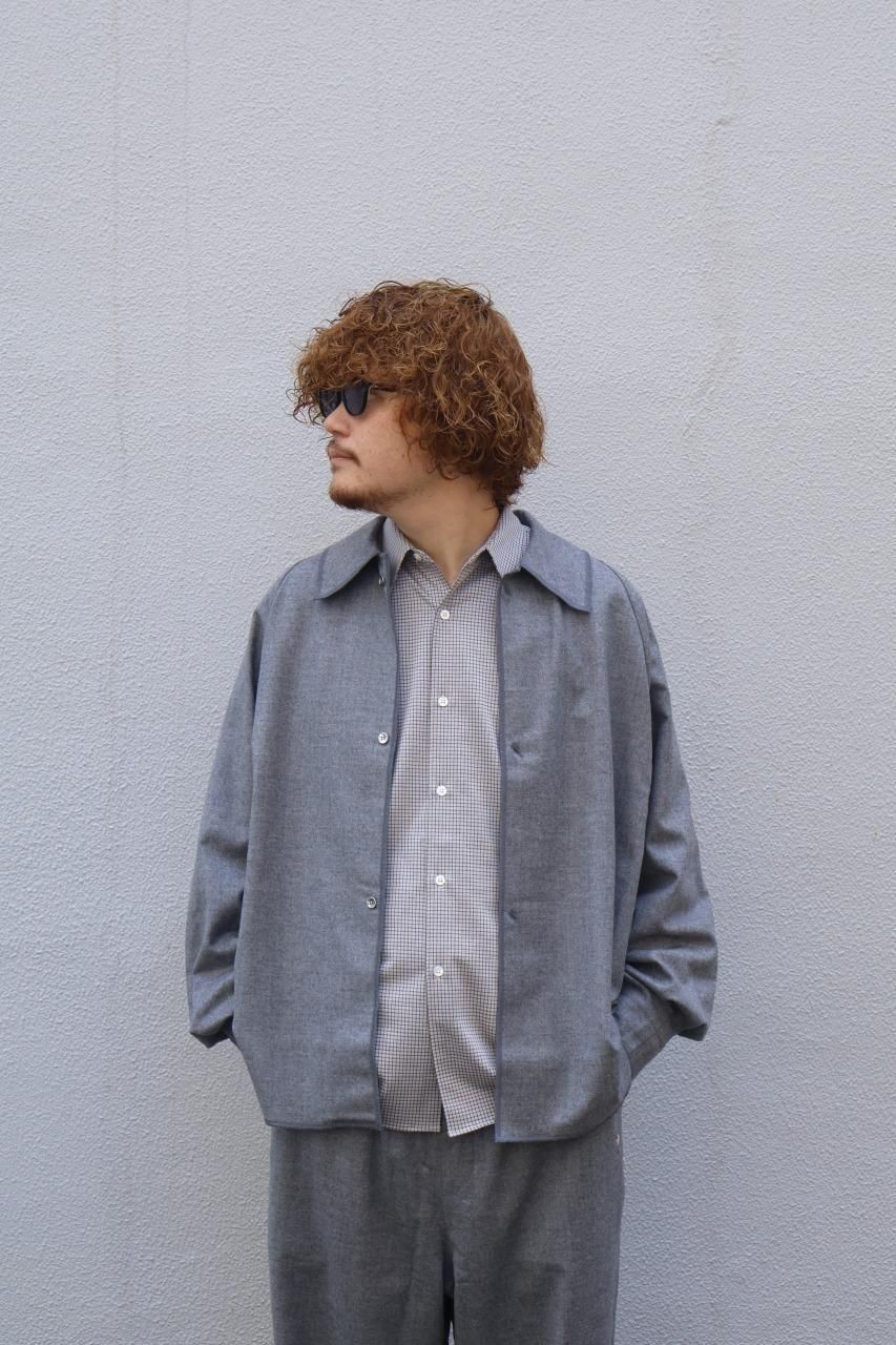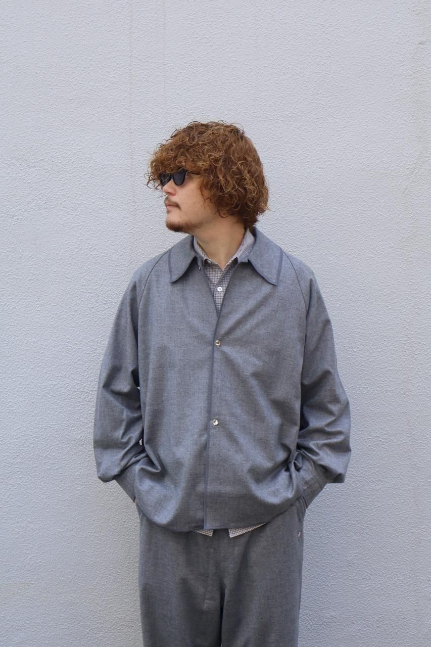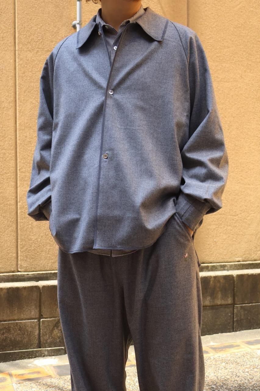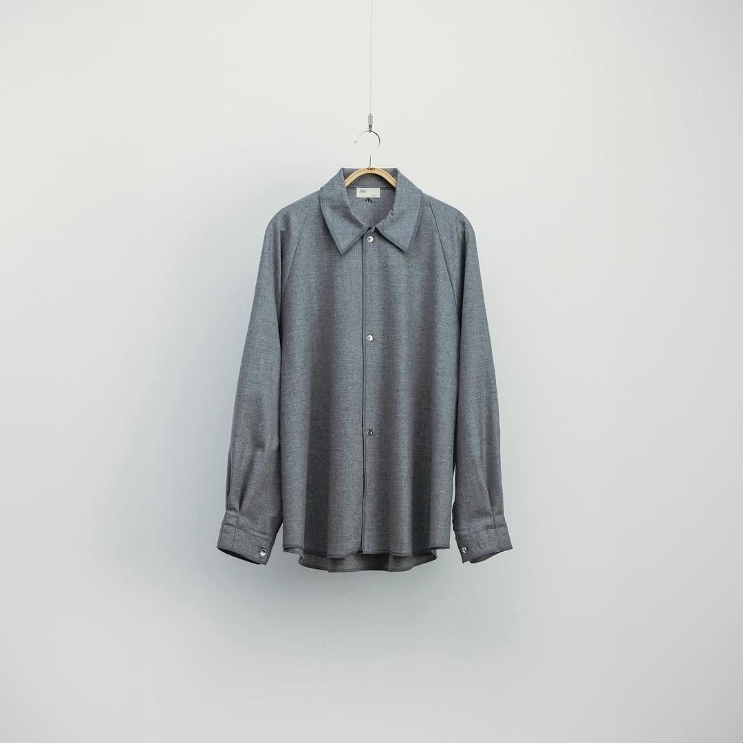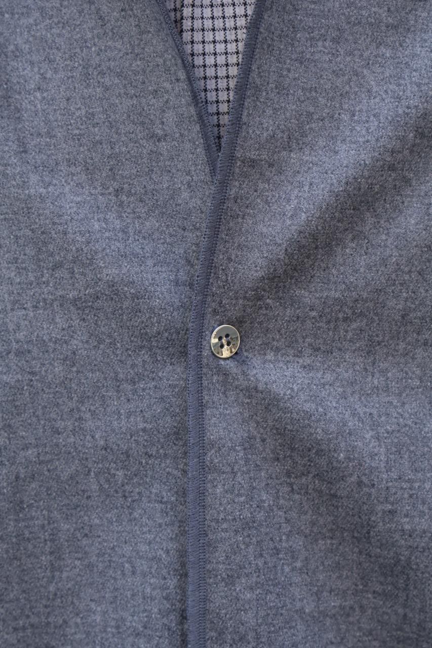 カシミヤ混の生地を使用し、フロントとカフスはニッケルのメタルボタンを備えたウールシャツ。