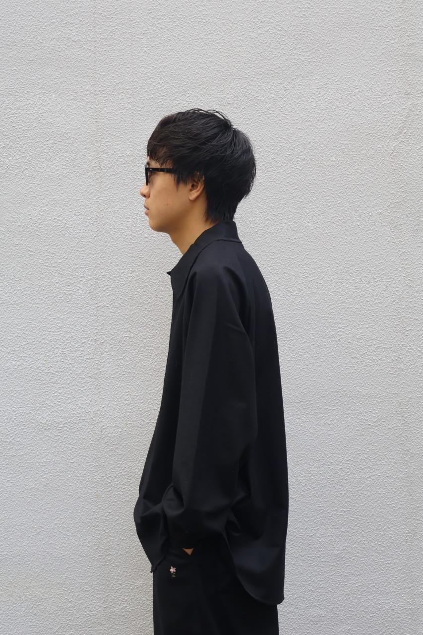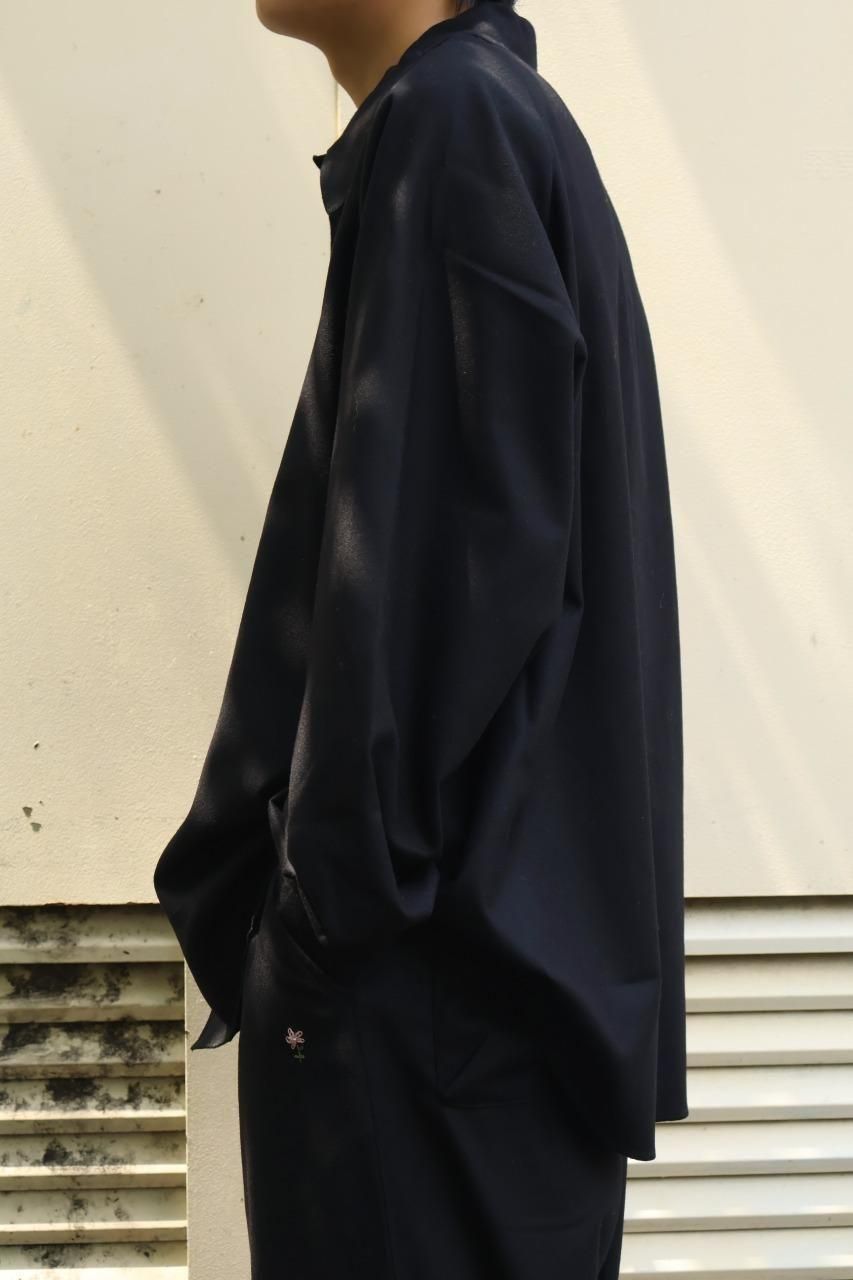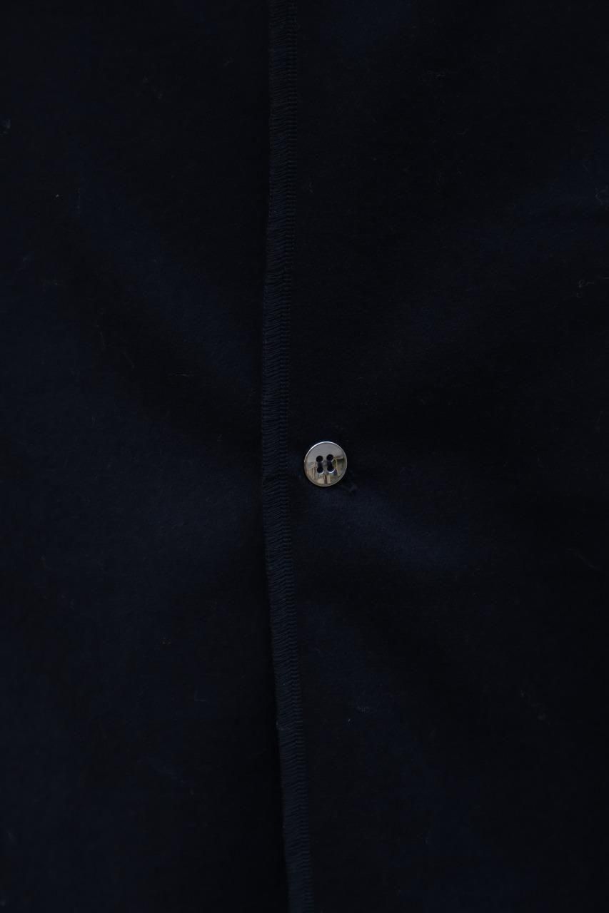 カシミヤ混の生地を使用し、フロントとカフスはニッケルのメタルボタンを備えたウールシャツ。