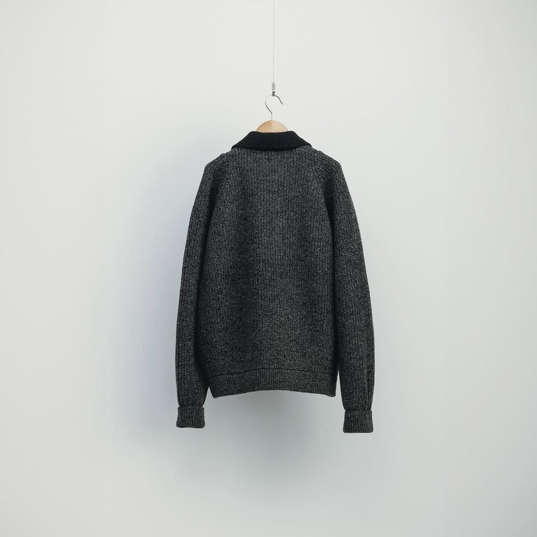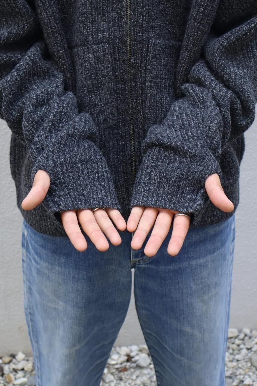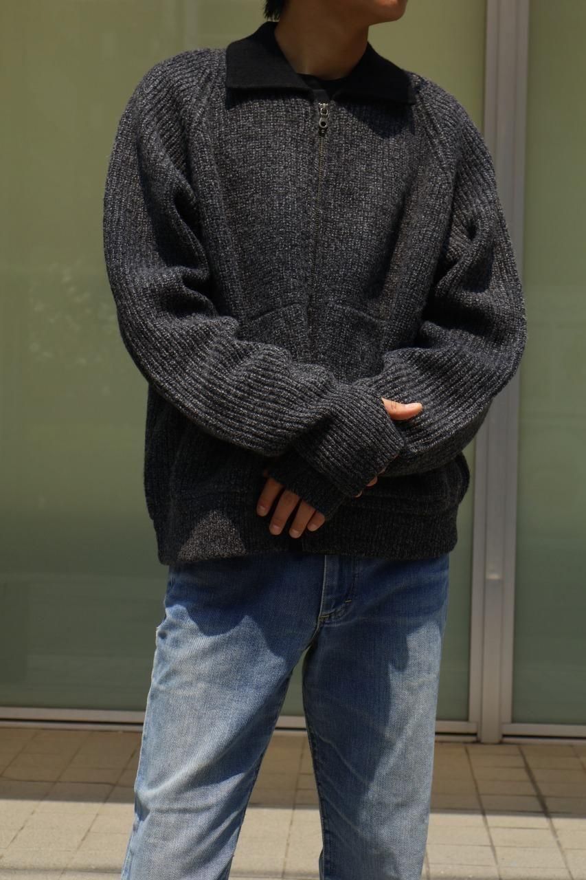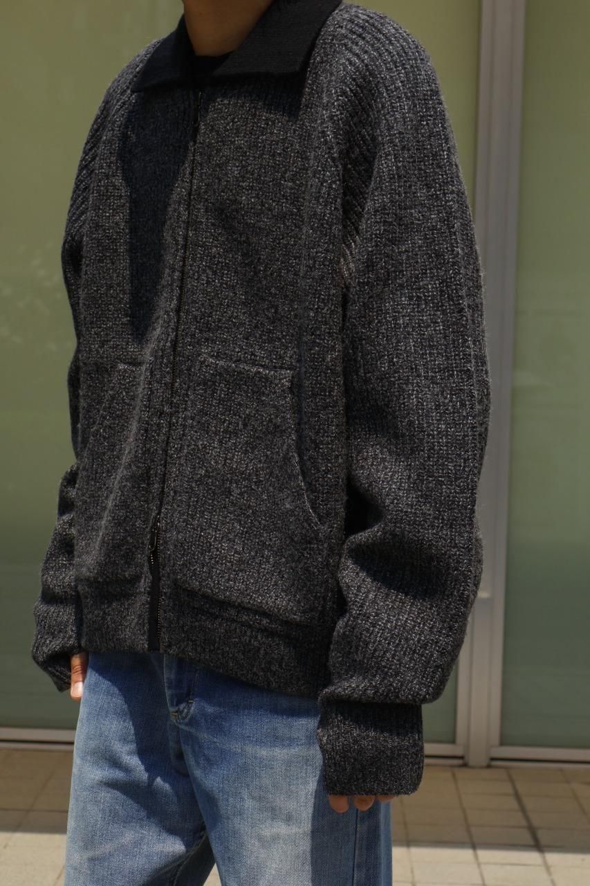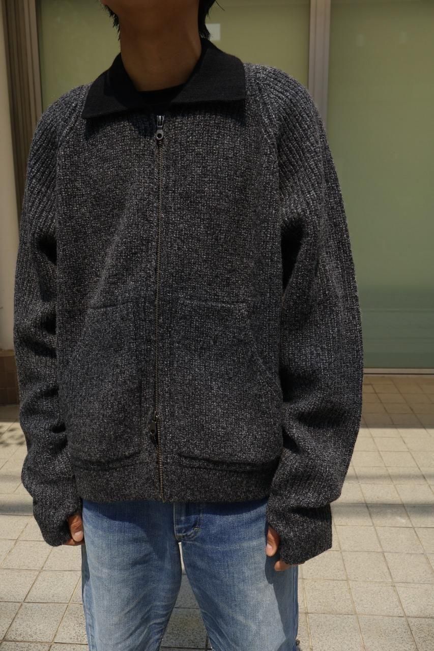 ラムウールのメランジ糸を使用した畦編みのニットブルゾン。
