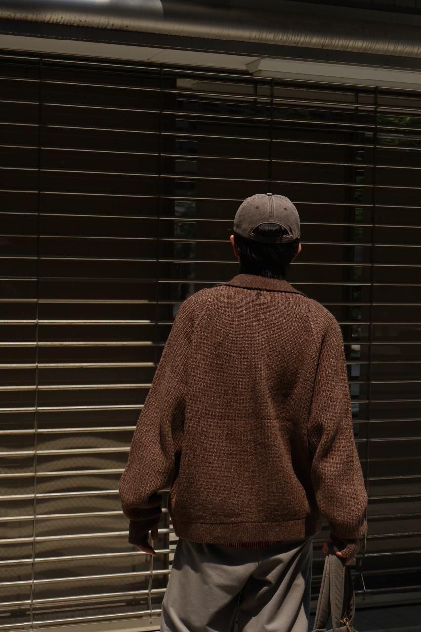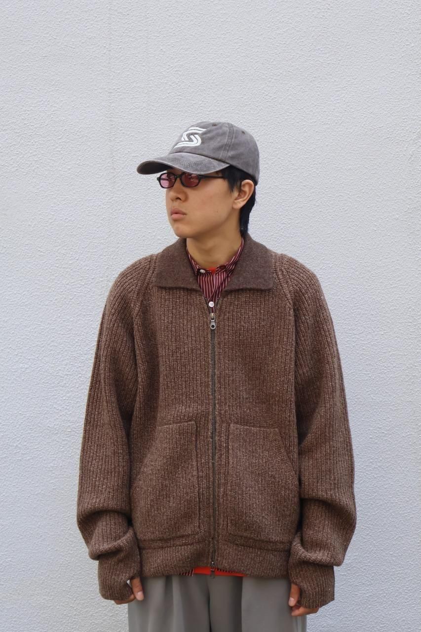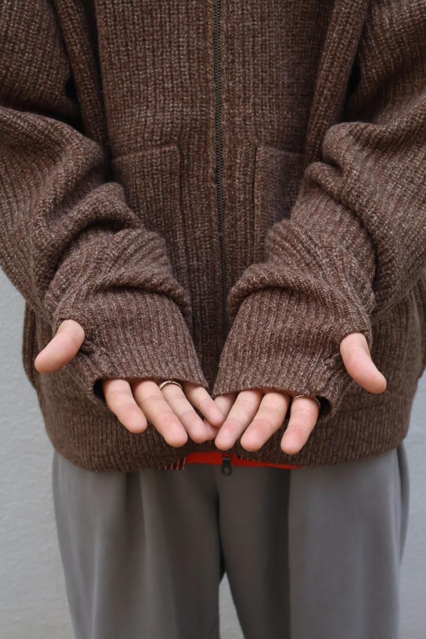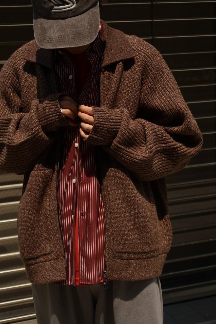 ラムウールのメランジ糸を使用した畦編みのニットブルゾン。
