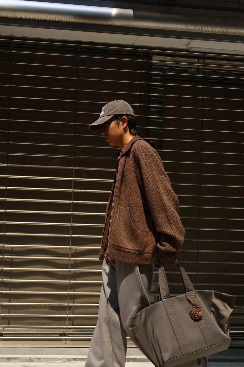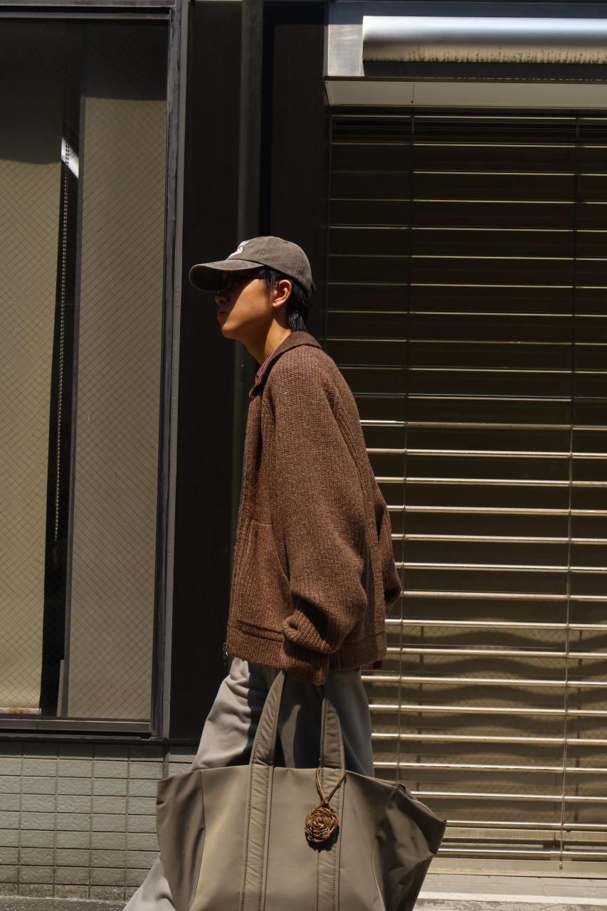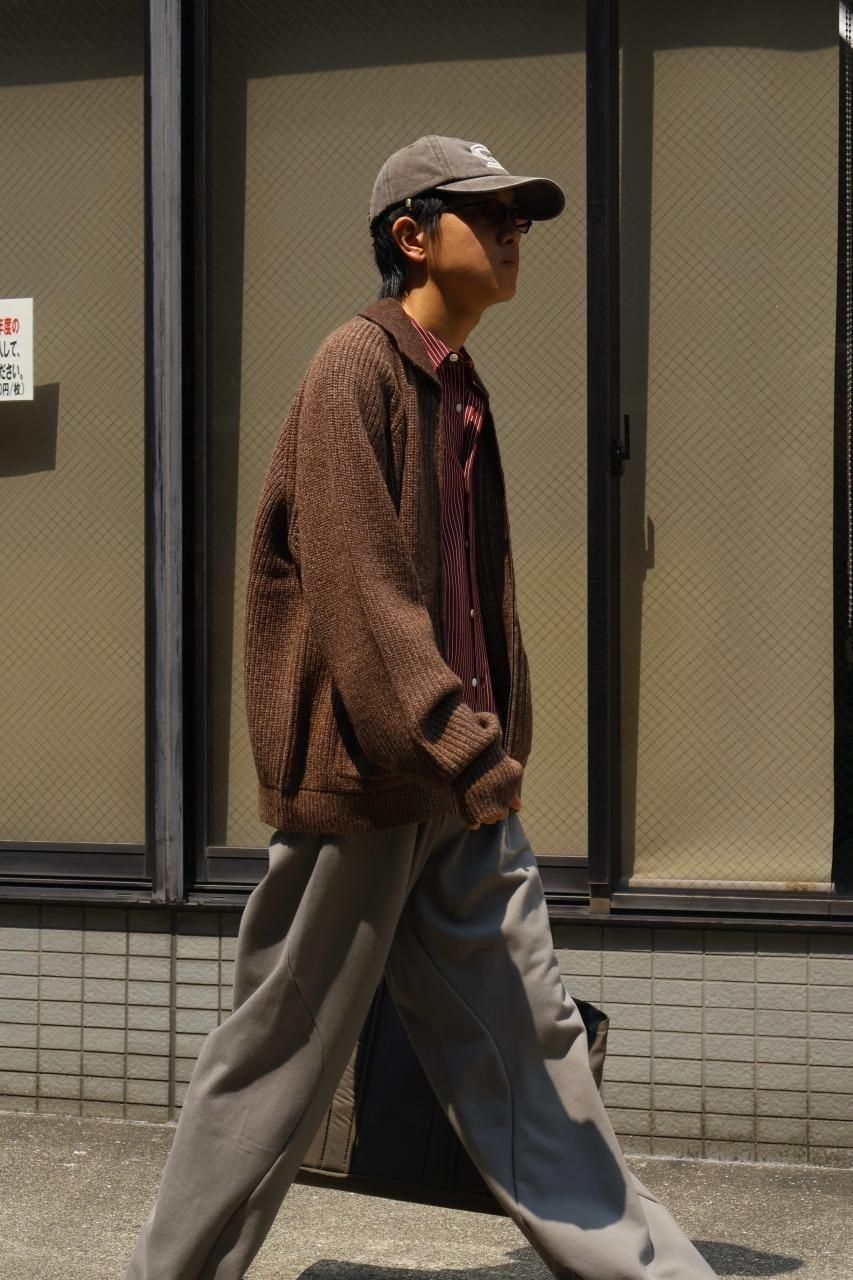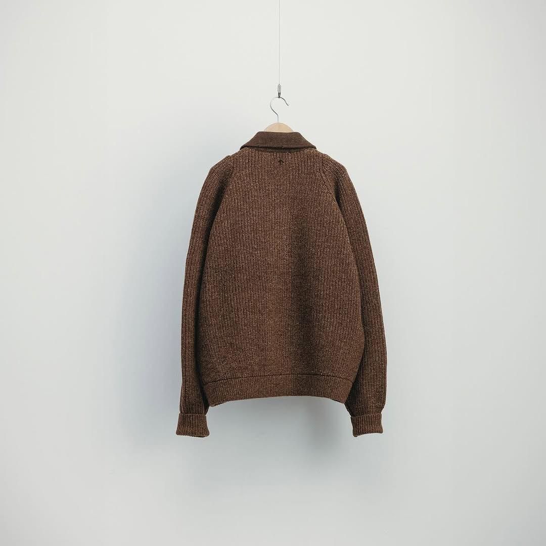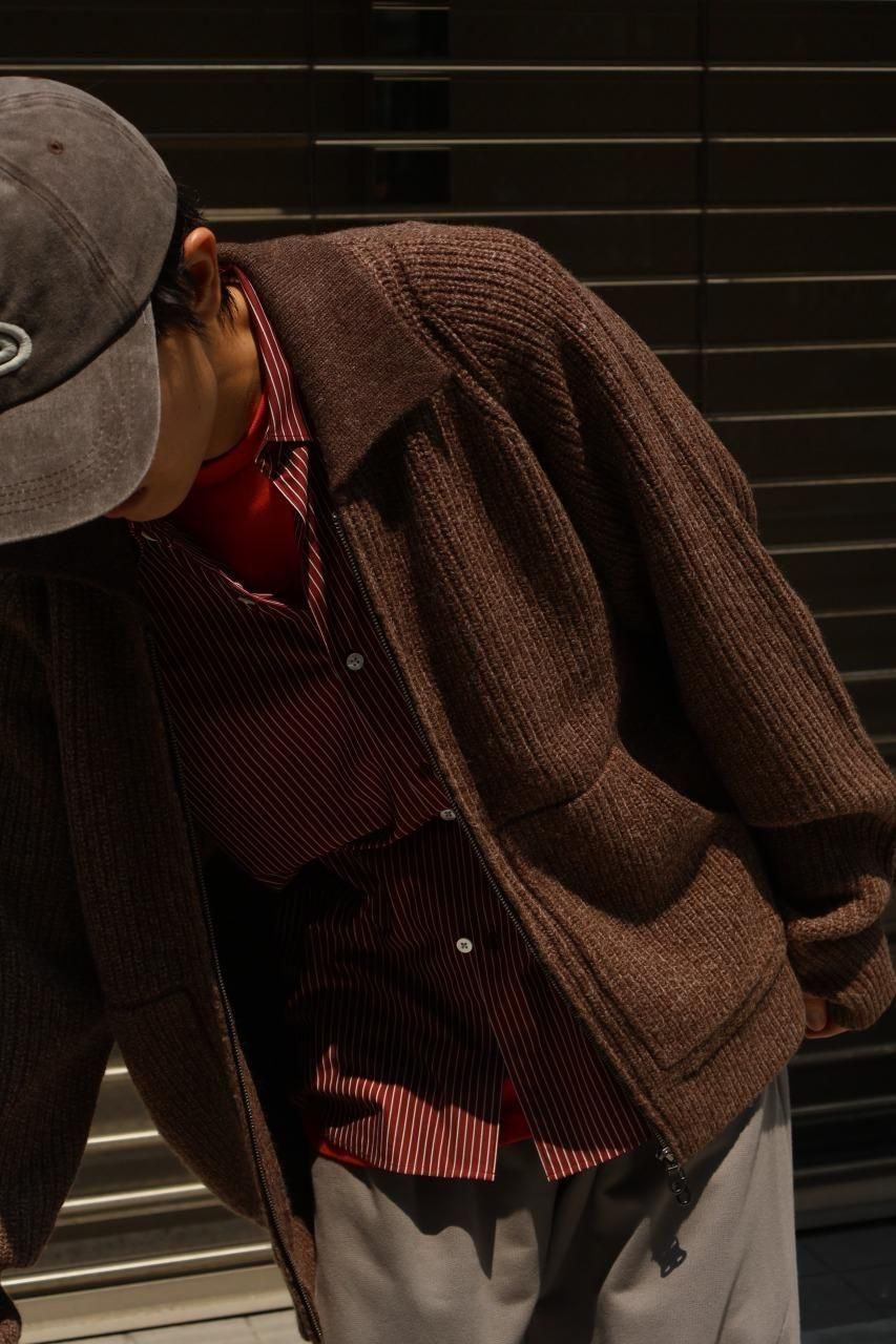 ラムウールのメランジ糸を使用した畦編みのニットブルゾン。