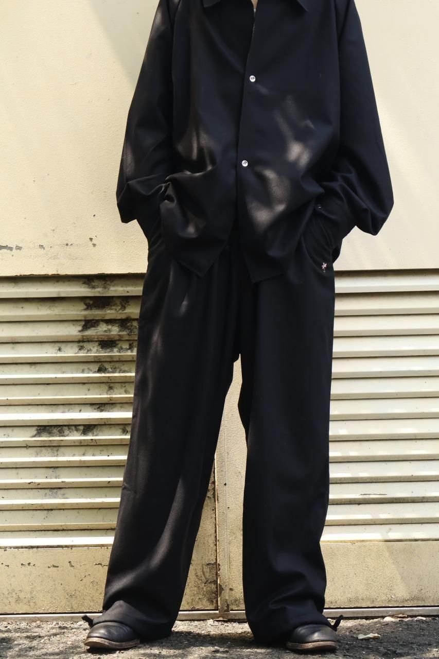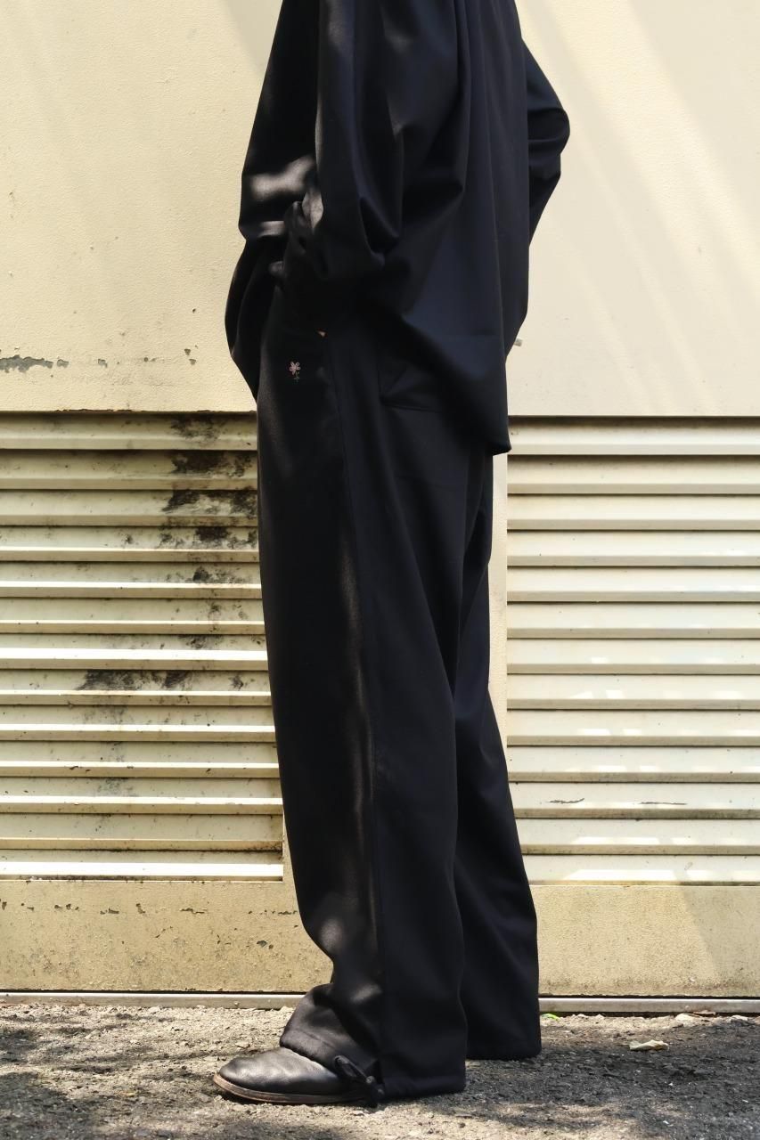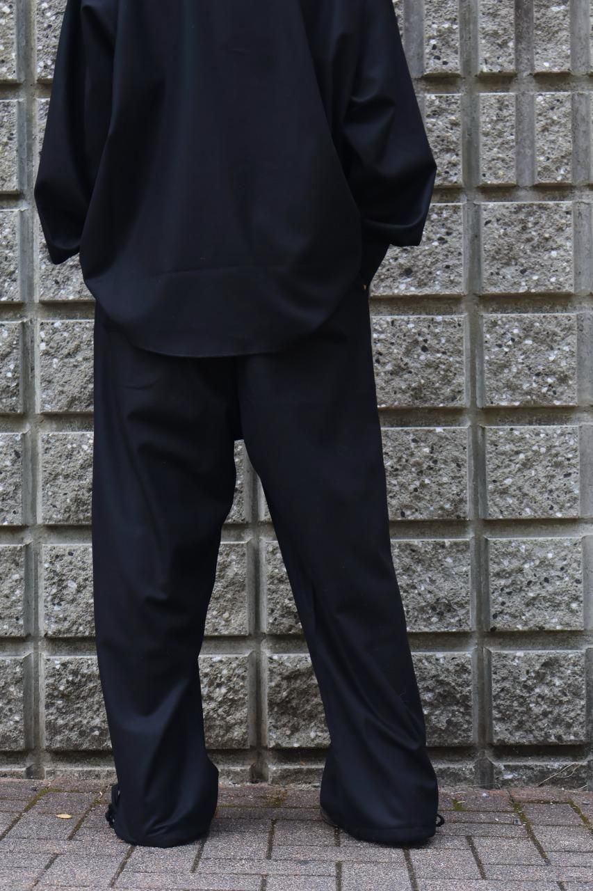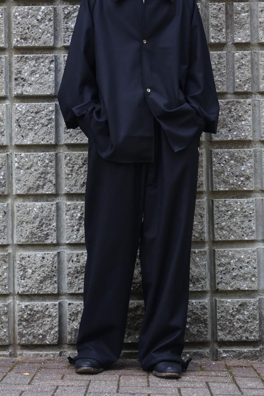カシミヤ混の生地を使用し、イージー仕様に仕上げたウールパンツ。