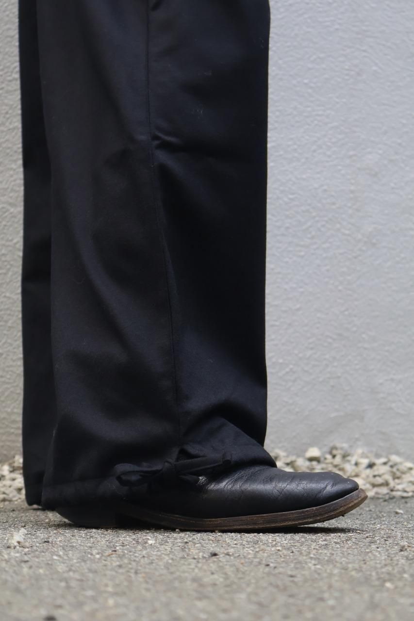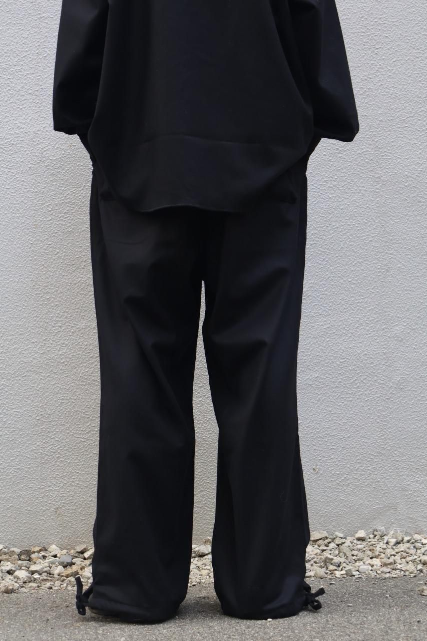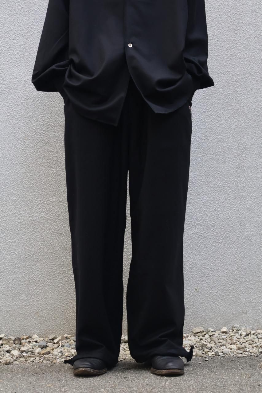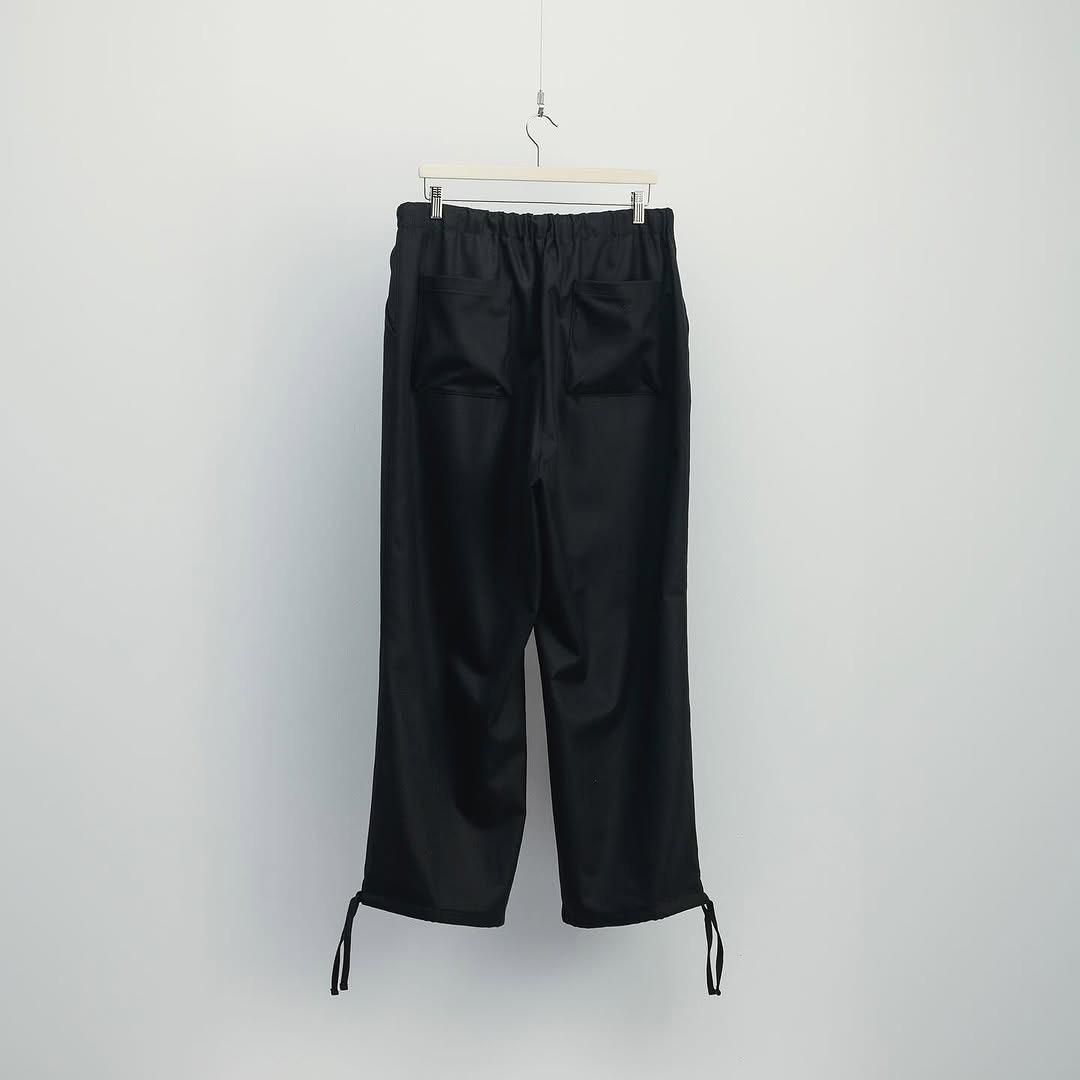 カシミヤ混の生地を使用し、イージー仕様に仕上げたウールパンツ。