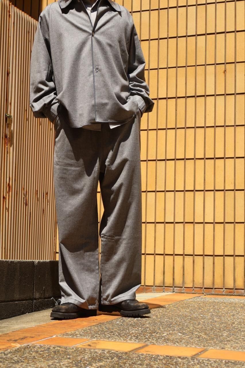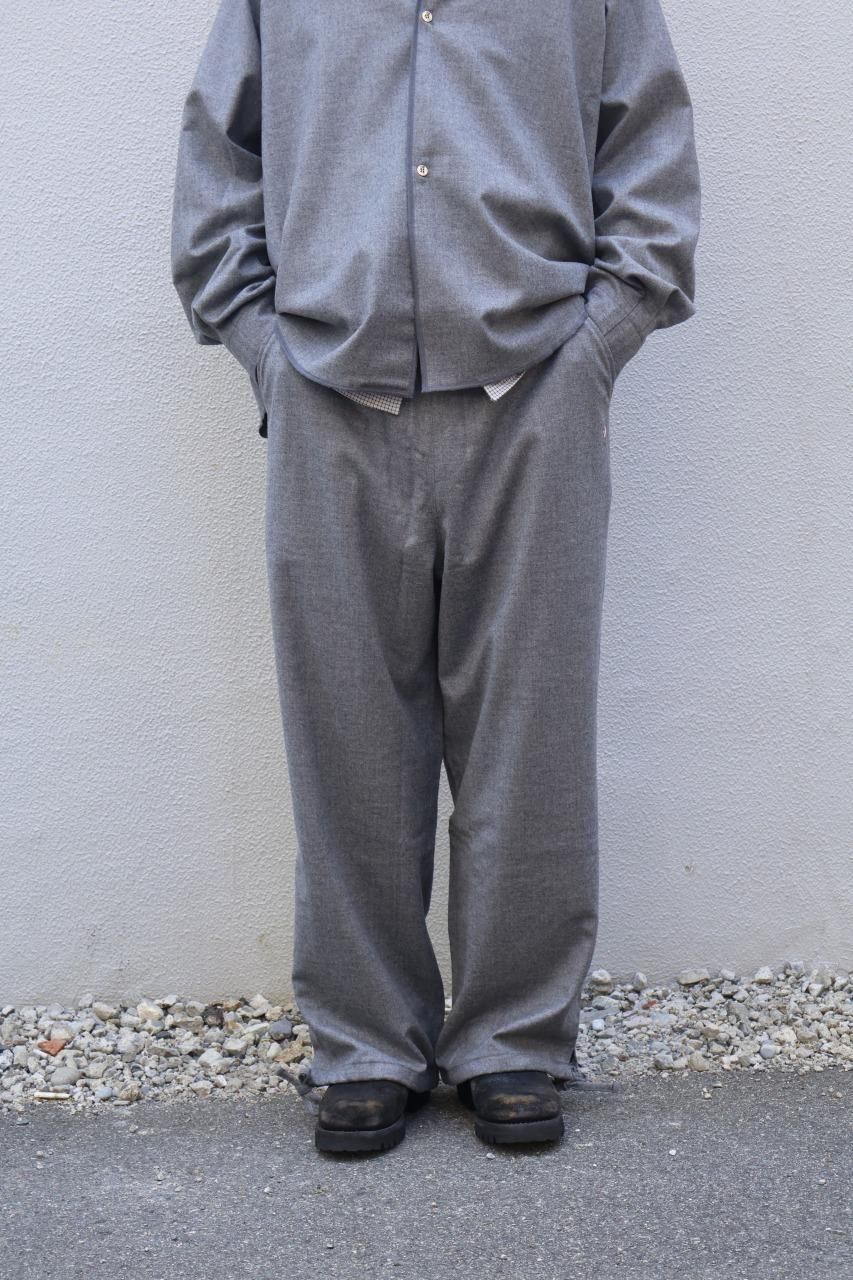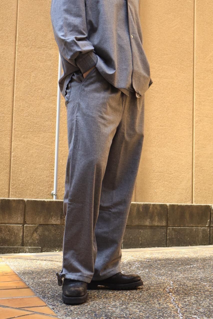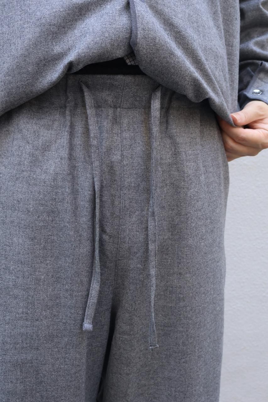 カシミヤ混の生地を使用し、イージー仕様に仕上げたウールパンツ。