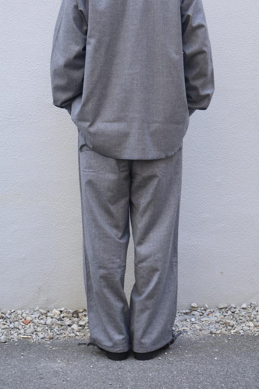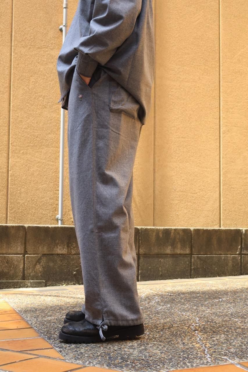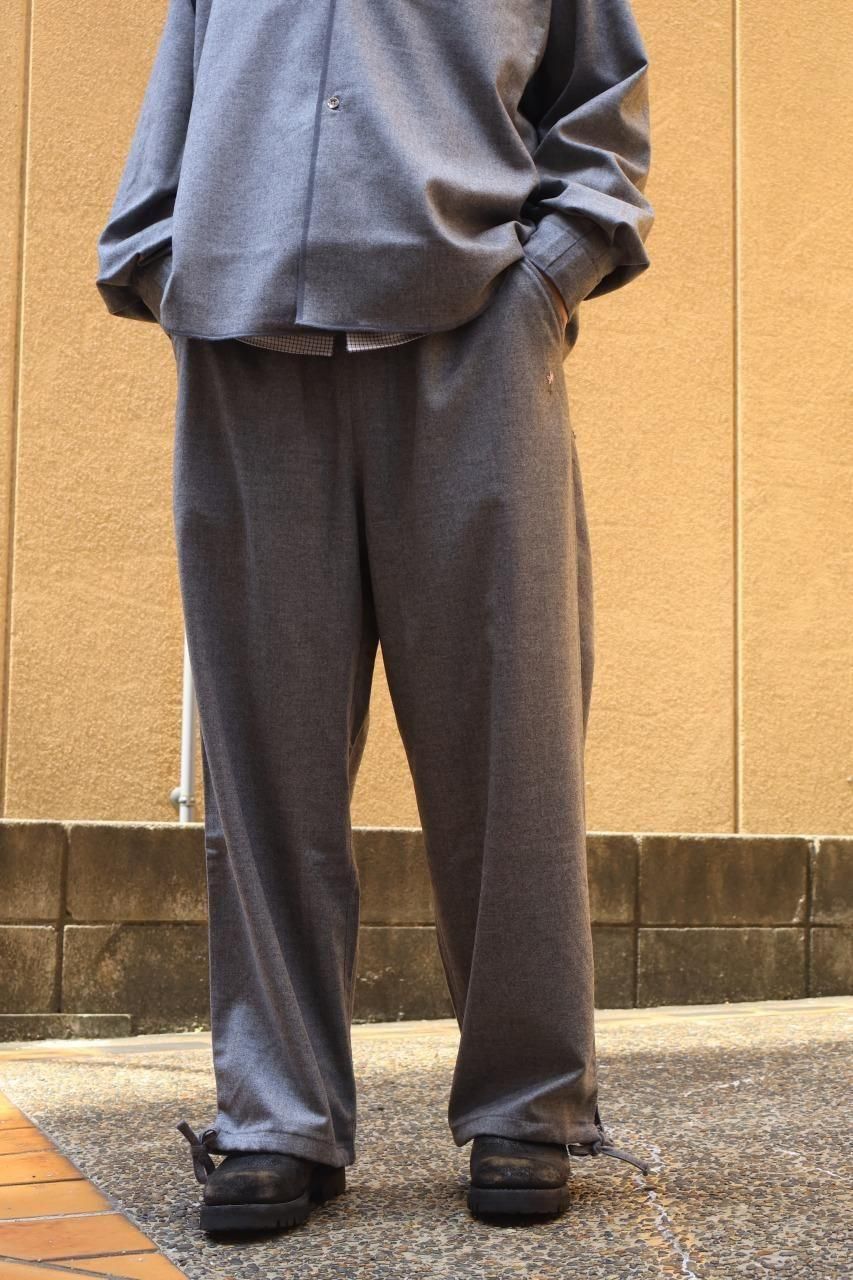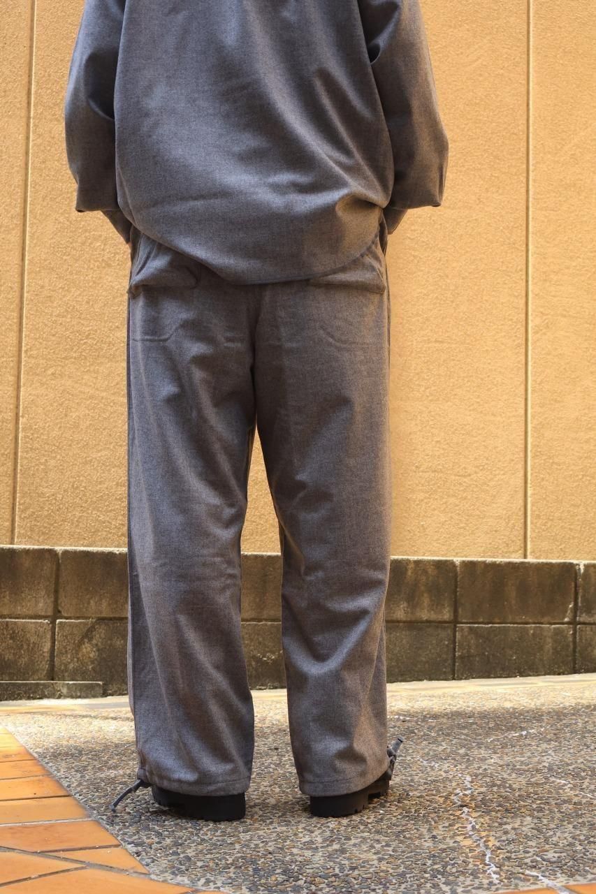 カシミヤ混の生地を使用し、イージー仕様に仕上げたウールパンツ。