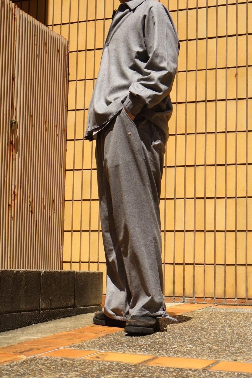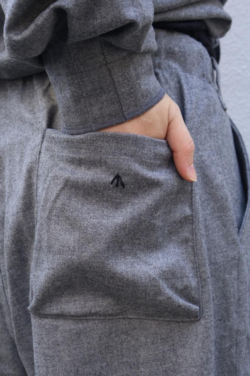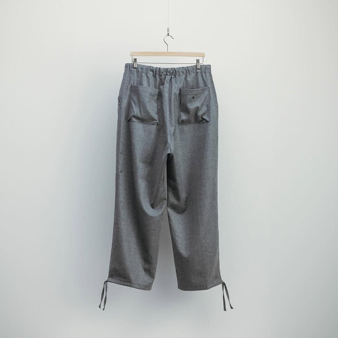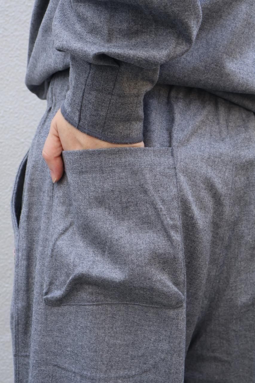 カシミヤ混の生地を使用し、イージー仕様に仕上げたウールパンツ。