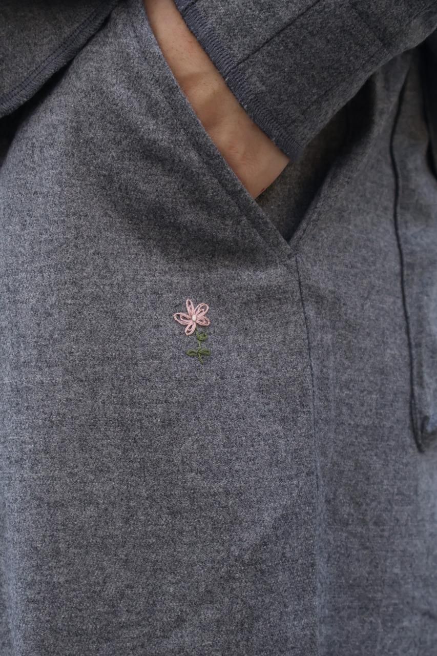 左ポケット口付近に花の手刺繍が入り、裾はドローコード入りとなります。