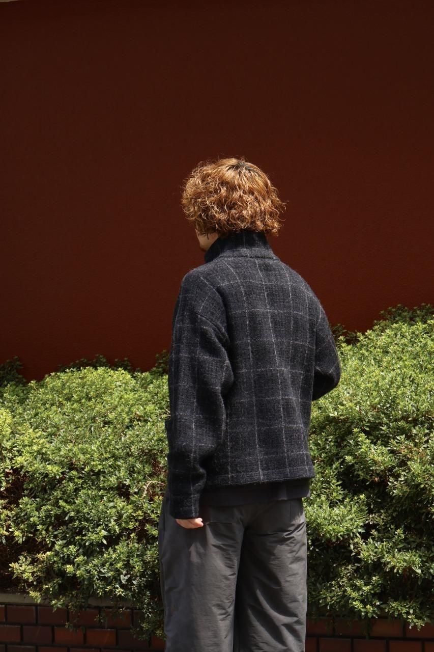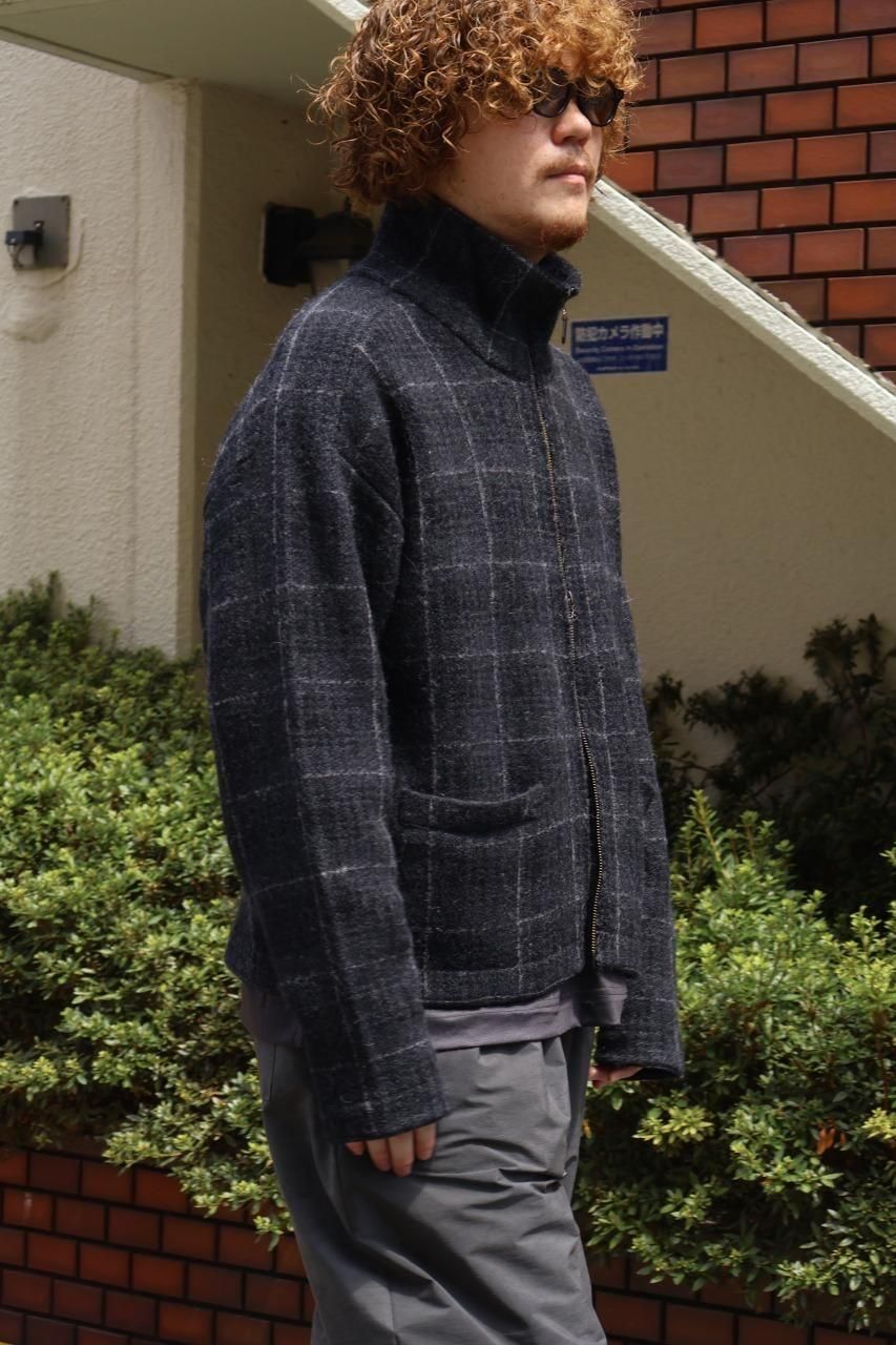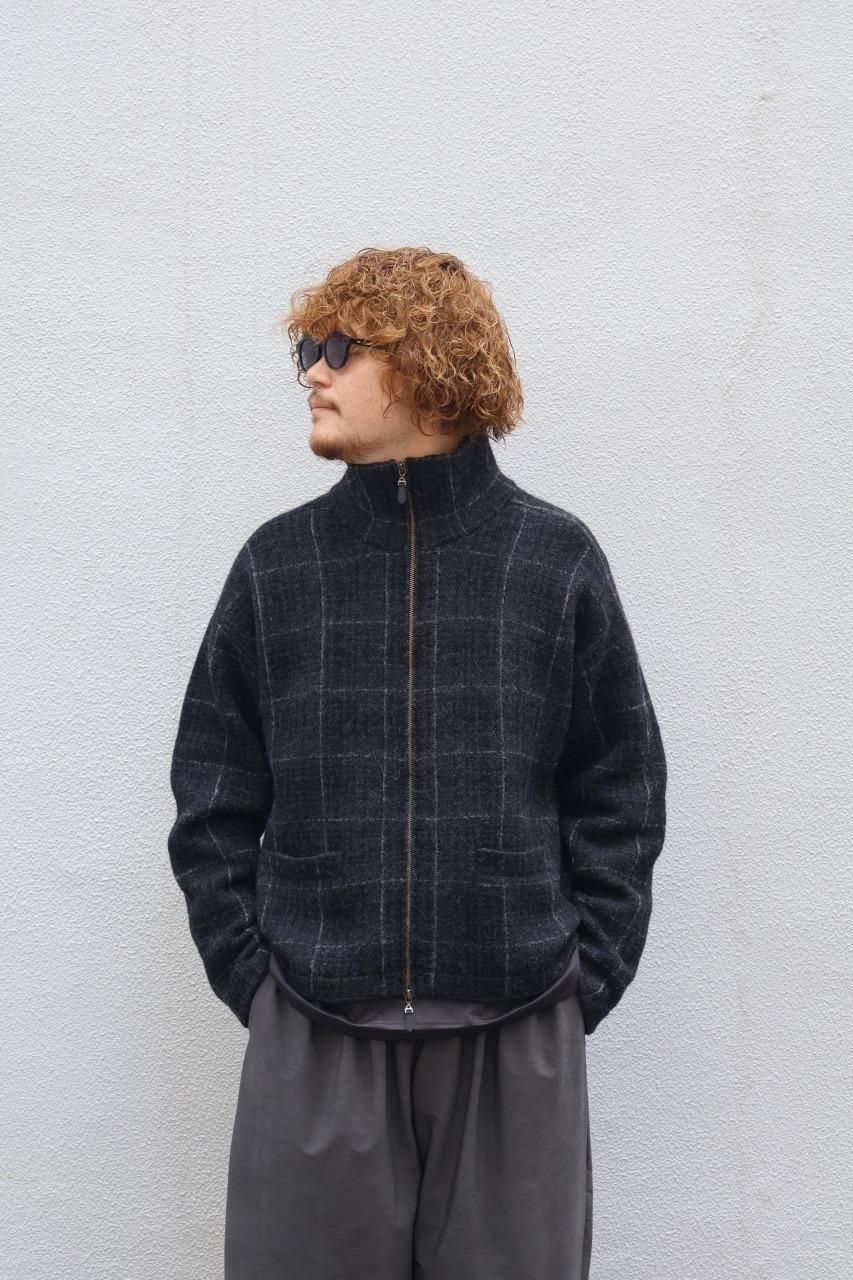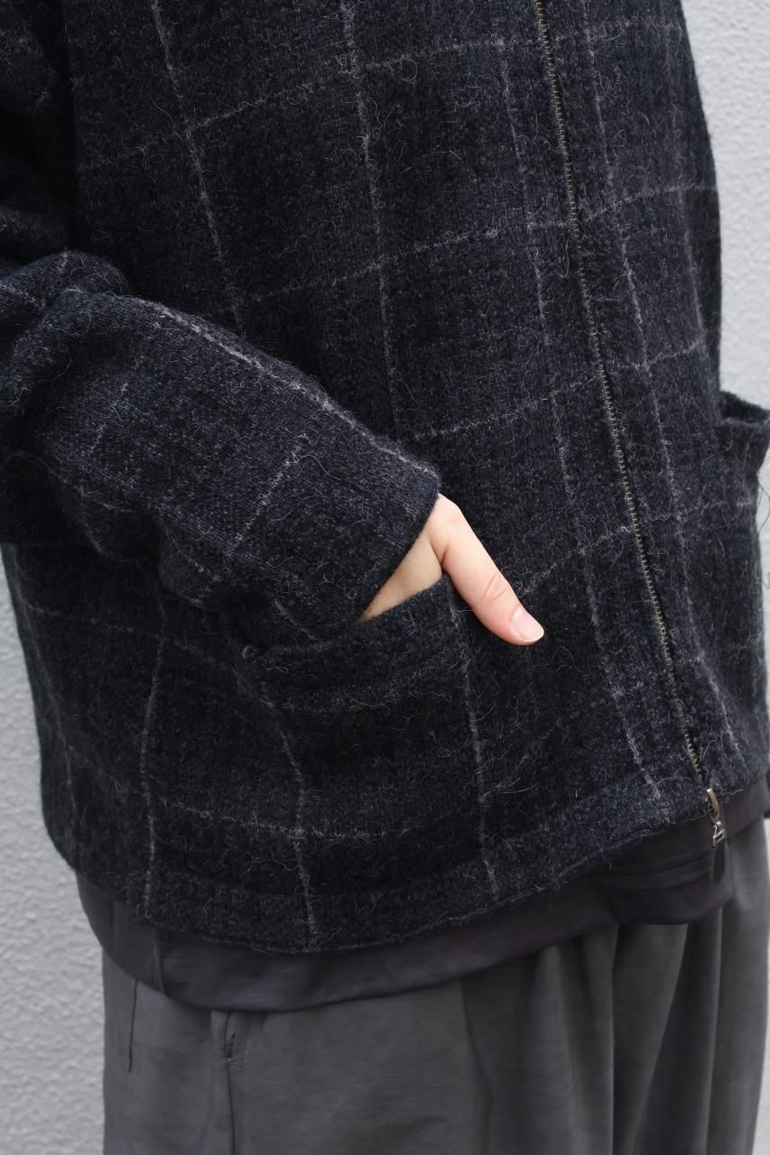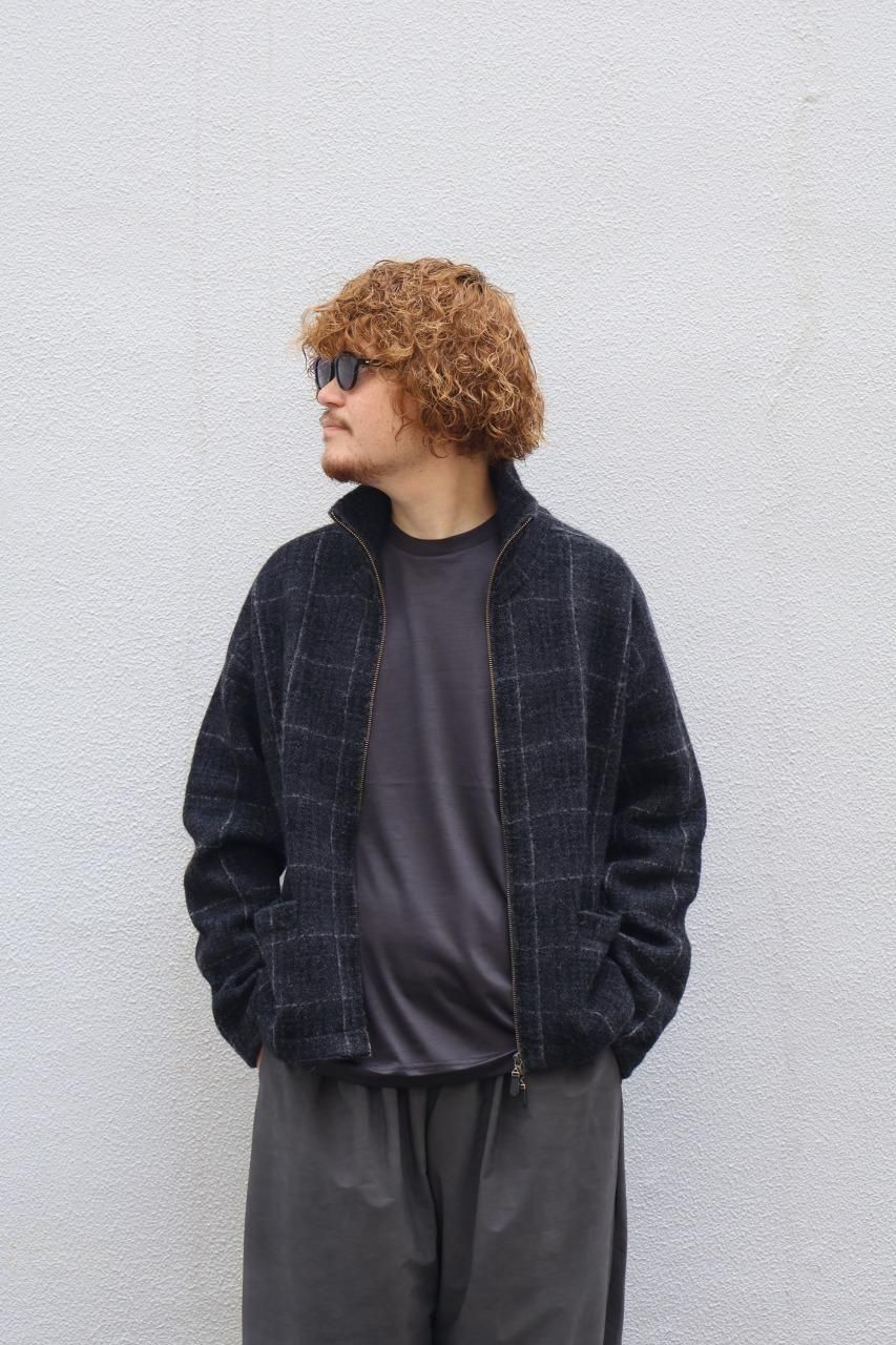 チェック柄のジャガードニットをドライバーズ型に仕立てました。