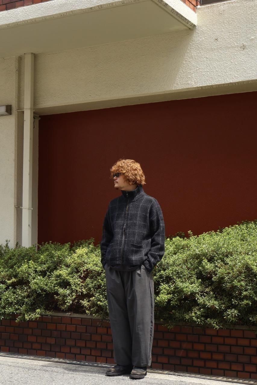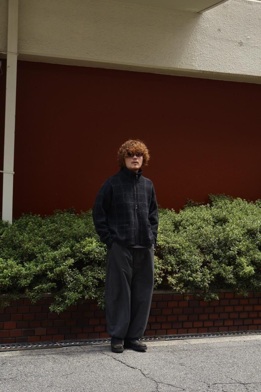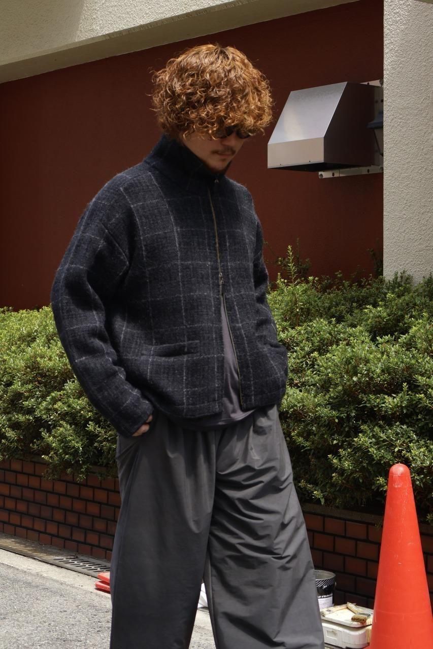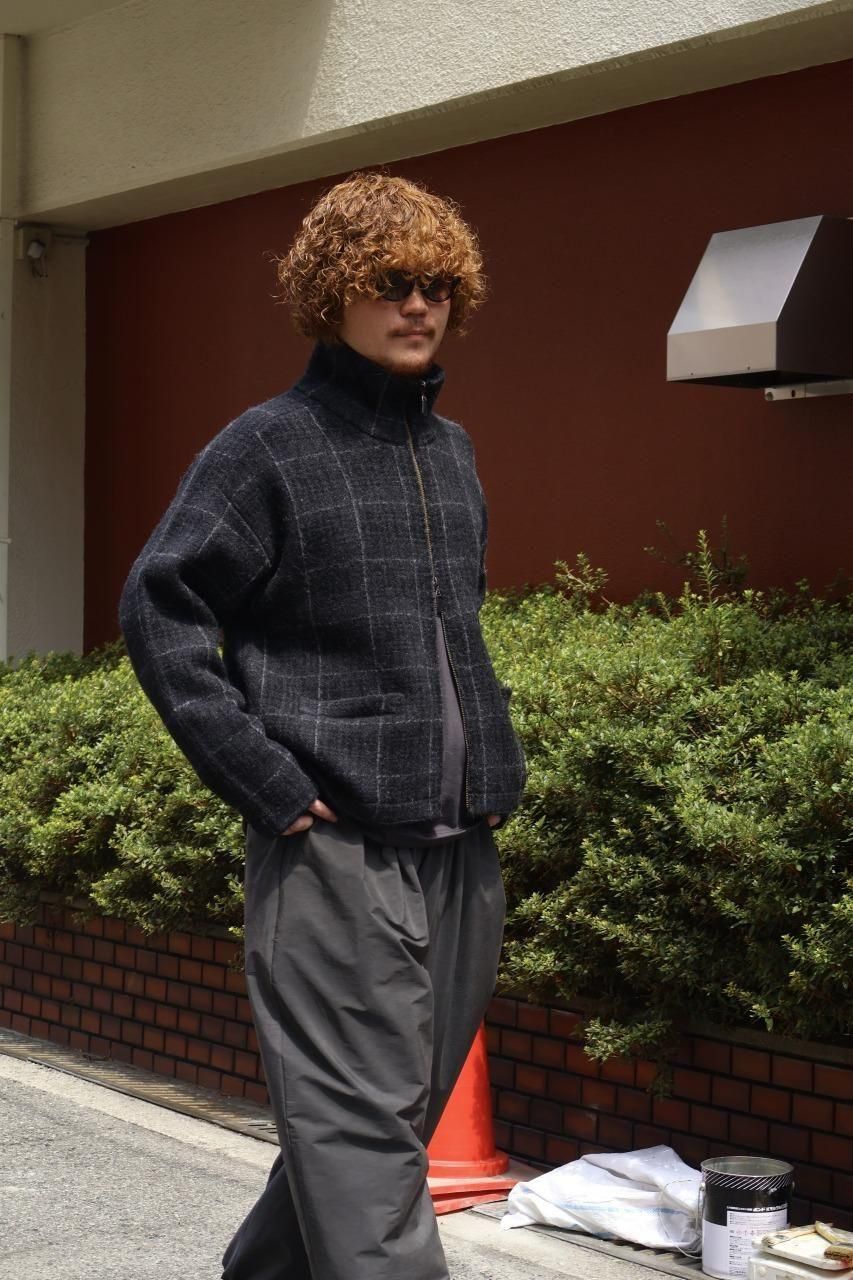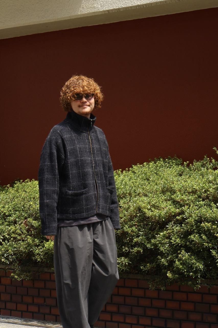 チェック柄のジャガードニットをドライバーズ型に仕立てました。