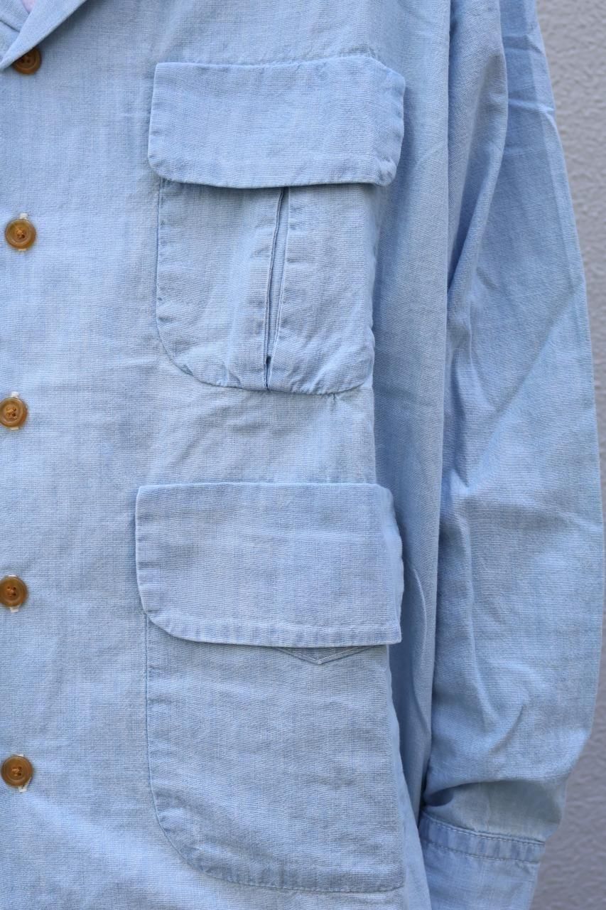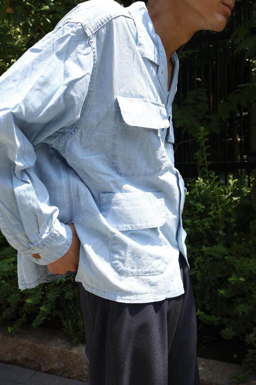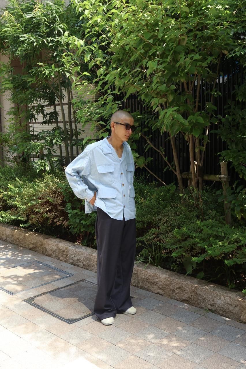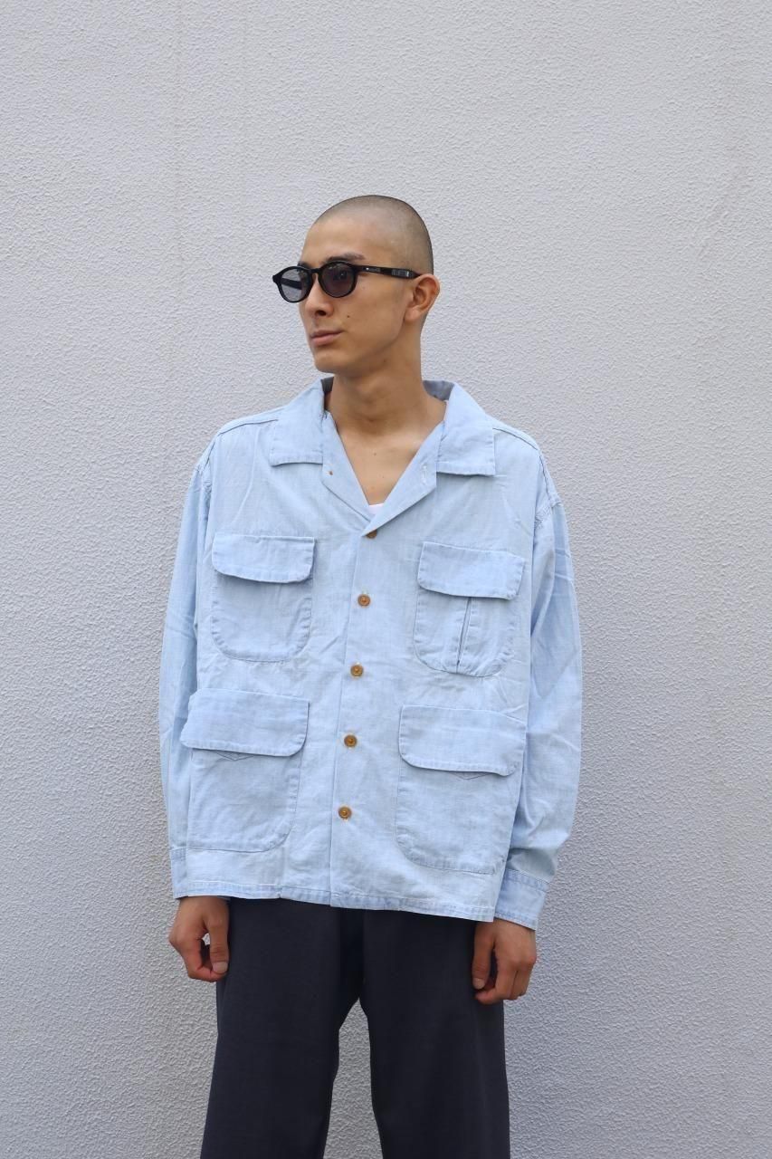 オープンカラーから連想するディティールを随所に散りばめており、衿やフラップポケットは50'sレーヨンシャツの袋縫い仕様、左胸ポケットや背中のアクションプリーツはボーリングシャツ仕様、4つのフロントポケットはキューバシャツ仕様をそれぞれ採用しております。