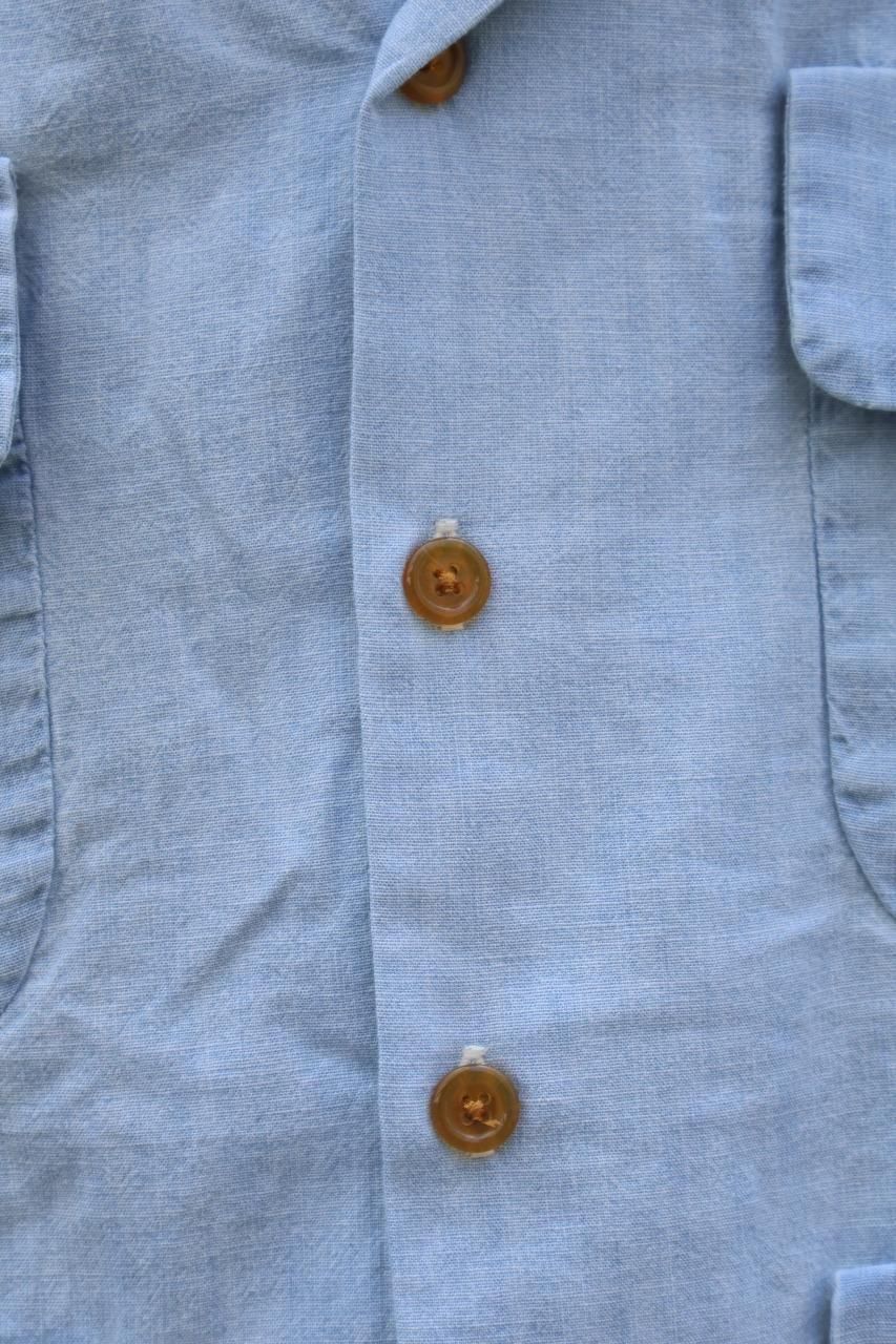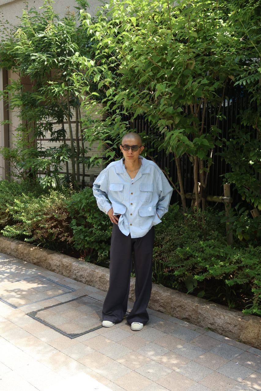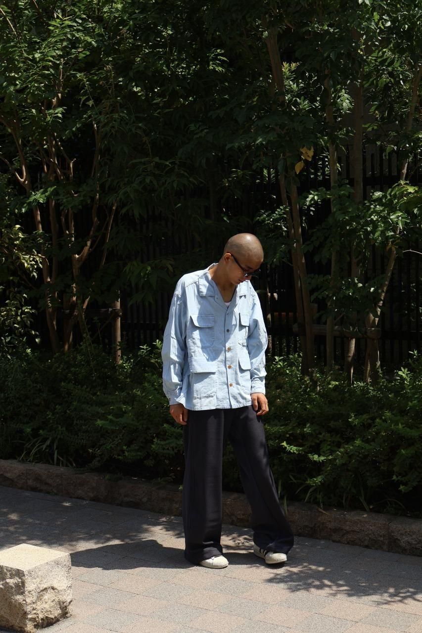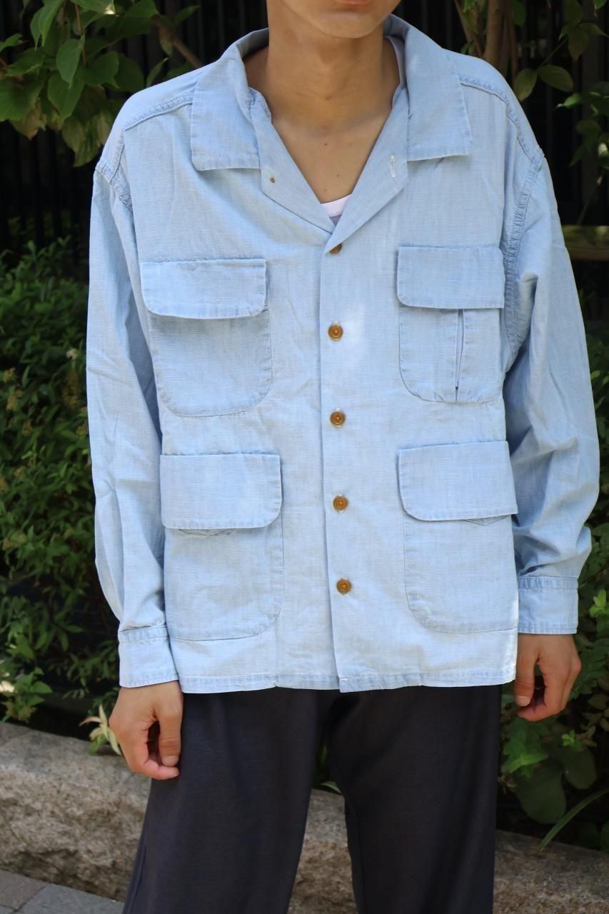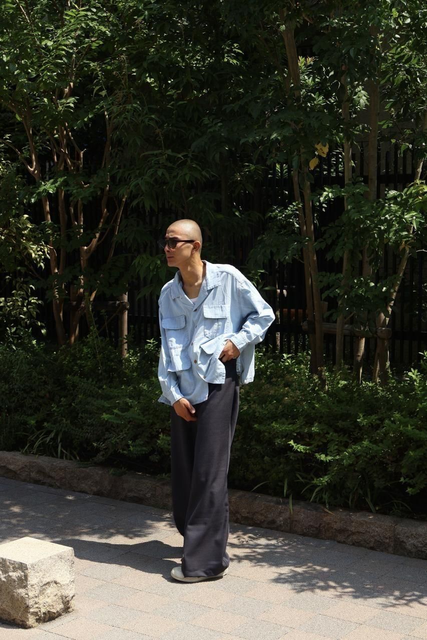 オープンカラーから連想するディティールを随所に散りばめており、衿やフラップポケットは50'sレーヨンシャツの袋縫い仕様、左胸ポケットや背中のアクションプリーツはボーリングシャツ仕様、4つのフロントポケットはキューバシャツ仕様をそれぞれ採用しております。