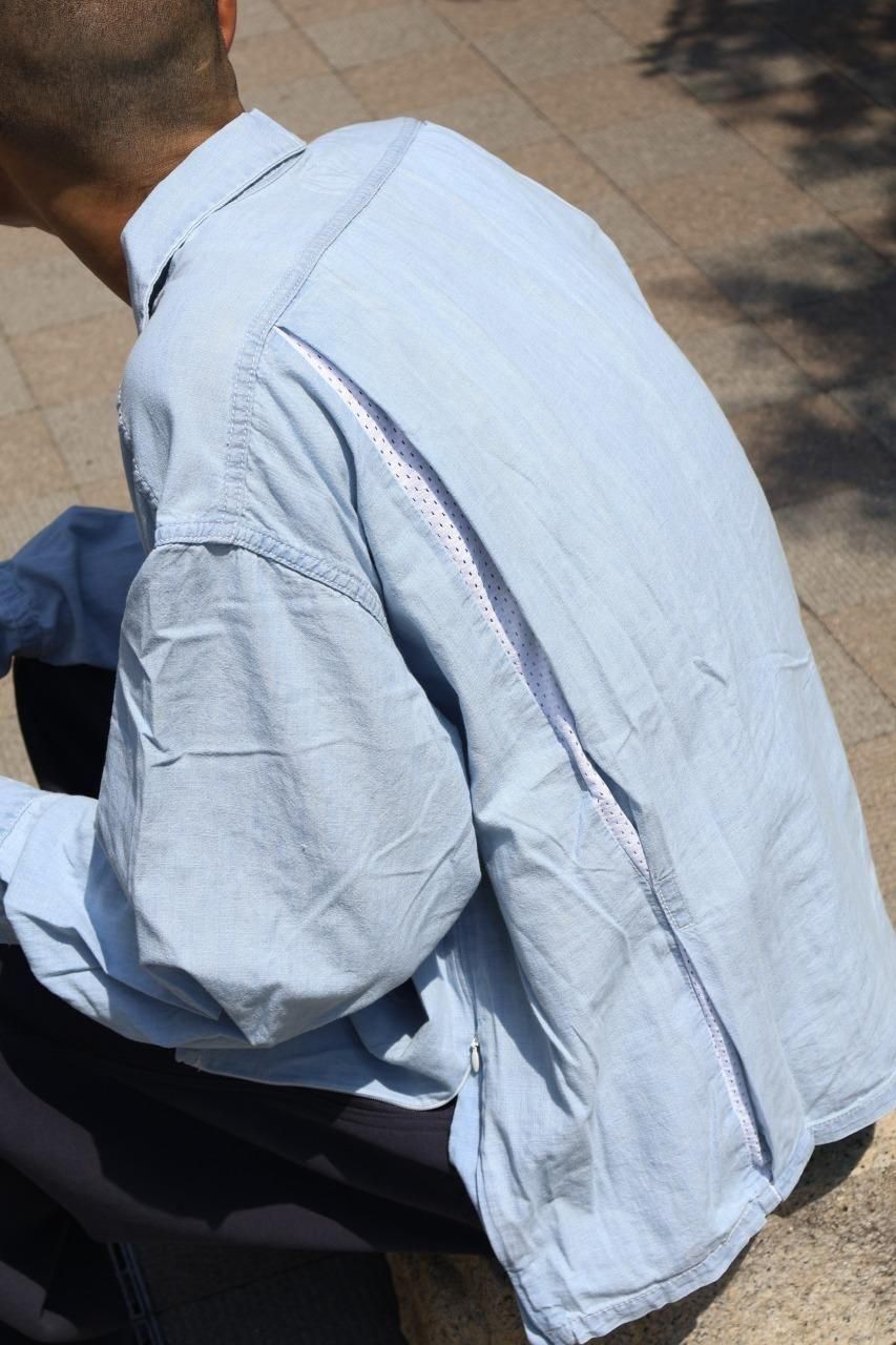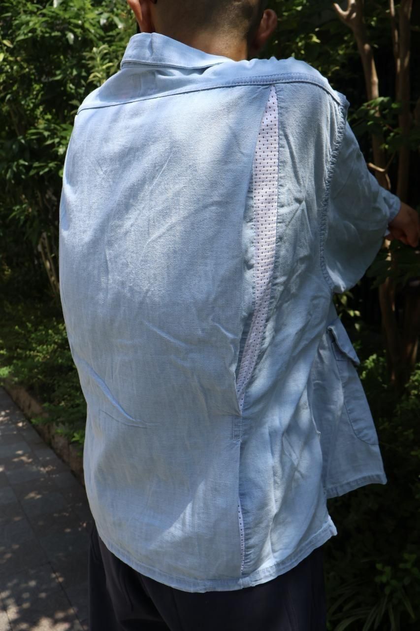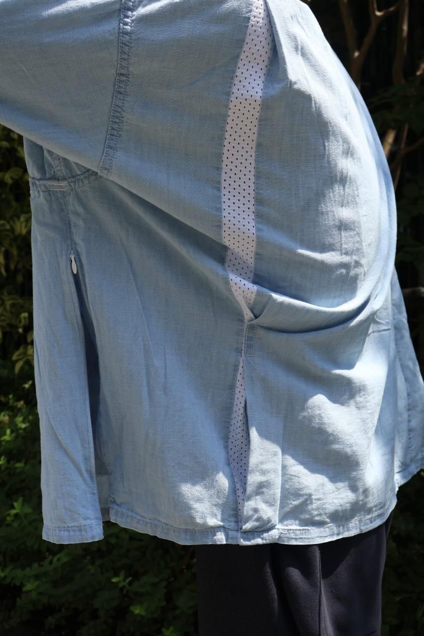 脇のZIPスリットと背中のメッシュ生地を使用することで夏でも快適に着ていただけます。