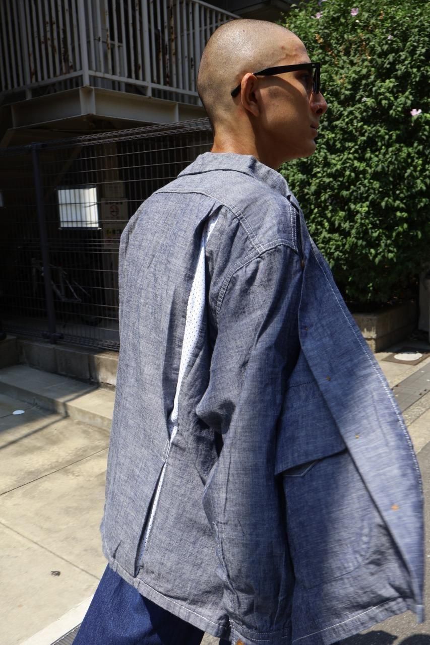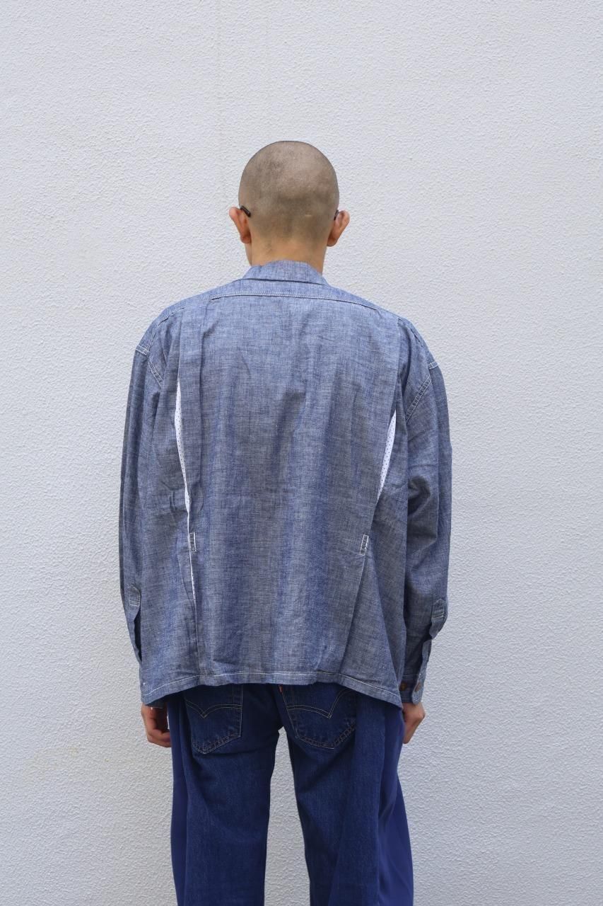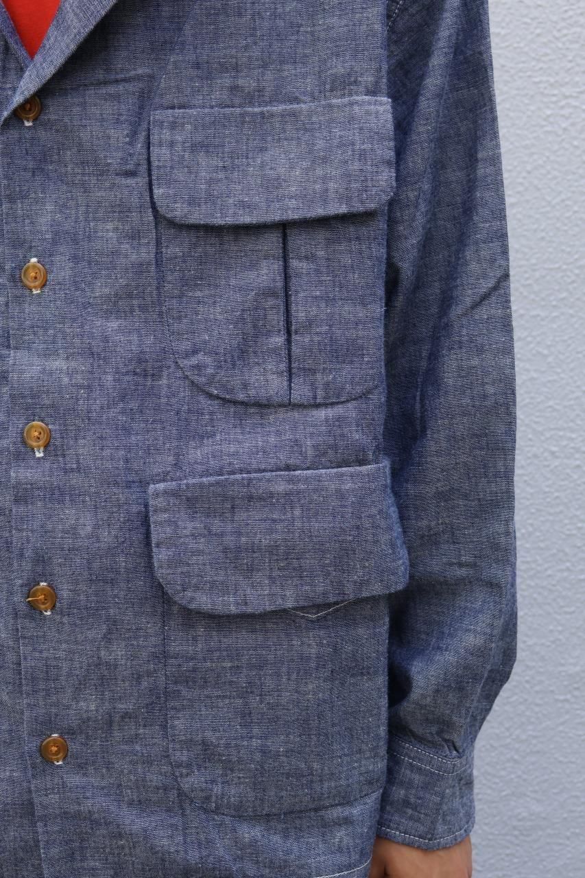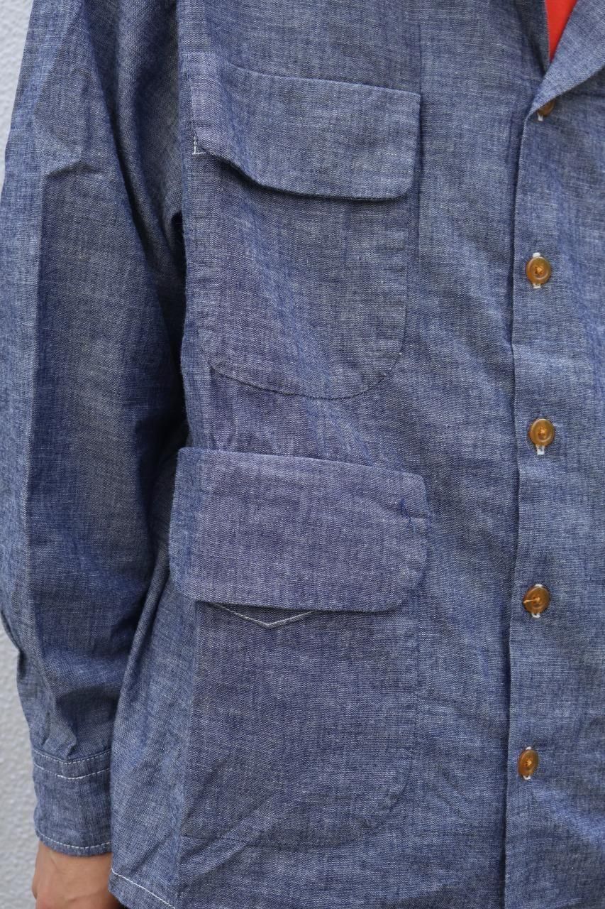 オープンカラーから連想するディティールを随所に散りばめており、衿やフラップポケットは50'sレーヨンシャツの袋縫い仕様、左胸ポケットや背中のアクションプリーツはボーリングシャツ仕様、4つのフロントポケットはキューバシャツ仕様をそれぞれ採用しております。