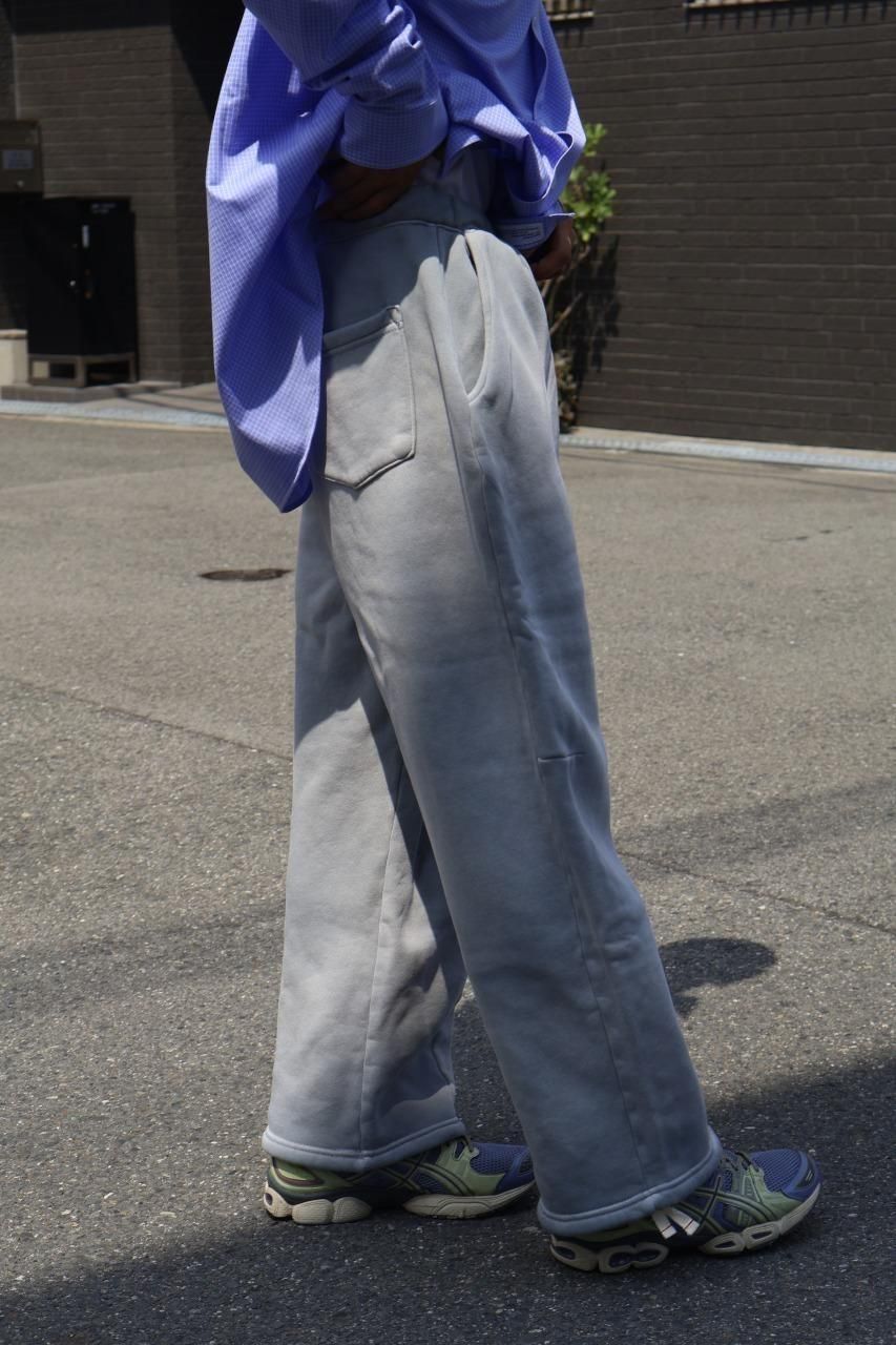 ウエストには2タック、膝部分と裾部分にはダーツが入っており、立体的なワイドシルエットとなっています。