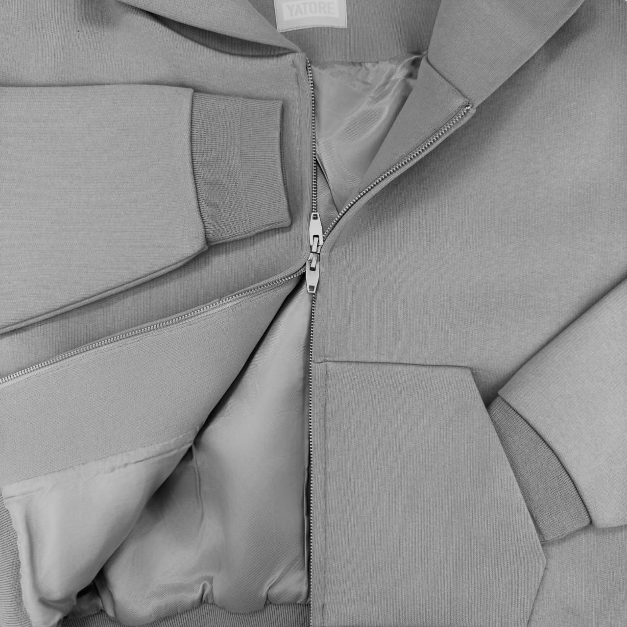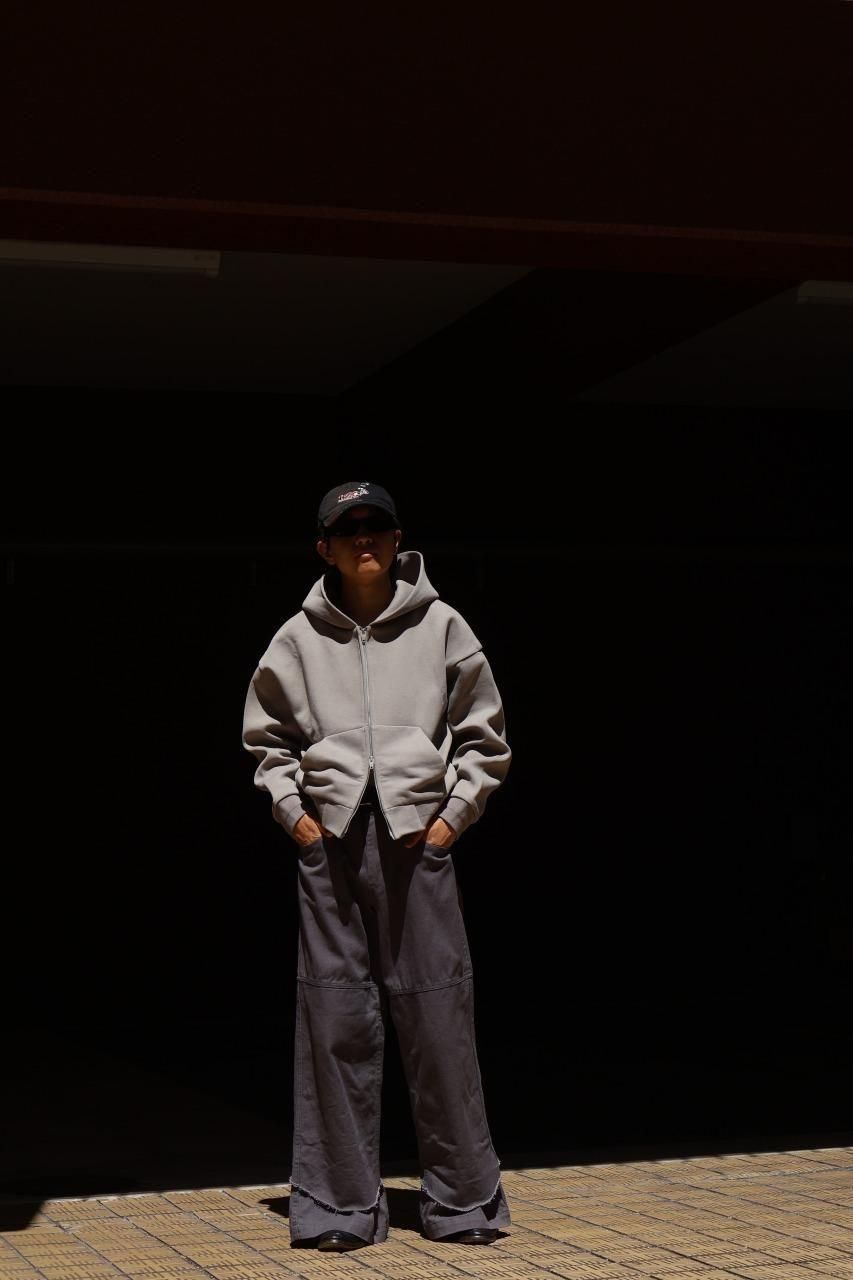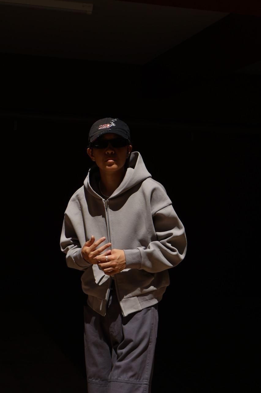 これだけ肉厚な生地のフーディは、もちろん通常の生産過程では作り上げることが不可能なので、テーラードのプレス技術を用いて、シルエットを構築しています。