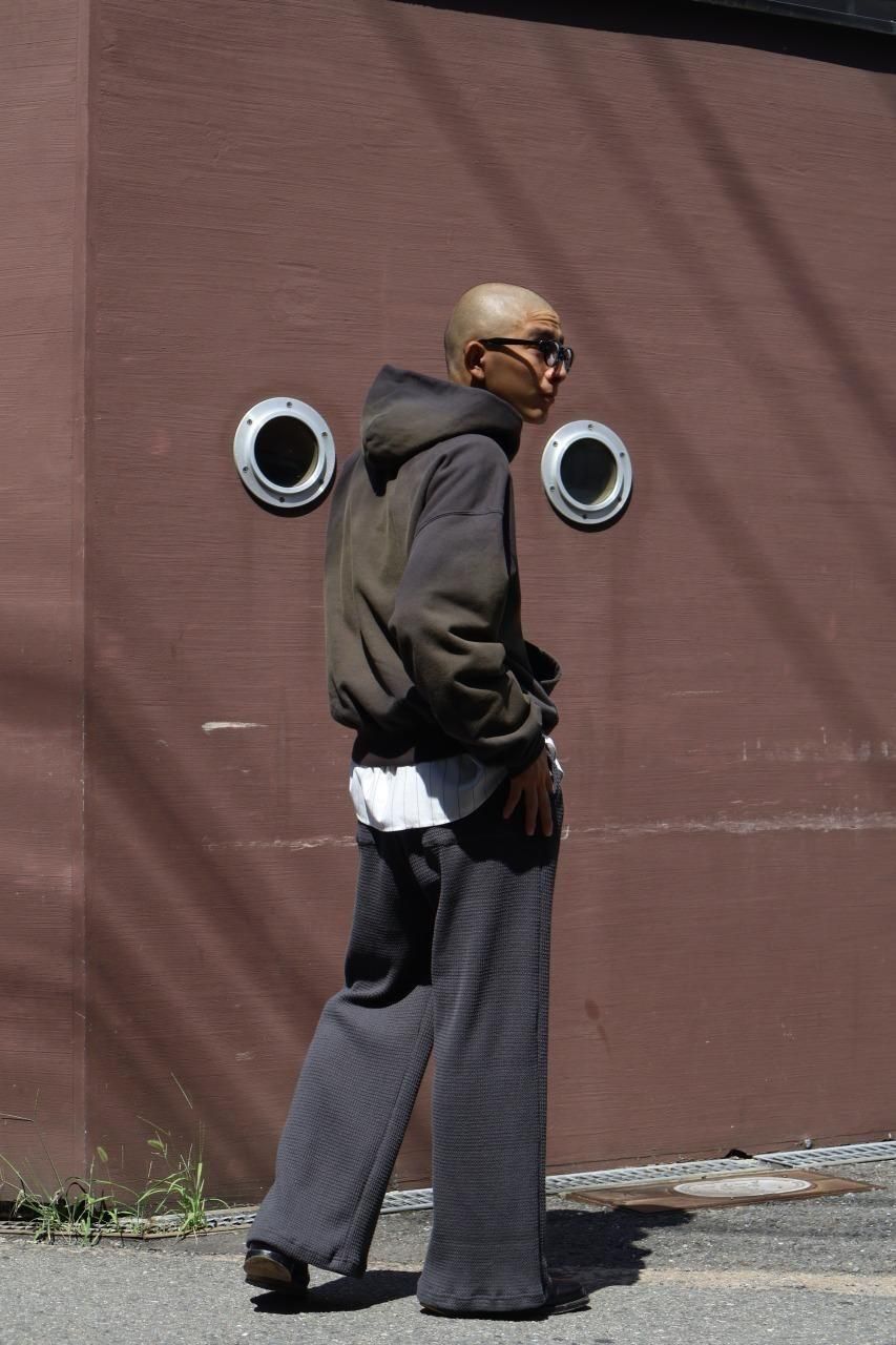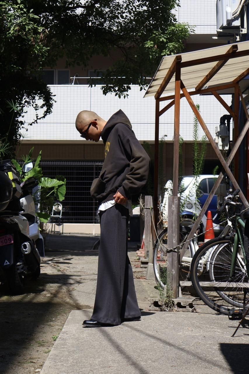 ゆったりとしたサイズ感にすることで素材のとろみ、重みが際立つシルエットになっております。