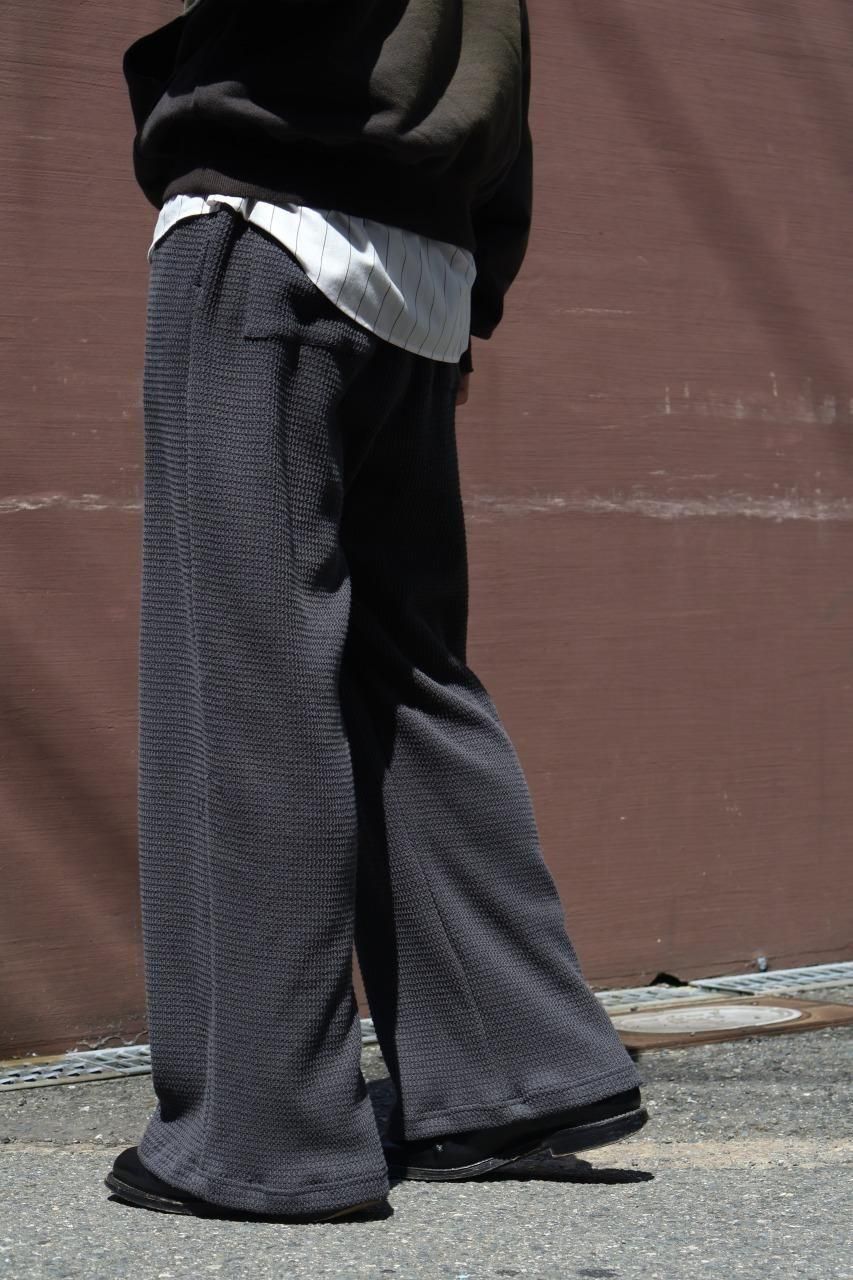 生地にはふんわりとした軽くソフトな風合いが魅力のローゲージワッフル素材を採用しており、ムラ感のある表面感が特徴的です。