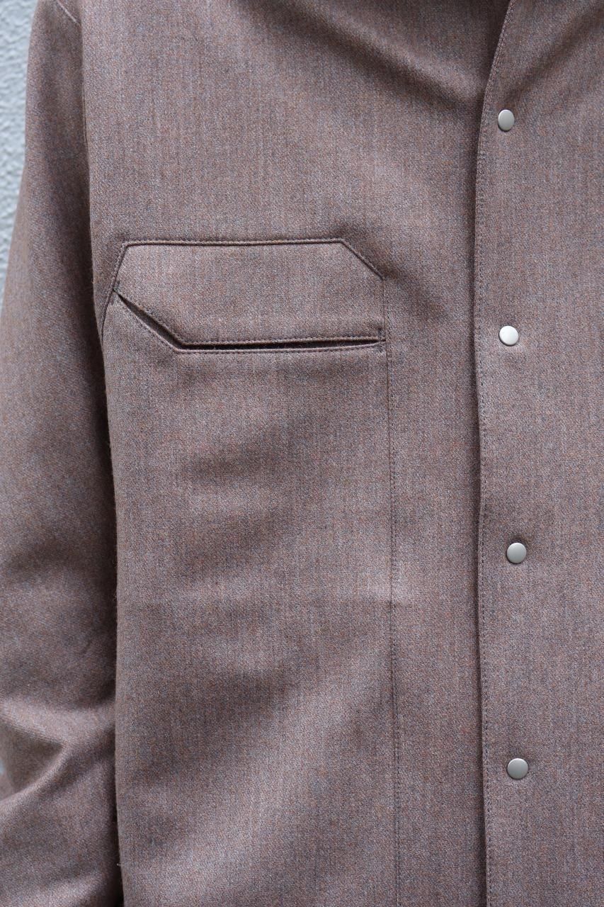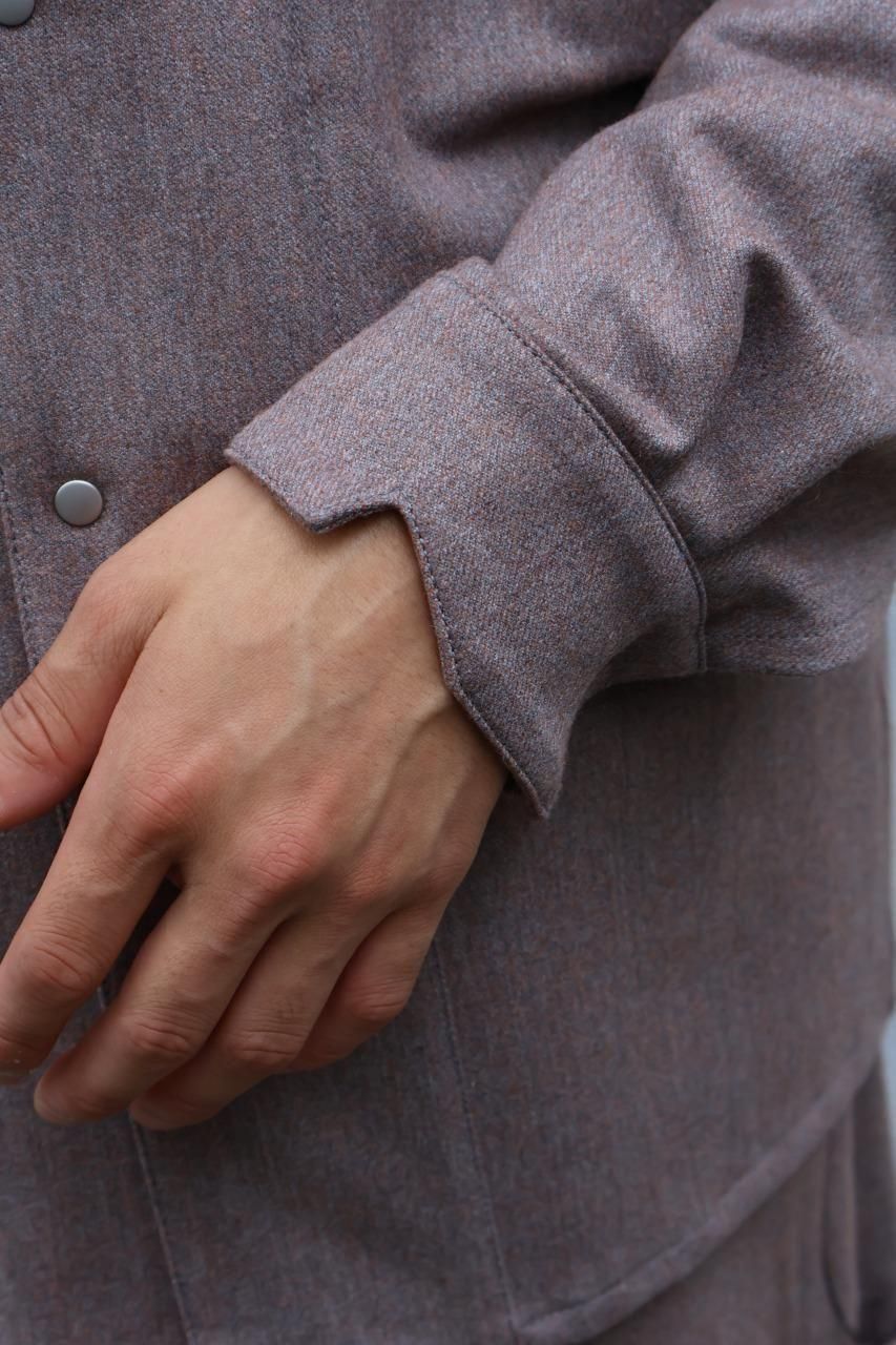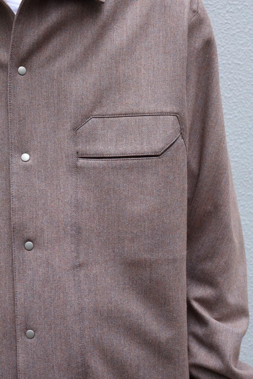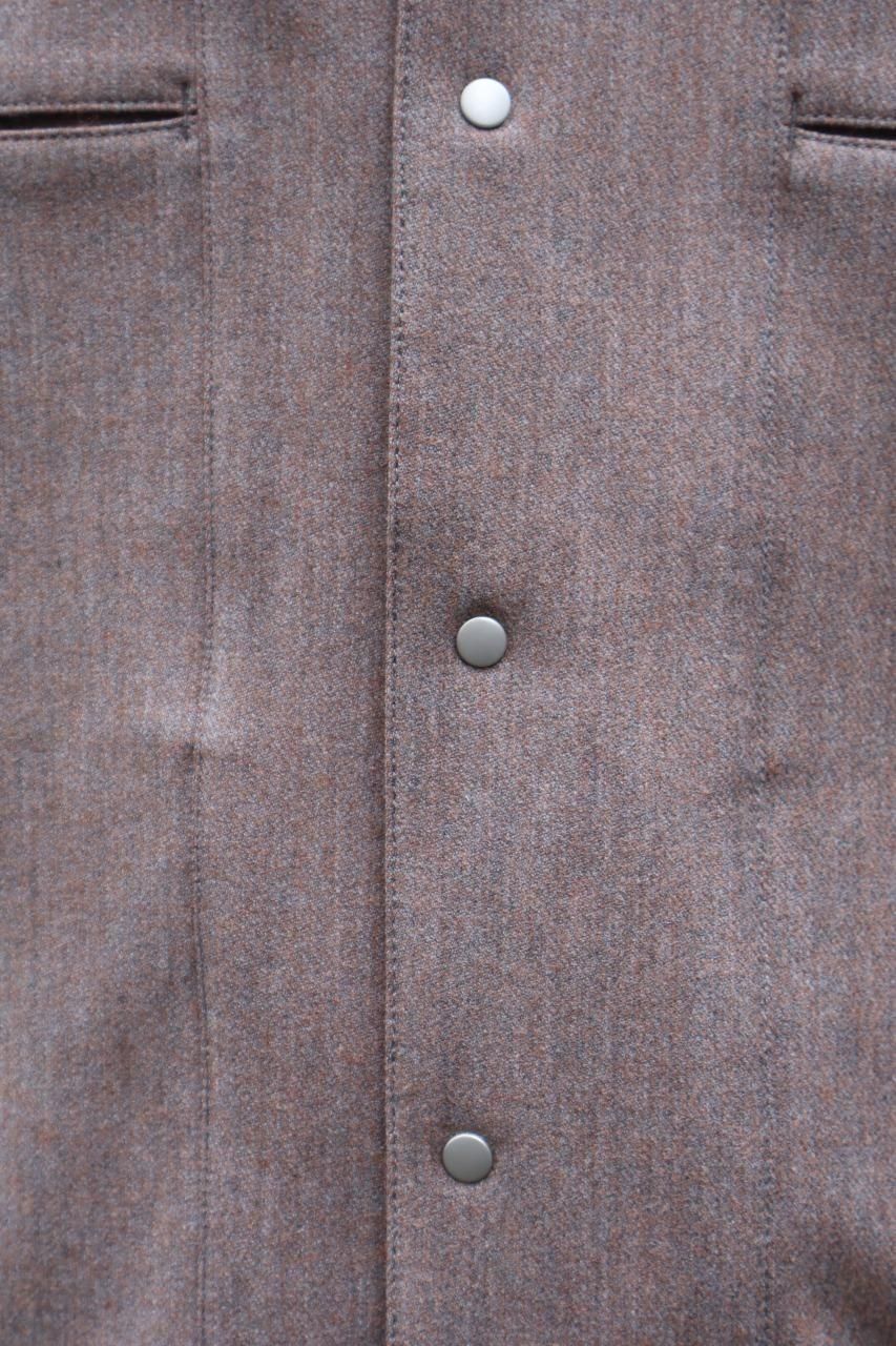 フロントにはブランドらしいデザインのフラップポケットを2つ備えており、前立てはスナップボタンの仕様で利便性とルックスを両立した1着です。