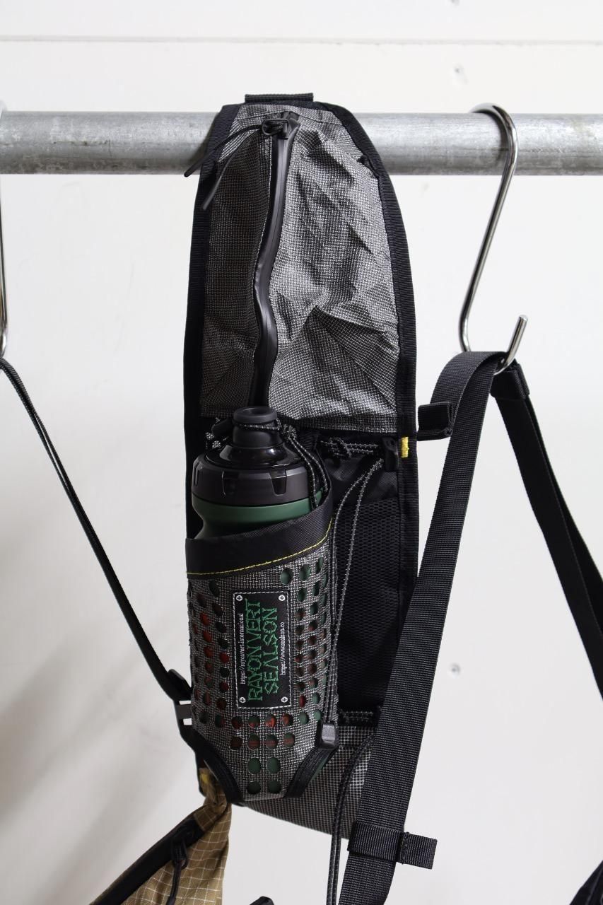 中央にドリンクホルダー、側面にはそれぞれジップポケットとフラップポケットが付き、実際のサイズ感以上に収納力に長けています。