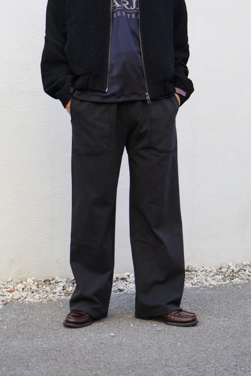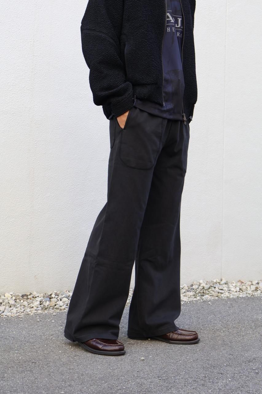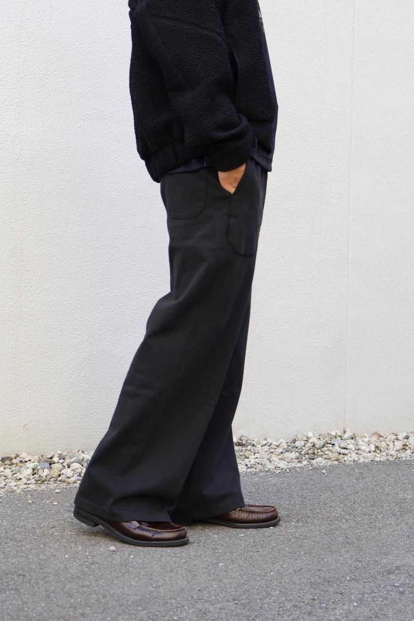 16番手の双糸を用いたヘビーウェイトのワイドパンツ。