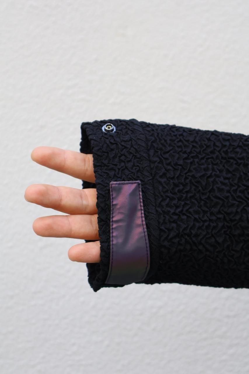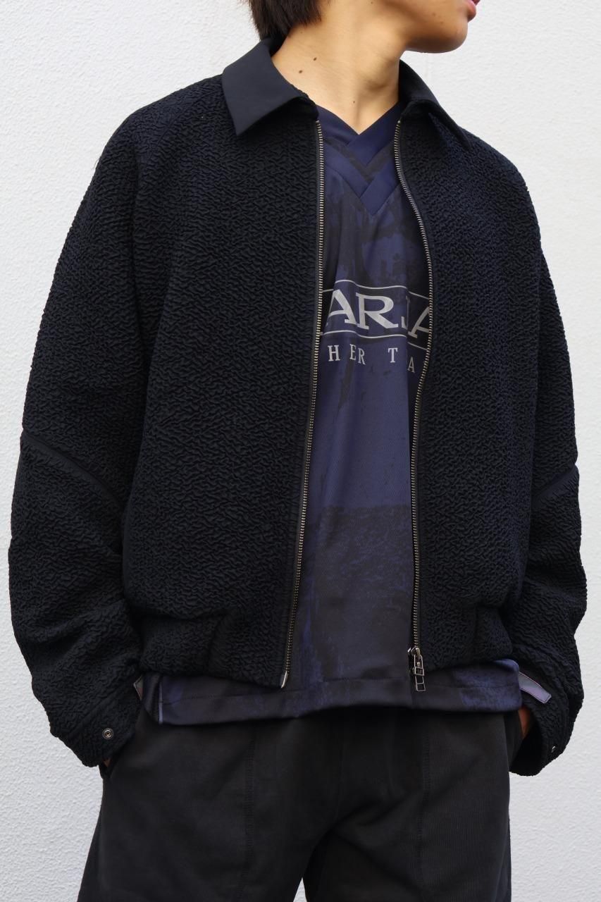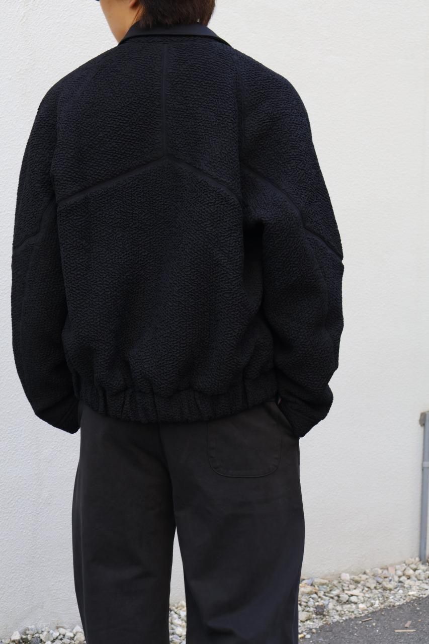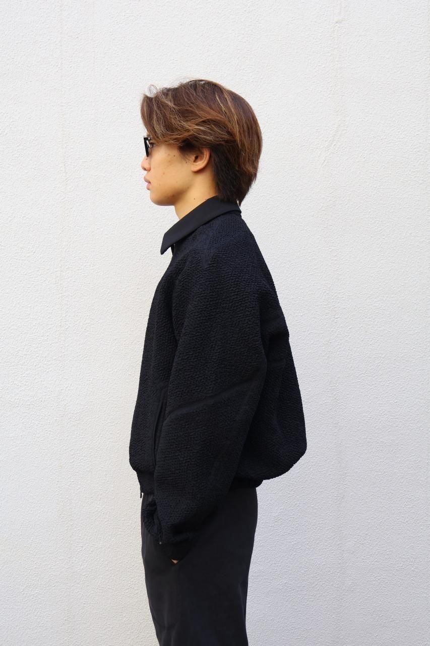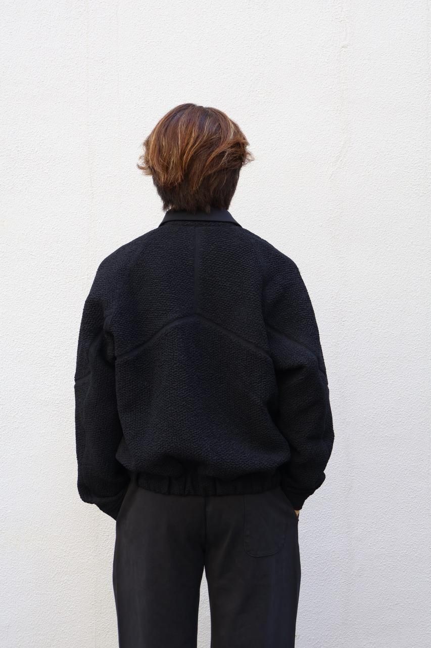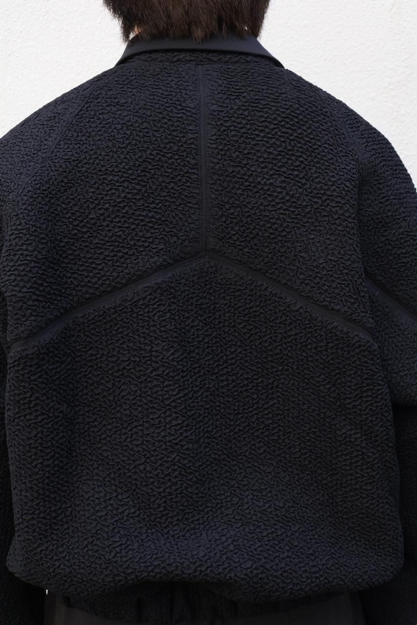 メリノウールと吸水速乾性の高いエステル糸の収縮差を利用することで、脳回(皺)のような表面感を実現。