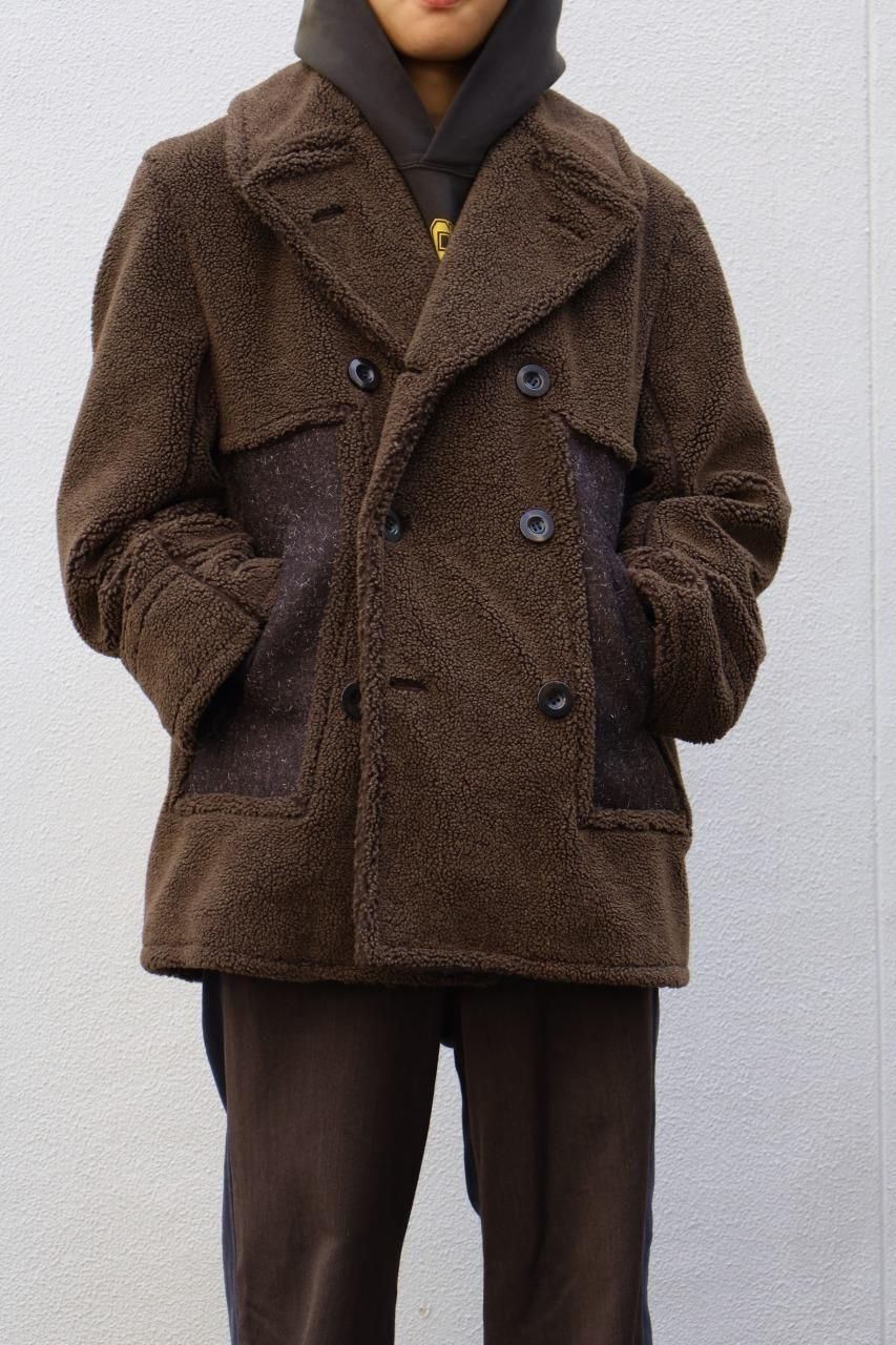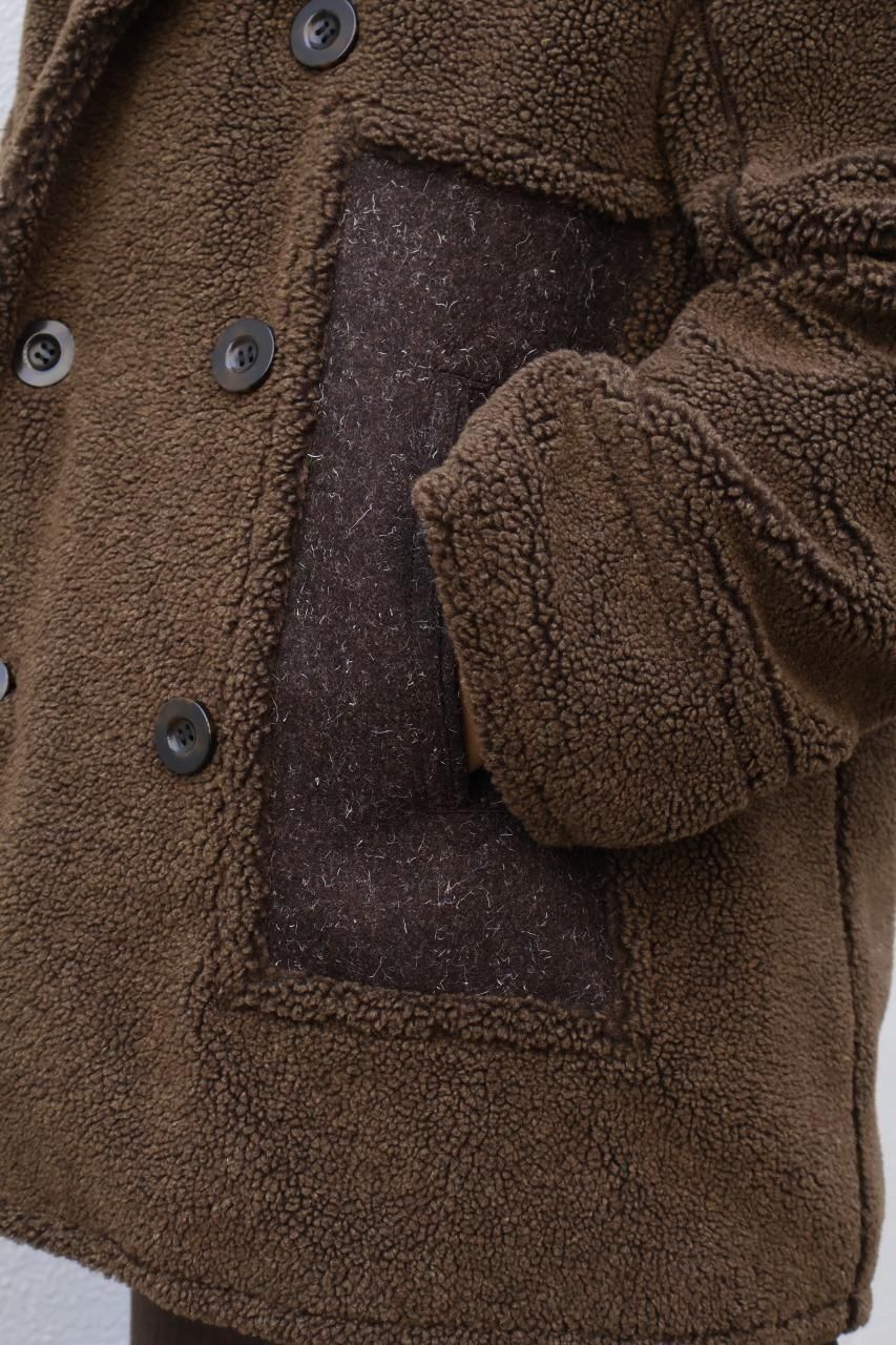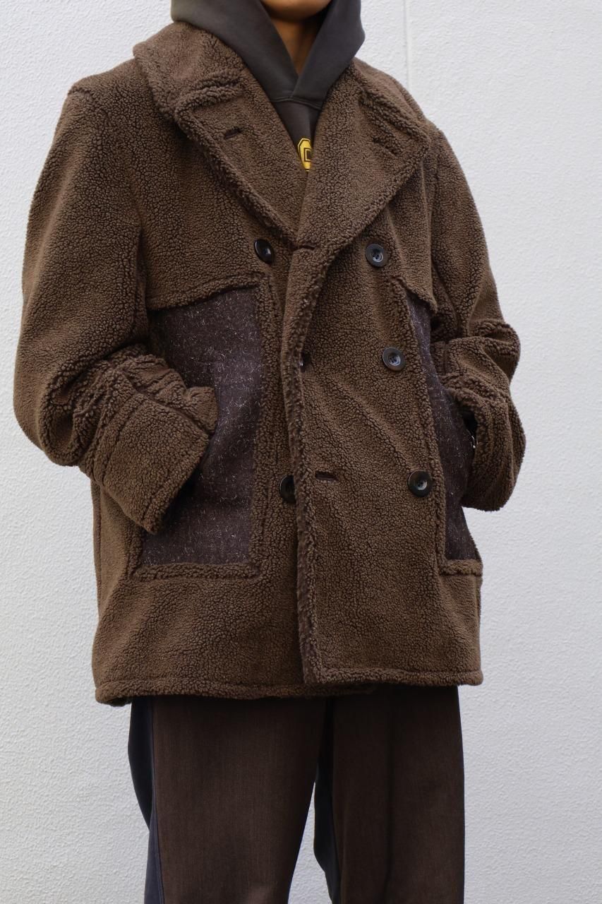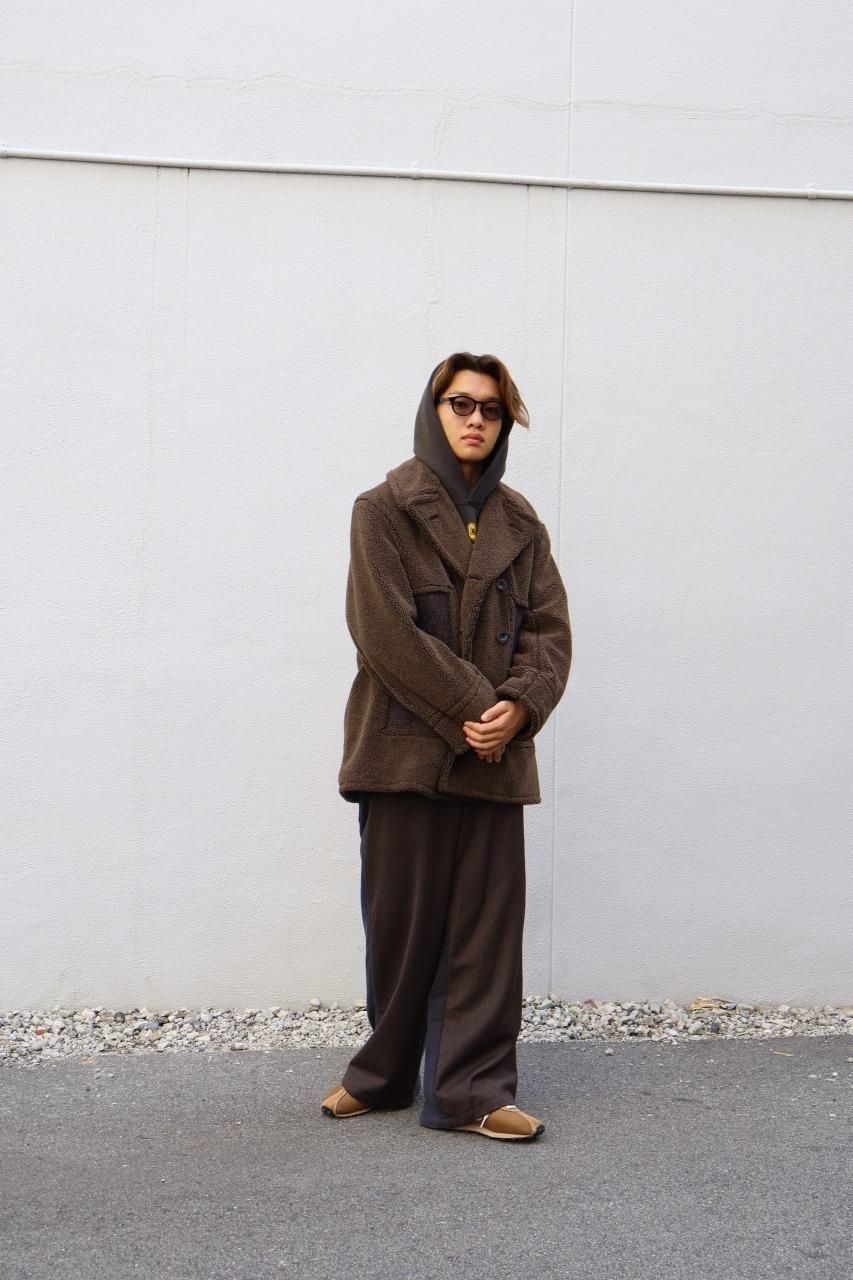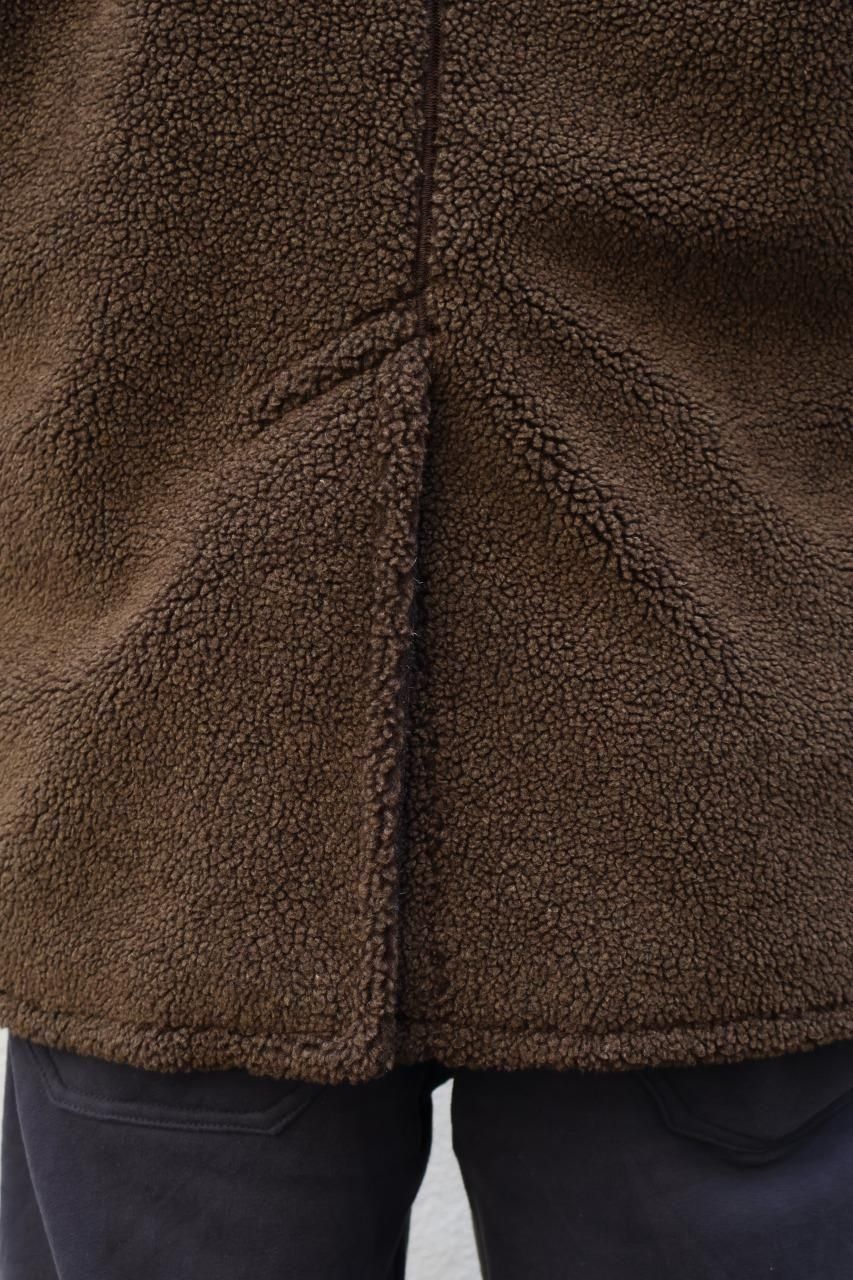 ジャージ素材での縫製や形成が困難とされるテーラリング技術を採用し、襟、袖付き、裏地の仕様などの細部に至る仕様まで、可能な限り丁寧に仕立て、フォルム形成を実現した、ボアPコート。