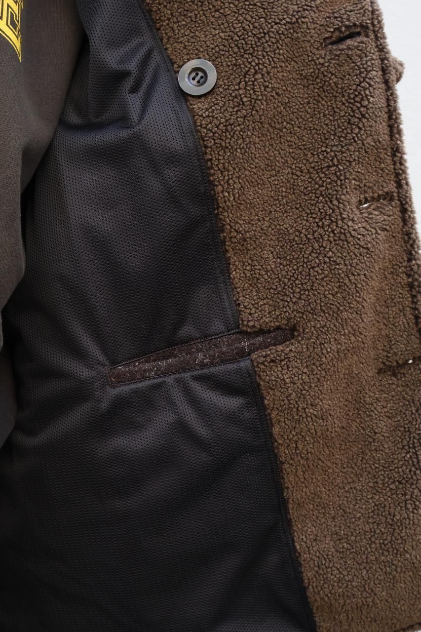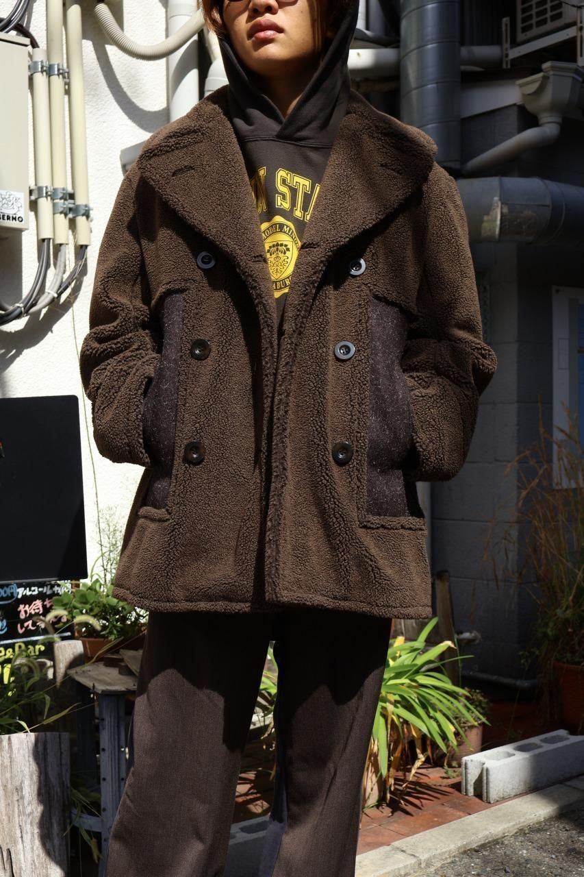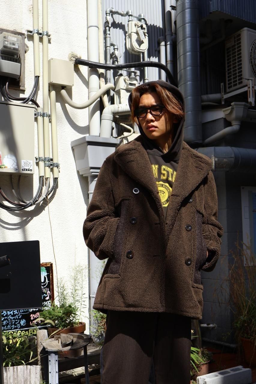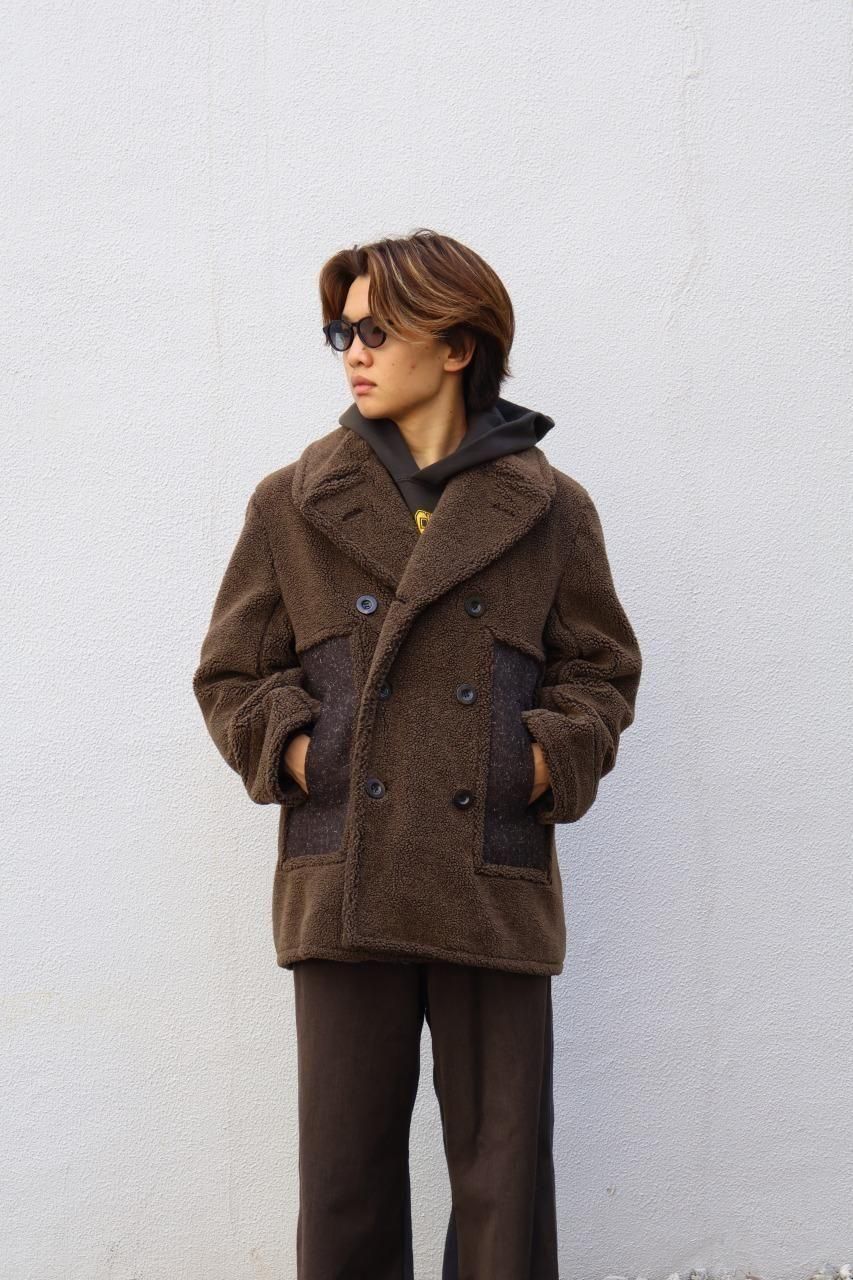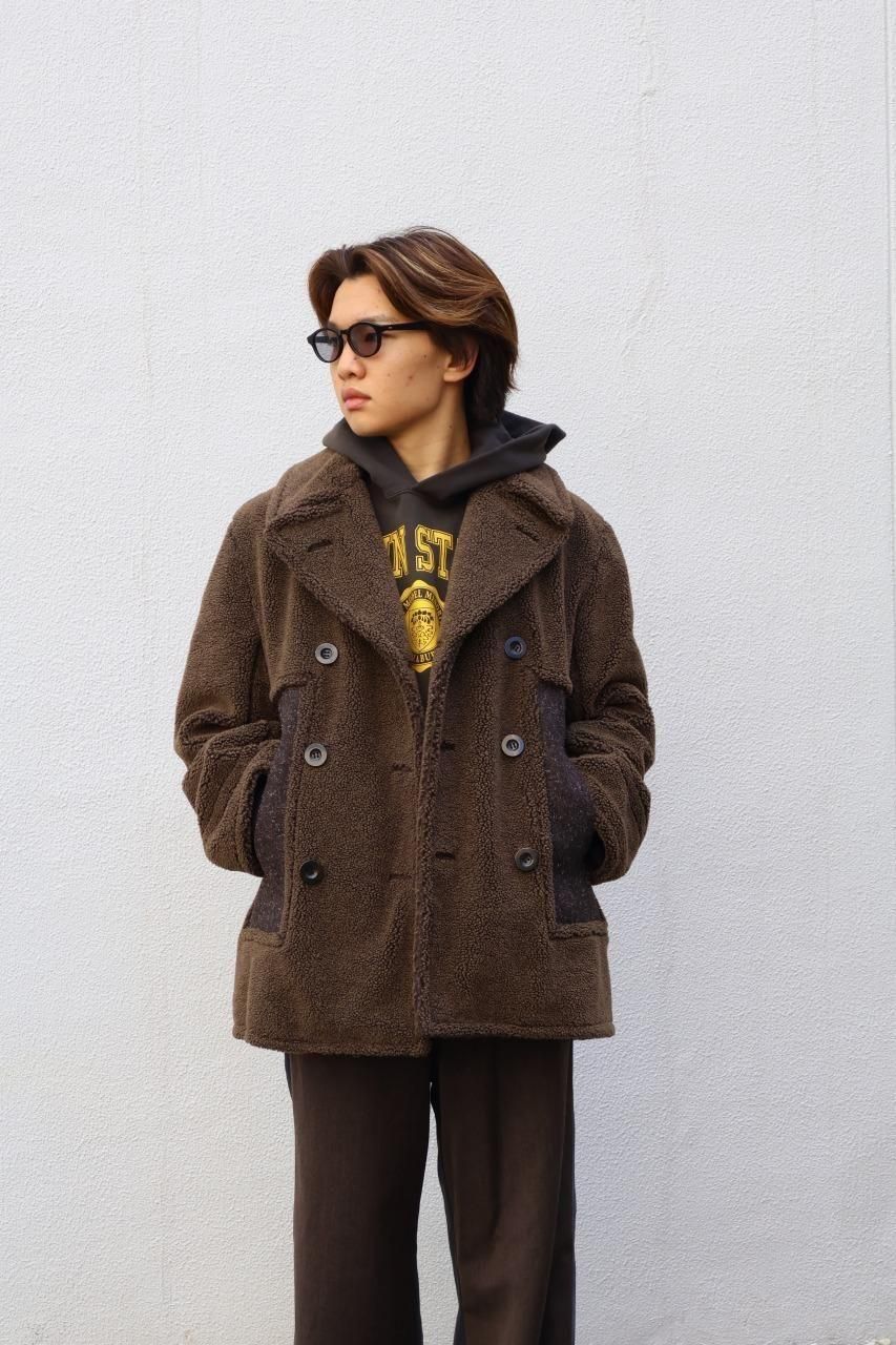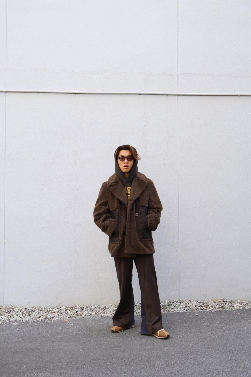 ジャージ素材での縫製や形成が困難とされるテーラリング技術を採用し、襟、袖付き、裏地の仕様などの細部に至る仕様まで、可能な限り丁寧に仕立て、フォルム形成を実現した、ボアPコート。