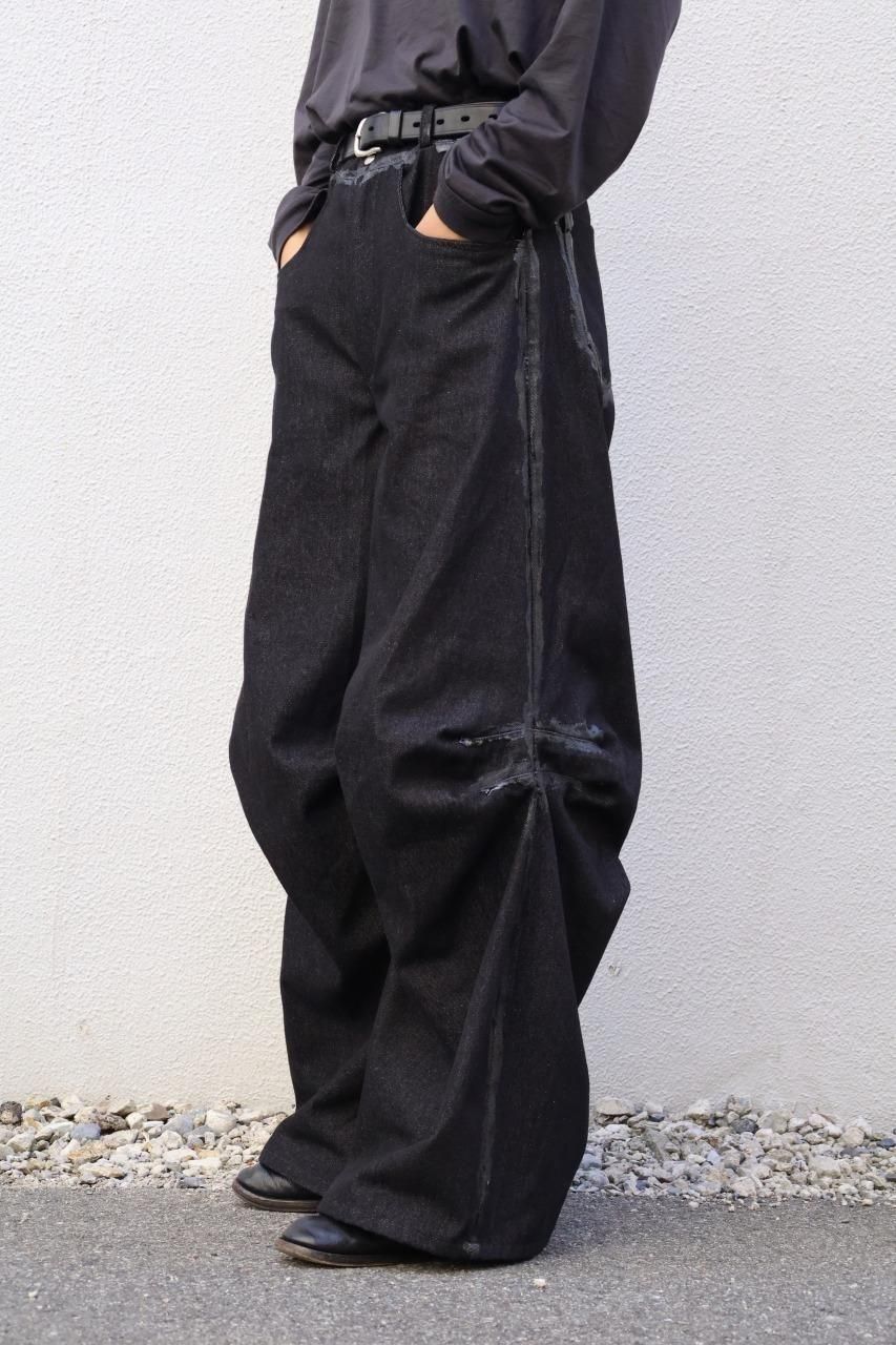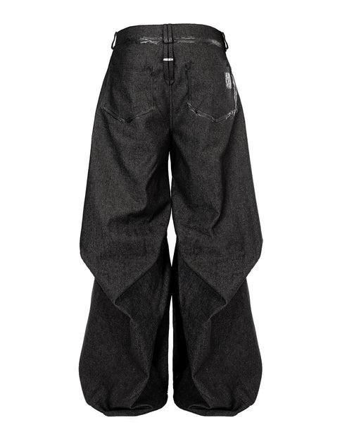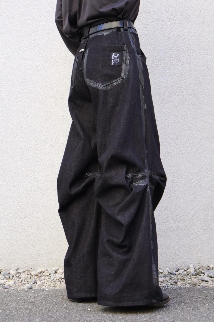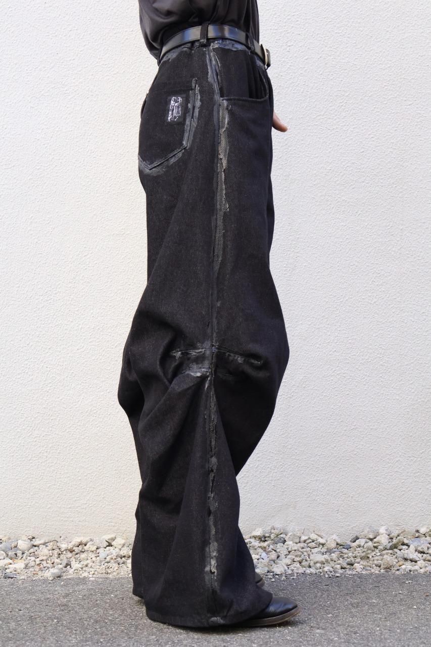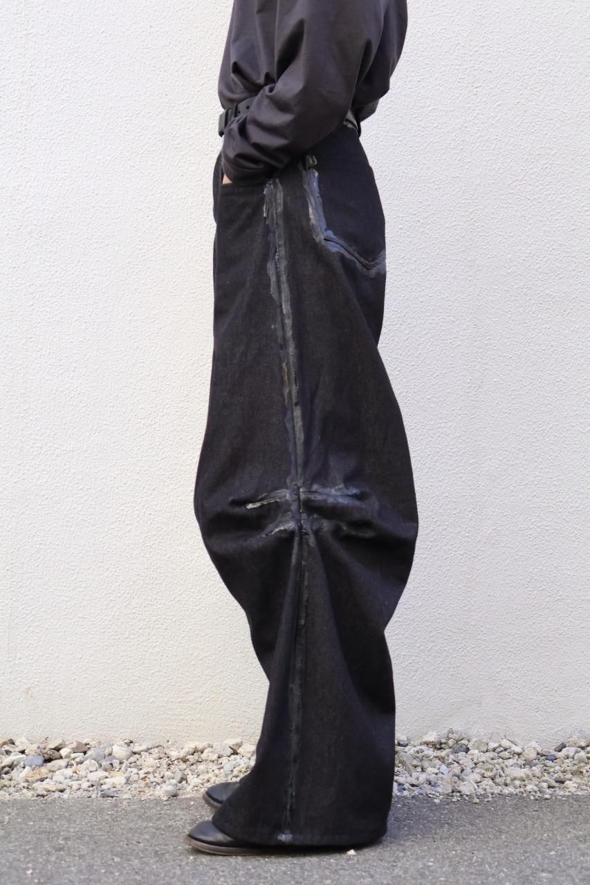 厚手のブラックデニムを使用して、建築的なパターンで構築されたデニムパンツ。